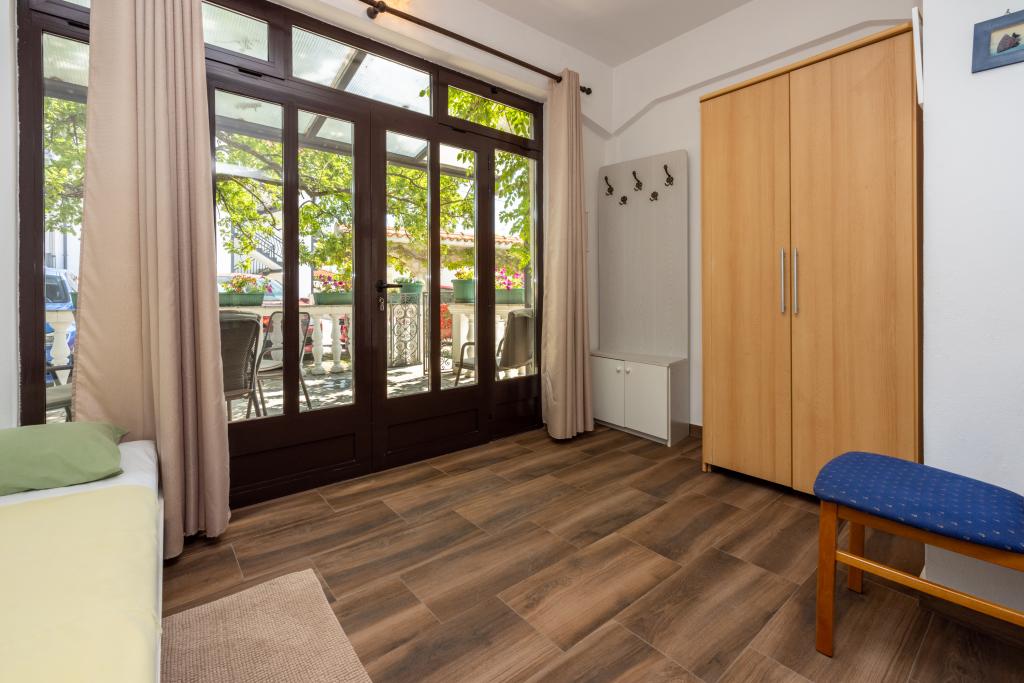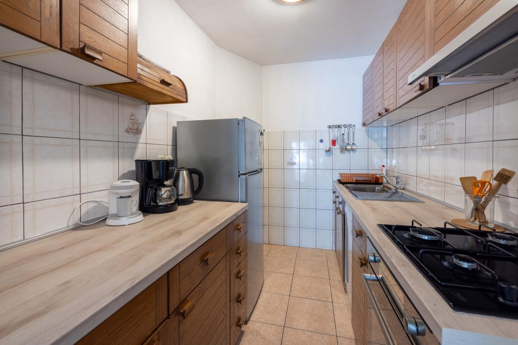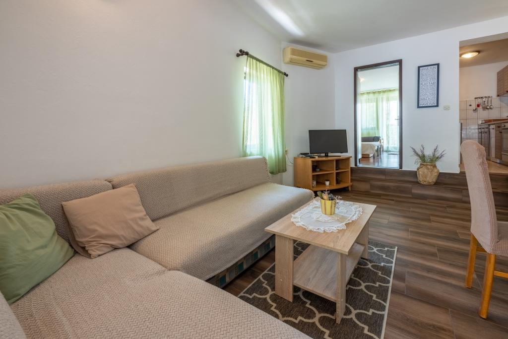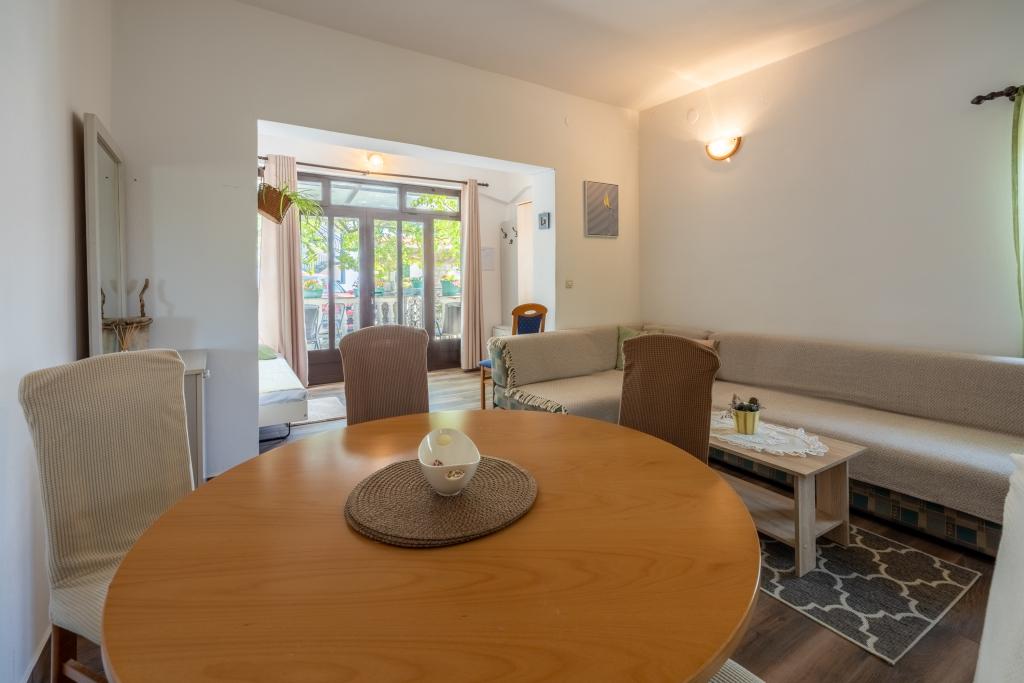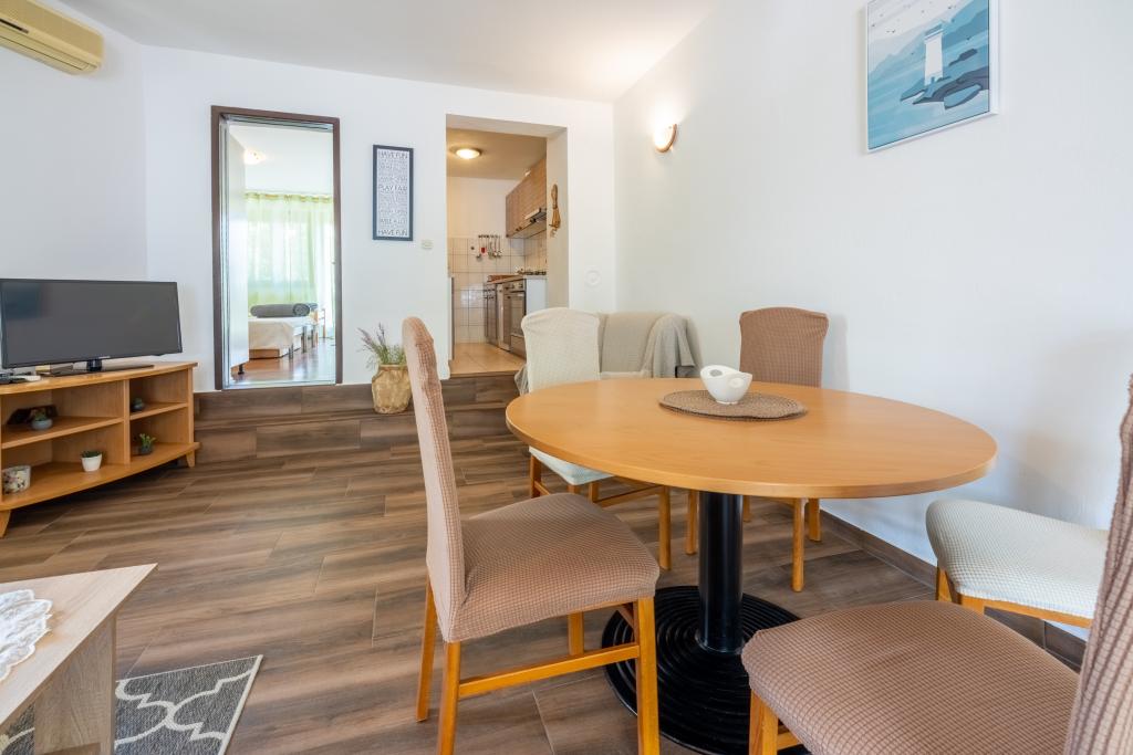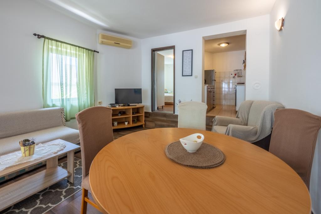 Lejlighed med aircondition og 2 balkoner i en rolig aflukket gade beliggende i en lille fiskerby Jadranovo. Lejligheden har en have, grillplads, WI FI og parkering. Lejligheden har to altaner eller terrasser, 1 soveværelse, stue, køkken og toilet. Du har 10 minutters gang til den nærmeste strand og 15 minutters gang til den anden. Den anden strand er også tilgængelig i bil på 2 minutter, og du har gratis parkering lige ved stranden.