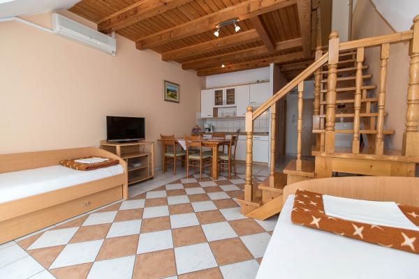 Indkvarteringen er meget god, damen er opmærksom på alt, men vi kom hurtigere hjem, fordi der kom to familier på vores tredje dag. Daggryet gik over vores hoveder klokken 12 om natten, de løb, sprang, trak i stolen, hvilket gør det umuligt at sove. Vi talte med husmoren om morgenen, sagde han til dem. Dagen efter gik festen igen. Igen spurgte vi værten målt ikke at gøre noget. Han løste ikke sagen, men han vil ikke give dig penge tilbage, hvis vi går hjem. Efter det kom vi hjem. Jeg vil foreslå noget. I Njivice blev det skrevet med store bogstaver i korridoren indtil 22-08 beder vi om stilhed. vi går her for at hvile. I øvrigt reserverede vi første sal, fik en stueetage og havde en kraftig cigaretlugt i to dage i indkvartering.