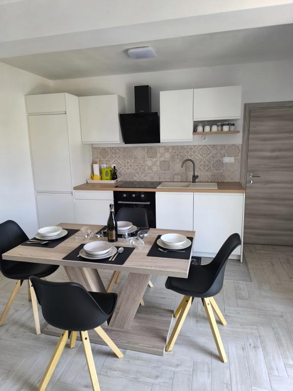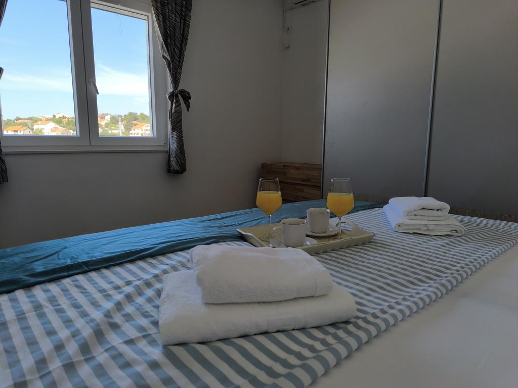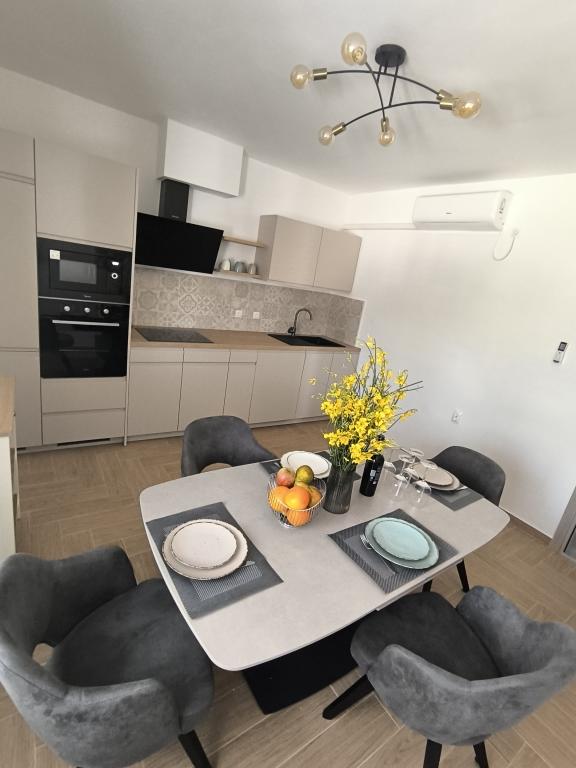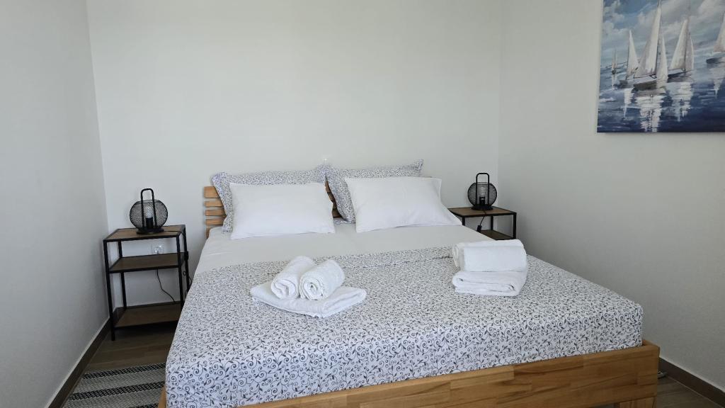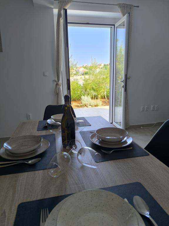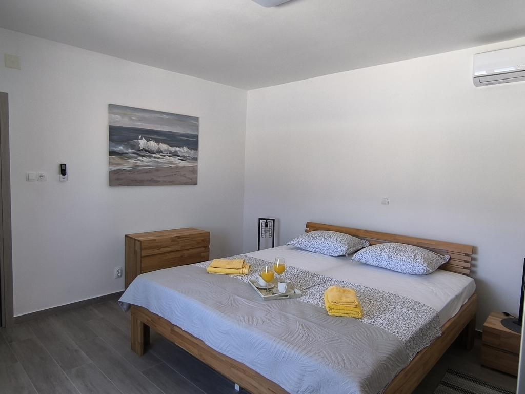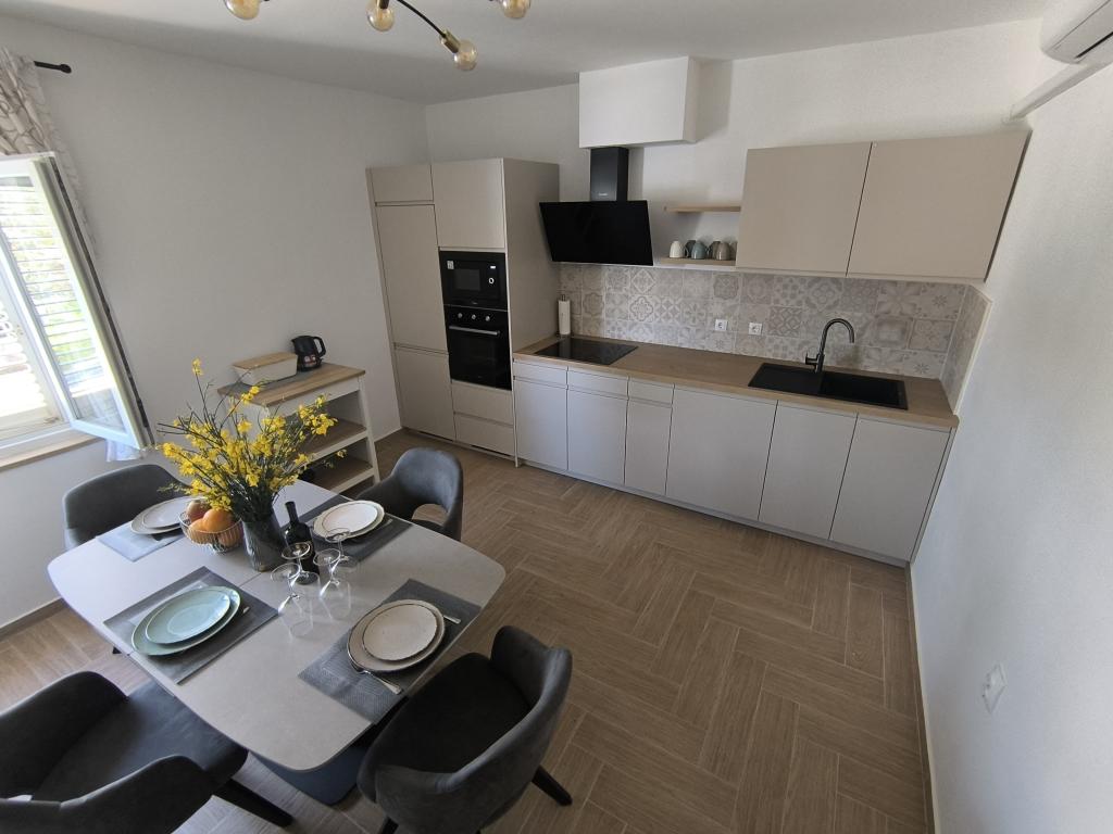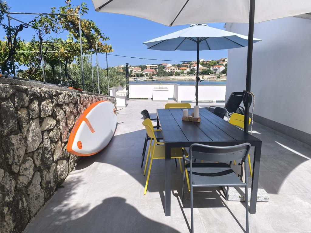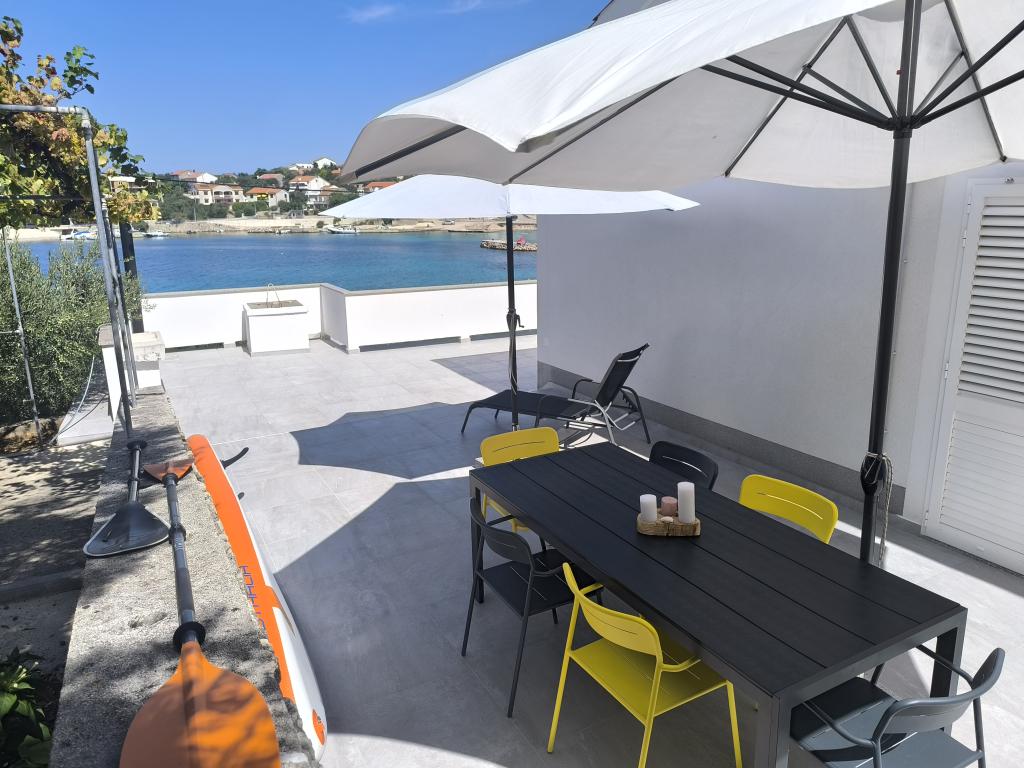 På en af de smukkeste og mest solrige øer, Pag, i den nordlige dalmatiske øgruppe, kendt for de ældste Lun-olivenlunde i den nordlige del af Adriaterhavet, ligger landsbyen Jakišnica, en lille fiskerlandsby i en bugt, omgivet af oliventræer, stenege og klart hav. Jakišnica er et ideelt sted for hvile og afslapning. Renoveret hus med to separate lejligheder beliggende i første række til havet. Yasenka-lejligheden i stueetagen har et soveværelse, badeværelse, køkken med spisestue, terrasse med havemøbler, udendørs bruser og liggestole til fuldstændig afslapning. Lejlighed Iva på første sal har to rummelige soveværelser, et badeværelse, et køkken med spisestue, en stue, en stor terrasse med grill og havemøbler samt en udendørs bruser. Der er parkering, gratis wifi, aircondition, restauranter, en lokal butik, en offentlig sandstrand og en stenstrand eller en lille stenstrand i nærheden, som ligger 10 m fra ejendommen.