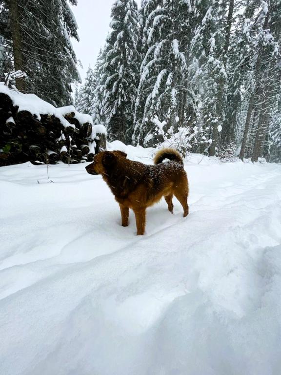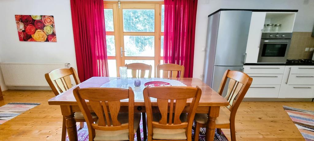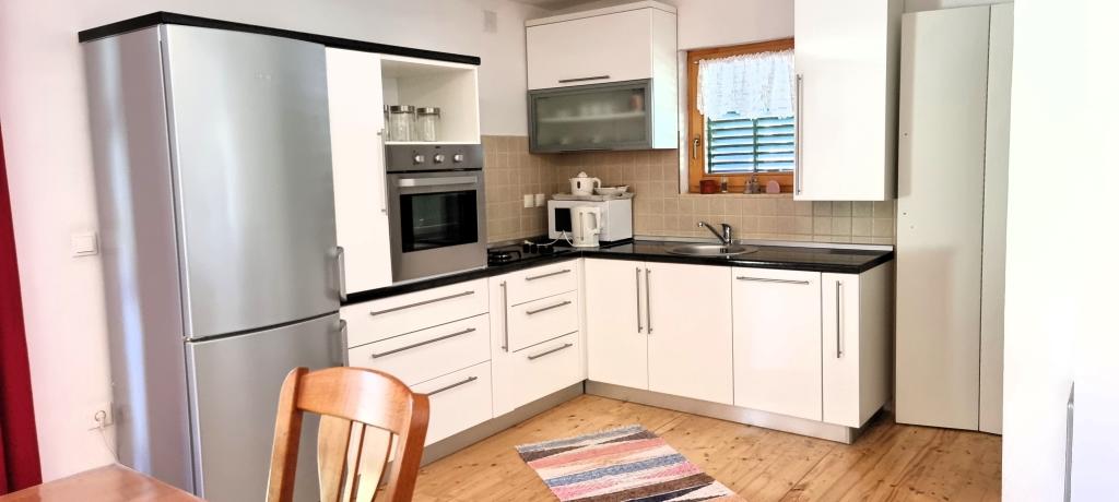 I smuk natur lige ved siden af skoven, en komfortabel lejlighed for dem, der ønsker at flygte fra stress og jag og slappe af i naturen. En overdækket grill med bord og stole og trægynger står til gæsternes rådighed.