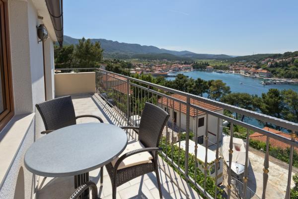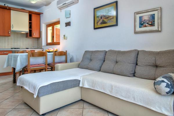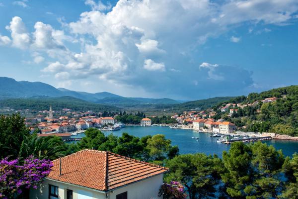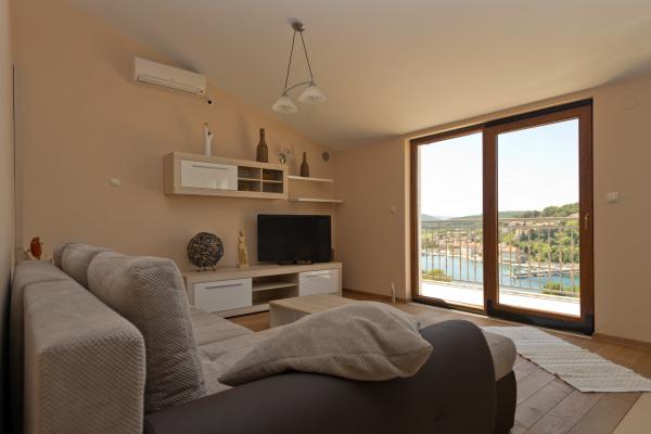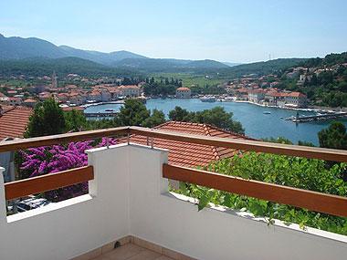 Moderne lejligheder i Jelsa. Ideelle lejligheder til familier. De er placeret i et privat hus. Huset ligger 10 minutters gang til centrum, stranden og har parkering. Lejlighederne er veludstyrede. Udsigt fra terrassen til havnen i Jelsa. Brac øen og de omkringliggende landsbyer.