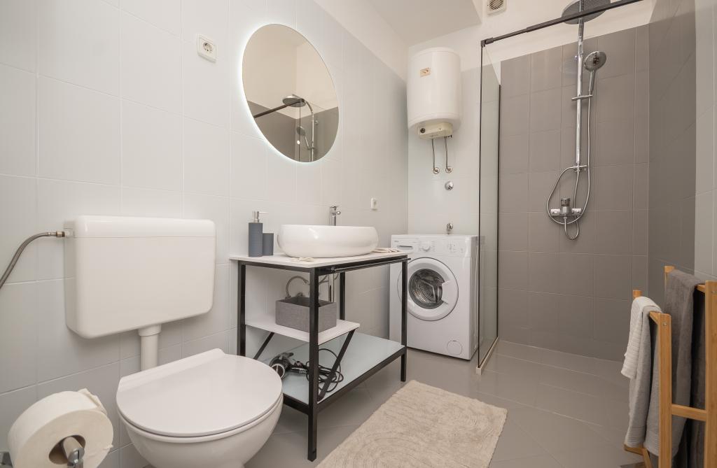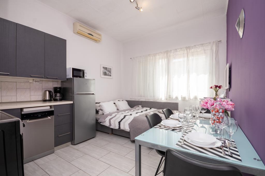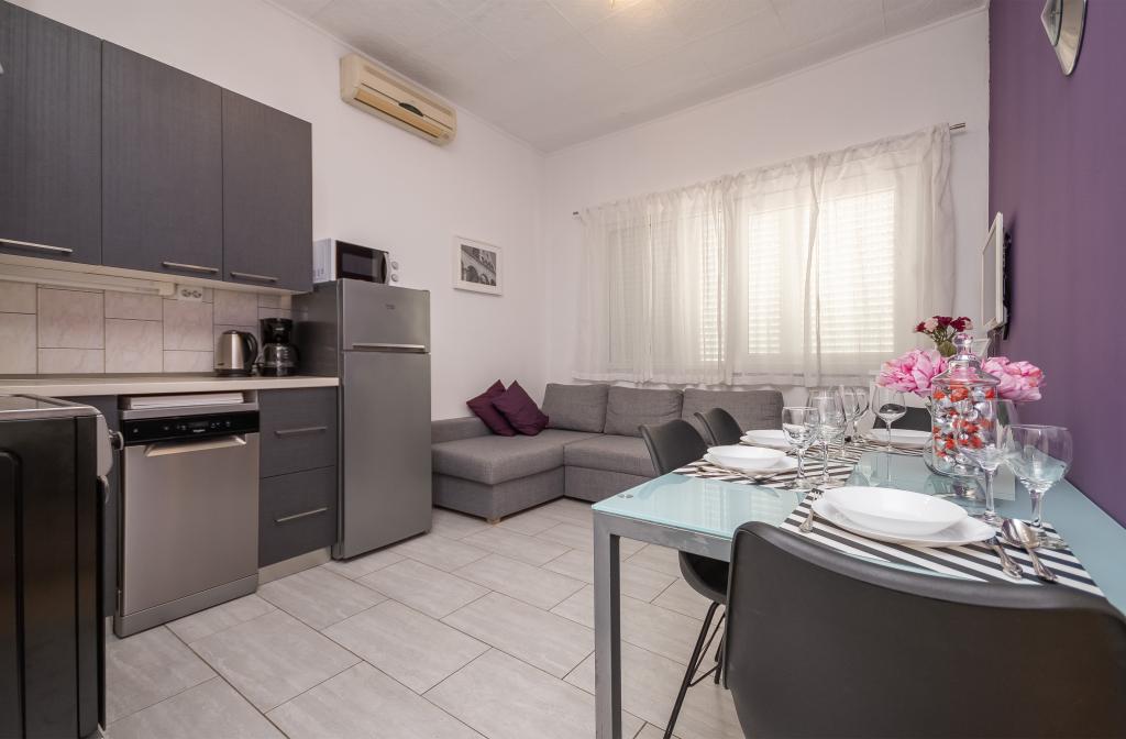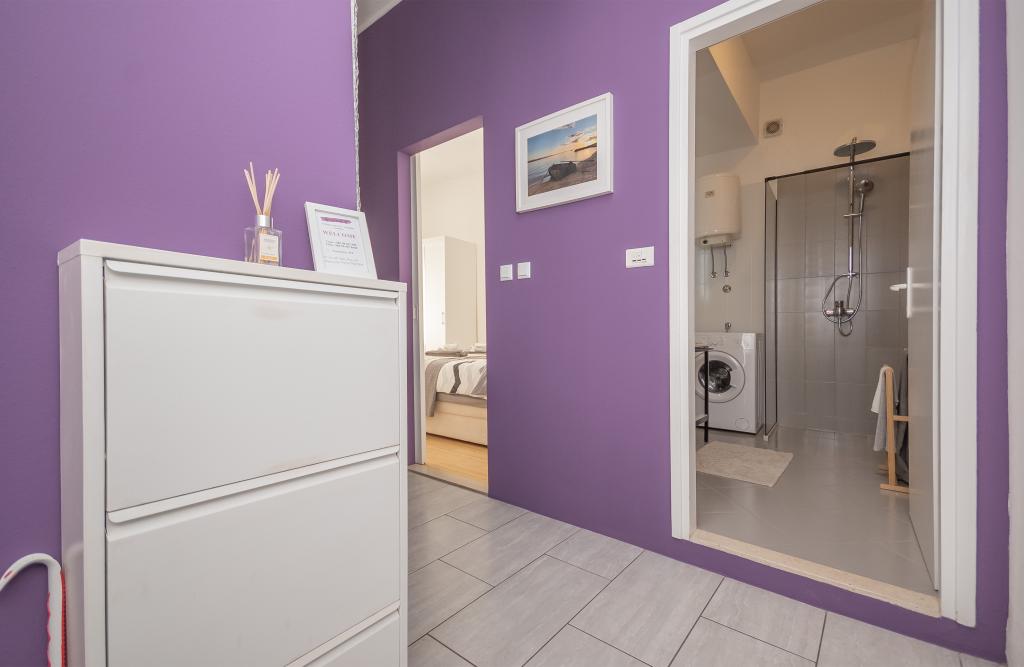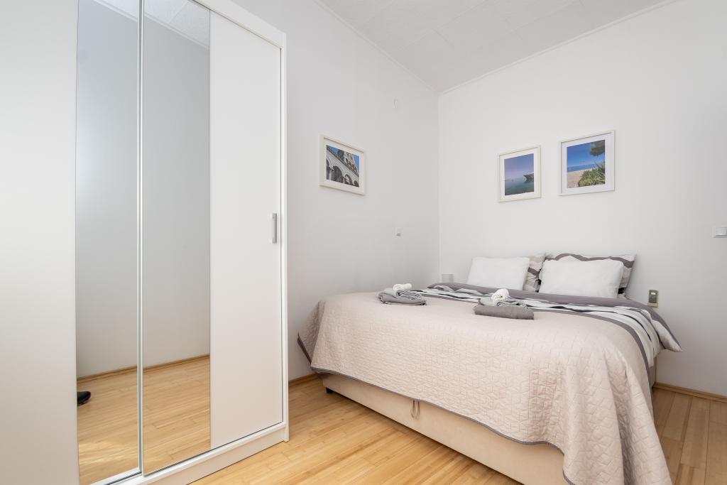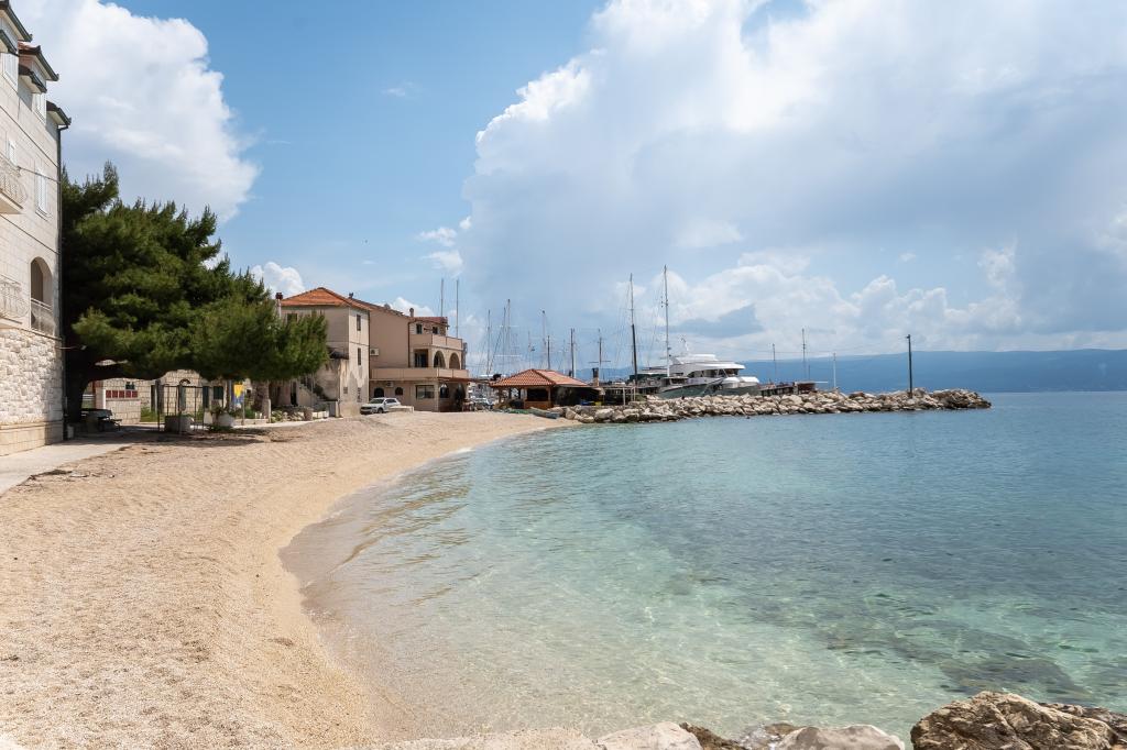 Lejlighed "B" ligger i den lille by Sumpetar Jesenice, ikke langt fra Split og Omiš. Den ligger 20 skridt fra stenstranden. Lejligheden er en del af et familiehus beliggende langs hovedvejen til Dubrovnik. Den består af et soveværelse, køkken og stue, toilet og fælles balkon. Den er egnet til 4 personer. Parkering og wi-fi er gratis.