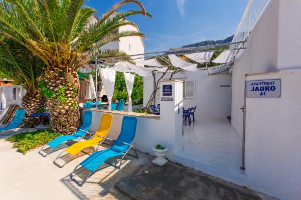 Fuldt udstyret lejlighed i et roligt område i Jesenice, mellem Split og Omiš, første række til havet, ideel til en afslappende ferie med et udvalg af flere små strande til svømning. Miljøets og naturressourcernes udseende varierer afhængigt af årstiden og andre naturfænomener.