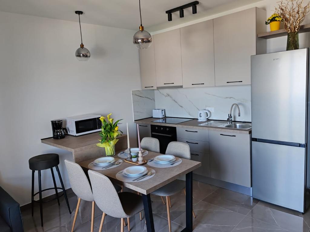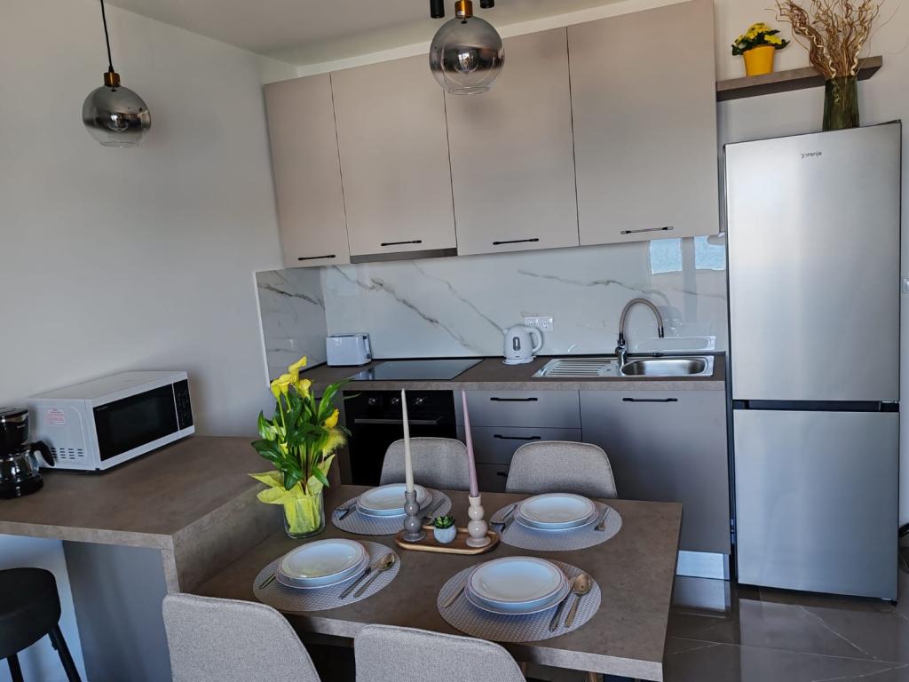 Apartment Nina (A6) er beliggende i den rolige by Kali på øen Ugljan. Lejligheden ligger 100 m fra stranden, og terrassen byder på udsigt over havet, øen Ošljak, Zadar og Zadar-kanalen. Fordelen er en helt ny og komfortabel lejlighed med 3 soveværelser, stor stue, køkken og 2 store badeværelser. For at gøre dit ophold så behageligt som muligt, slap af og nyd den overdækkede terrasse. Til din baby har vi en tremmeseng og en foderautomat. Minimum ophold 4 dage. Sunny Apartment (A2) er en ny lejlighed med 1 soveværelse, køkken og stue, badeværelse og separat toilet. Balkonen byder på en smuk udsigt over havet. Minimum ophold 3 dage. Azure Apartment (A4) er ideel til en rolig ferie med familie eller venner. Nyd den utrolige havudsigt fra den rummelige terrasse, slap af i det komfortable interiør med to soveværelser og et moderne køkken. Beliggende kun to minutters gang fra stranden. En ekstra seng og en barneseng er tilgængelige efter anmodning. Minimum ophold 4 dage.