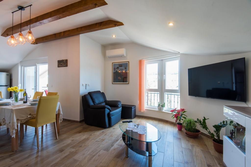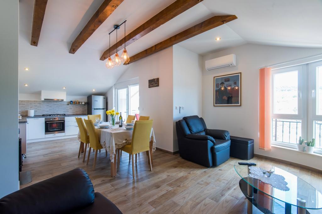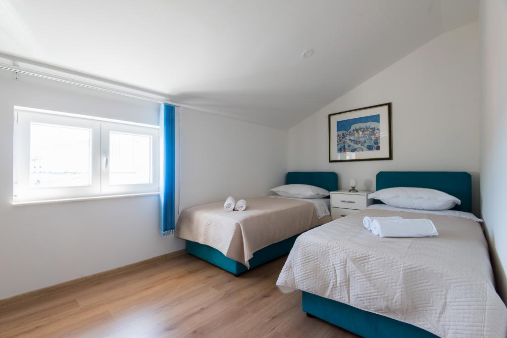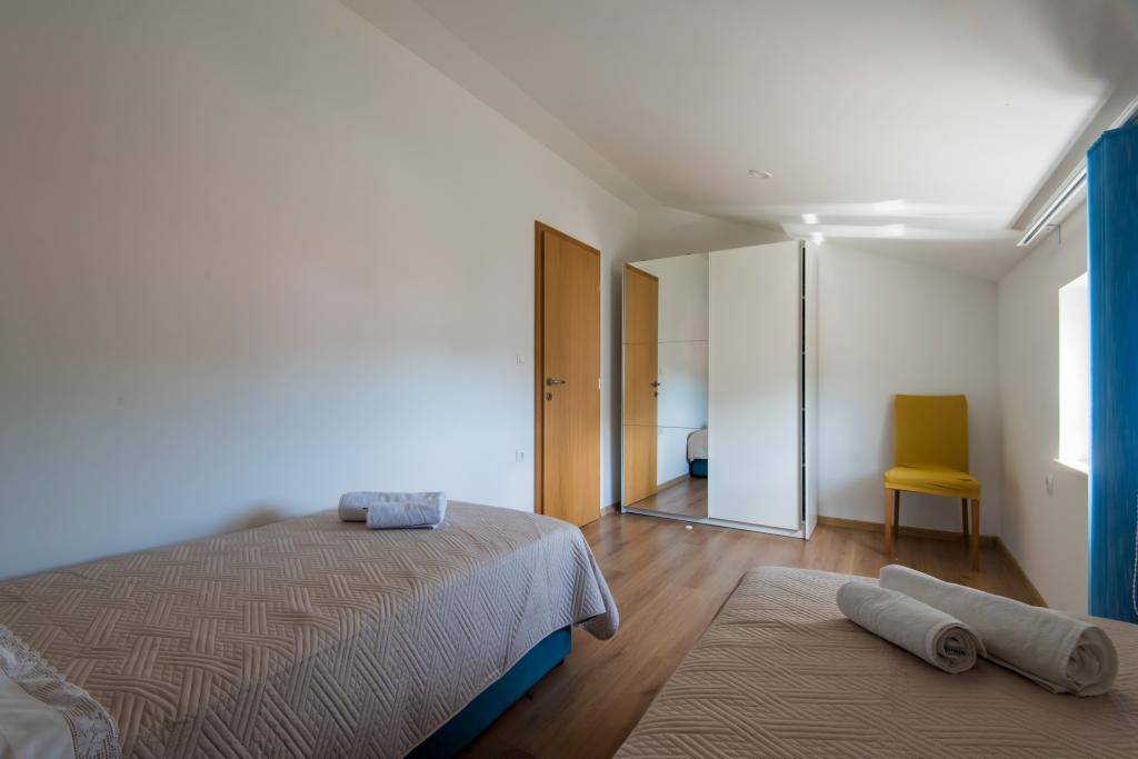 Lejlighederne er på første sal af huset, som er placeret i bugten Lamjana i rolige omgivelser ved havet, moderne og fuldt møbleret. Lejlighed 2 har et soveværelse med en dobbeltseng og en stor sovesofa i køkkenet med udgang til altan, hvor møblerne, badeværelse med bruser. Lejlighed 1 har to soveværelser og en ekstra seng i køkkenet, badeværelse med bruser, på balkonen af møblerne. Bymidte er omkring 900 m. I gården er en grill, der er til rådighed for vores gæster.