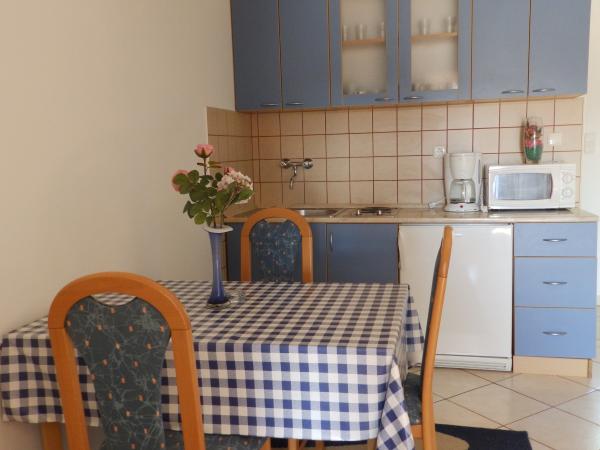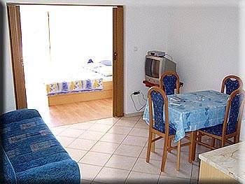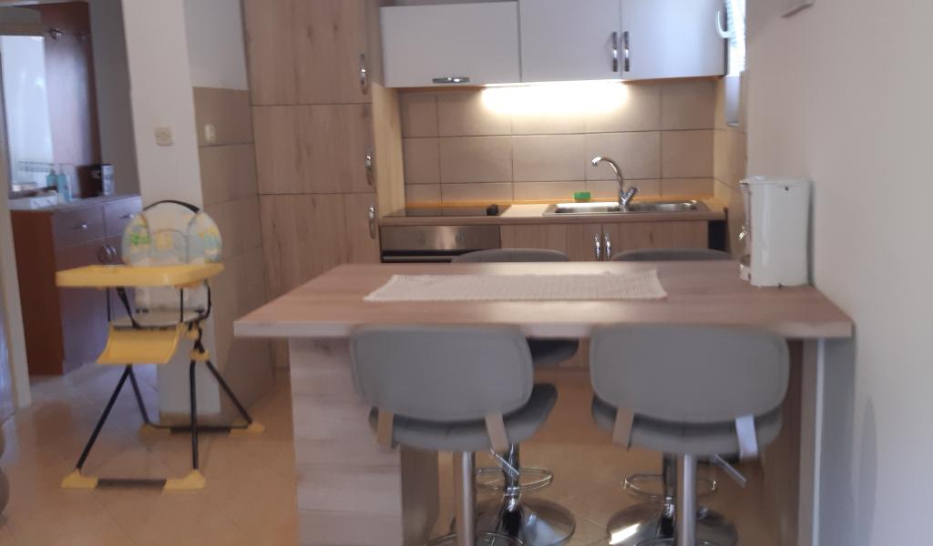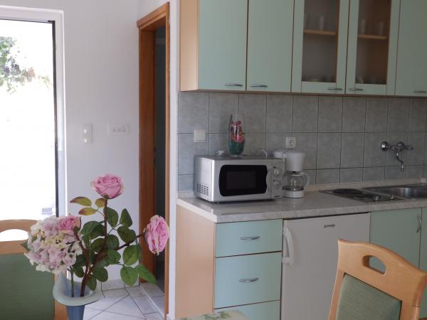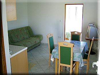 Lejlighederne er beliggende i den lille, stille fiskerby Barbat på øen, ligger 100 m fra havet med en smuk udsigt over bugten Veli Mel. Bygningen er på fire pladser Kampor 150 m og 5 km fra den gamle bydel i Rab. Lejlighederne er fuldt udstyret, moderne indrettet for et behageligt ophold. Land af bygningen er dekoreret med masser af grønne områder og haver, som gør anlægget særdeles attraktiv. Gæsterne kan bruge haven grill og børns park.