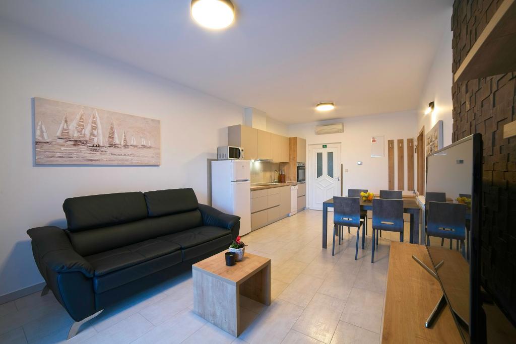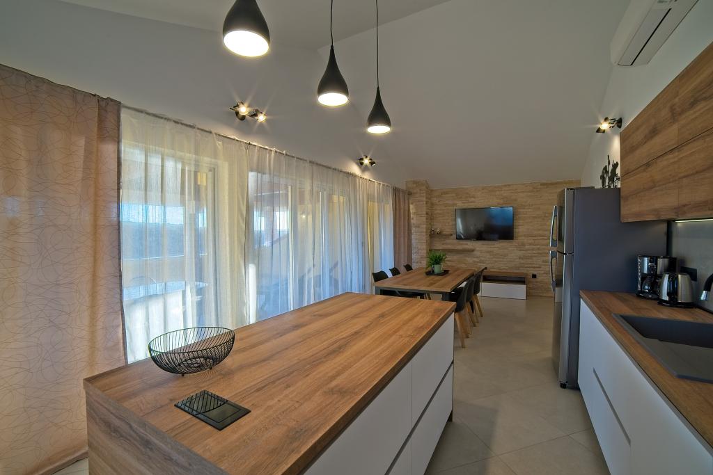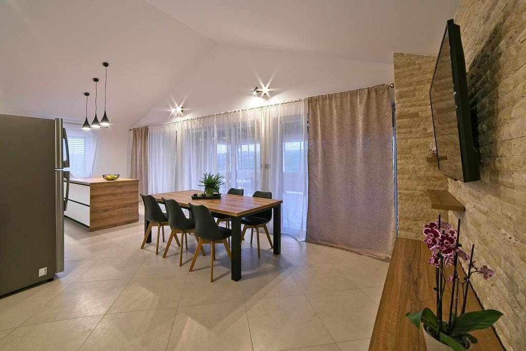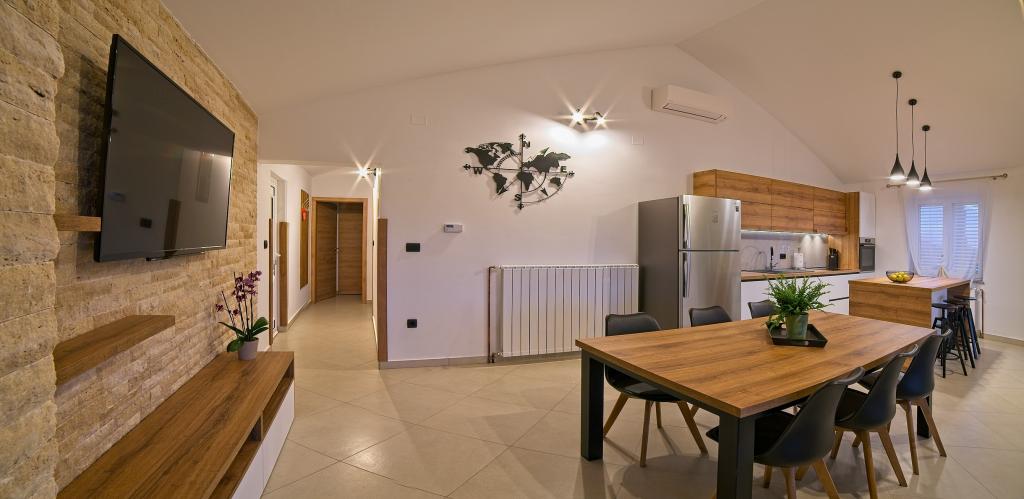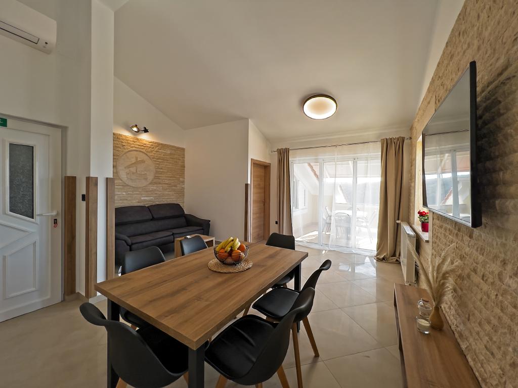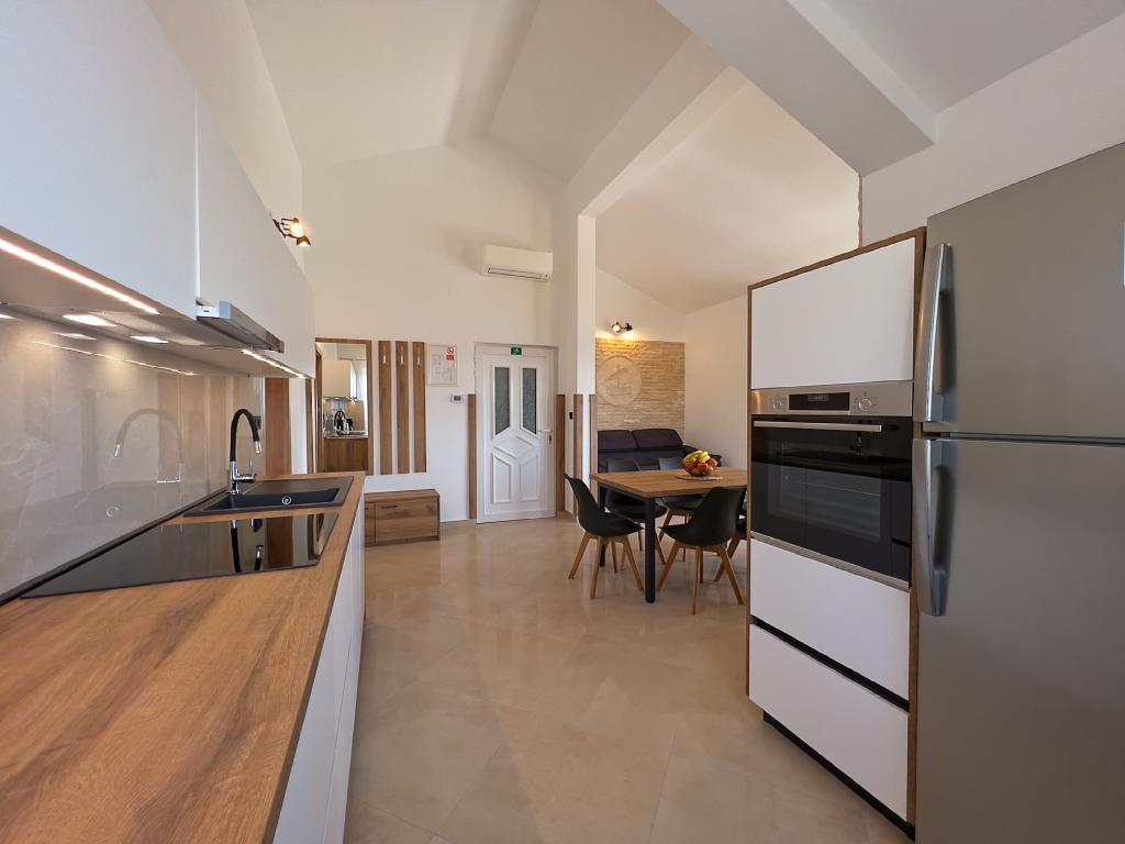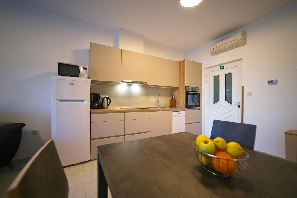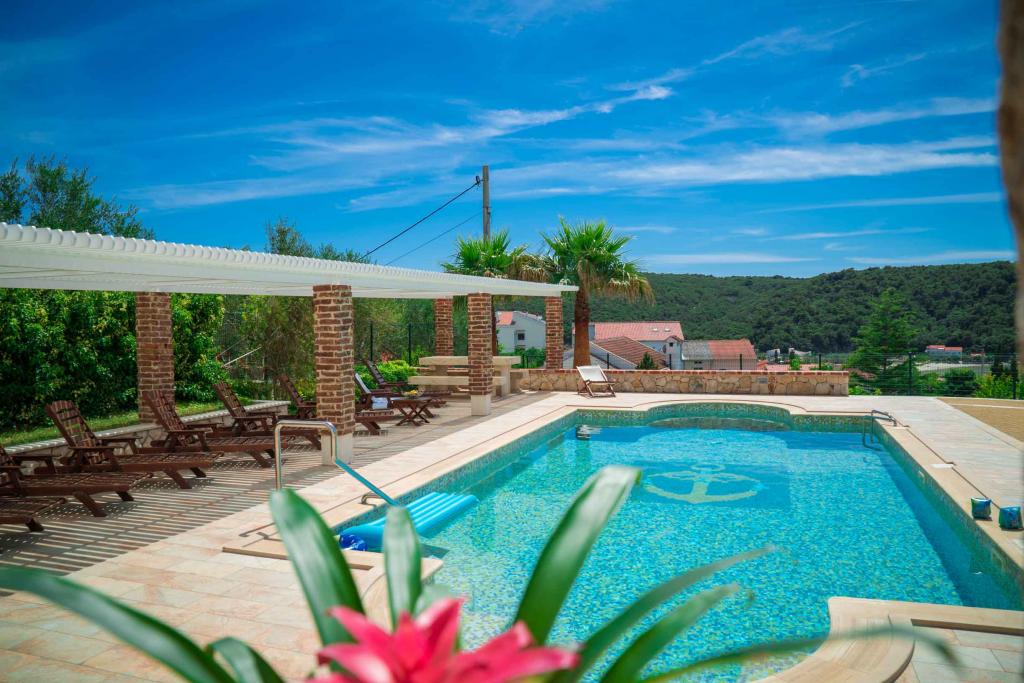 Turistskat er inkluderet i prisen.På et stort område over huset strækker sig en smuk have til et længere ophold om aftenen og eftermiddagen. Der er et legerum til børn, et overdådigt bord og en overdådig og velindrettet grill, et udstyret tekøkken med toilet og flere haveborde og stole. Moderne udstyret udendørs swimmingpool, størrelse 9, 50 x 5, 20 meter, dybde 1, 50 meter, udstyret med liggestole og parasoller og snackpool. Du vil blive forbløffet over havudsigten fra den smukke have og solbadningsområdet omkring poolen. Bådudflugter rundt på øen Rab, picnic, panoramature, bådture til de nærliggende øer Pag, Lošinj og Krk. Vi leverer bådfortøjning til sejlere og for vores yngste, dart, bordfodbold og airhockey.