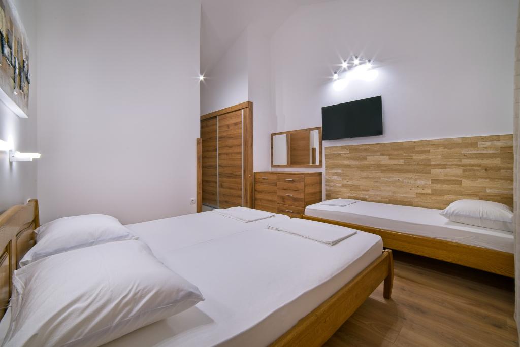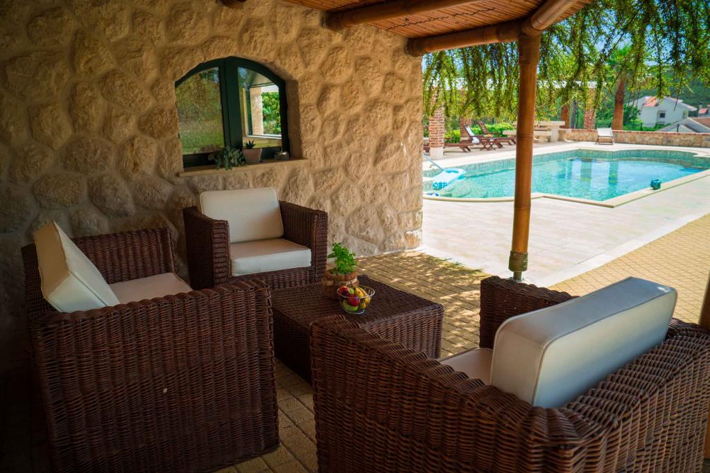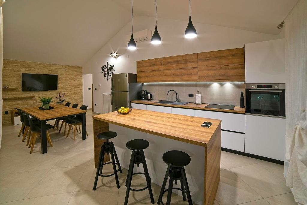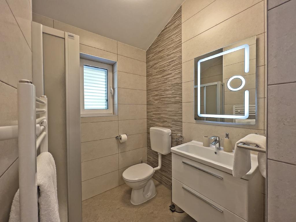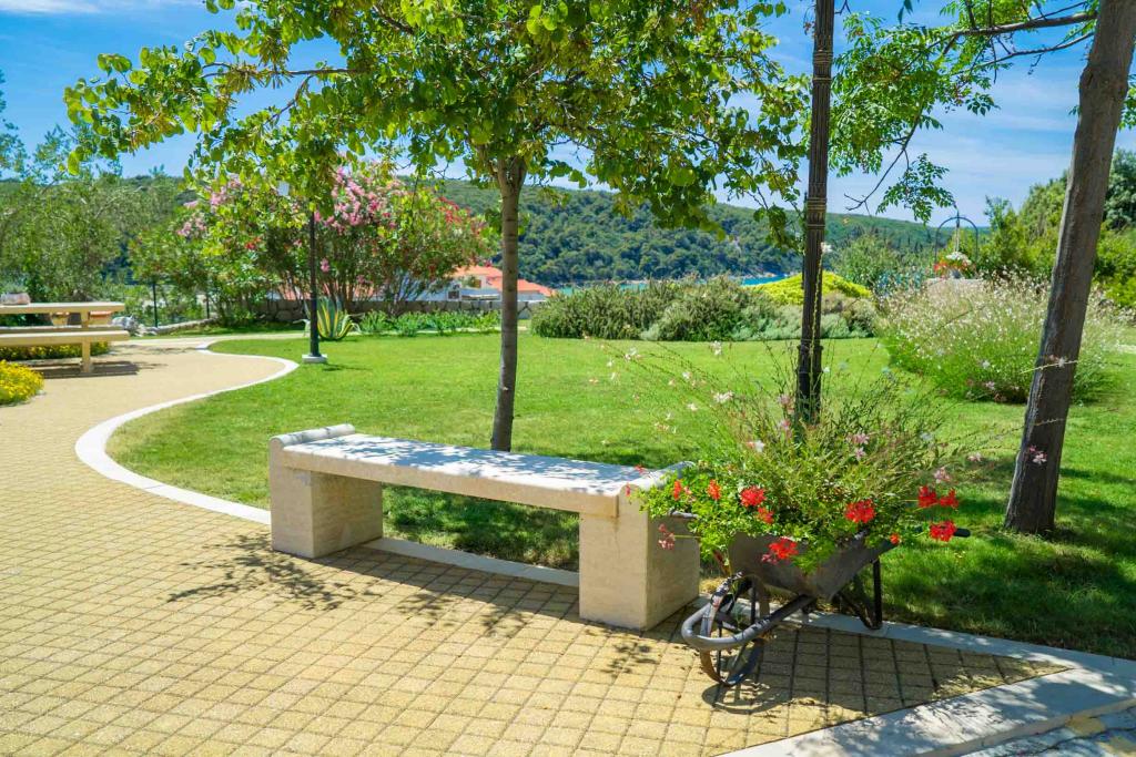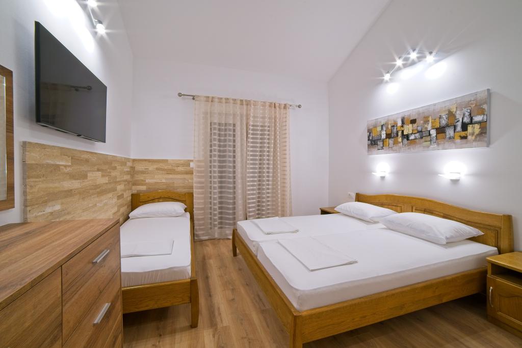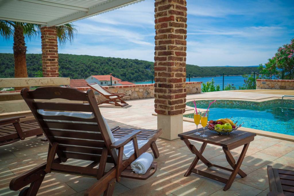 Turistskat er inkluderet i prisen.På et stort område over huset strækker sig en smuk have til et længere ophold om aftenen og eftermiddagen. Der er et legerum til børn, et overdådigt bord og en overdådig og velindrettet grill, et udstyret tekøkken med toilet og flere haveborde og stole. Moderne udstyret udendørs swimmingpool, størrelse 9, 50 x 5, 20 meter, dybde 1, 50 meter, udstyret med liggestole og parasoller og snackpool. Du vil blive forbløffet over havudsigten fra den smukke have og solbadningsområdet omkring poolen. Bådudflugter rundt på øen Rab, picnic, panoramature, bådture til de nærliggende øer Pag, Lošinj og Krk. Vi leverer bådfortøjning til sejlere og for vores yngste, dart, bordfodbold og airhockey.
