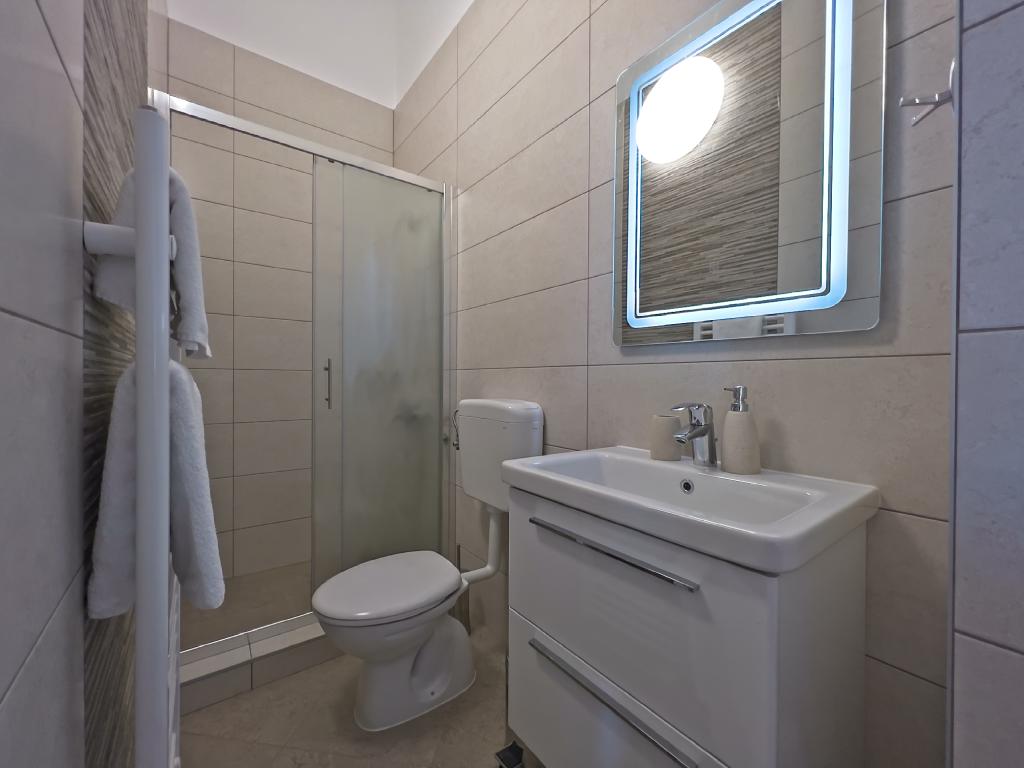 I Kampor på øen Rab, 400 meter fra havet og en smuk sandstrand, et moderne og nyindrettet og udstyret sommerhus med en speciel udsigt over havet og hele Kampor-bugten. Feriehus Villa Milena på øen Rab har i alt 5 lejligheder (lejligheder) til 2 til 6 personer. Huset ligger i en smuk, rolig, høj beliggenhed. Det er 400 meter fra sandstranden, der er synlig fra husets terrasse og have, 500 meter fra byens centrum og 5000 meter fra den 2000 år gamle bydel i Rab. Sandstranden med det lave hav, smaragdfarver tilbyder en specialitet for familier med børn, og nysgerrige mennesker og historikere vil nyde en tur i den gamle bydel, især om aftenen. Kampor tilbyder også mange sportslige muligheder, både til søs og på land, og frem for alt ren og behagelig luft, velegnet til hjertepatienter og astmatikere.