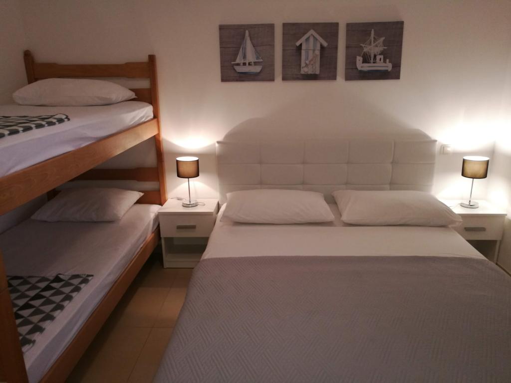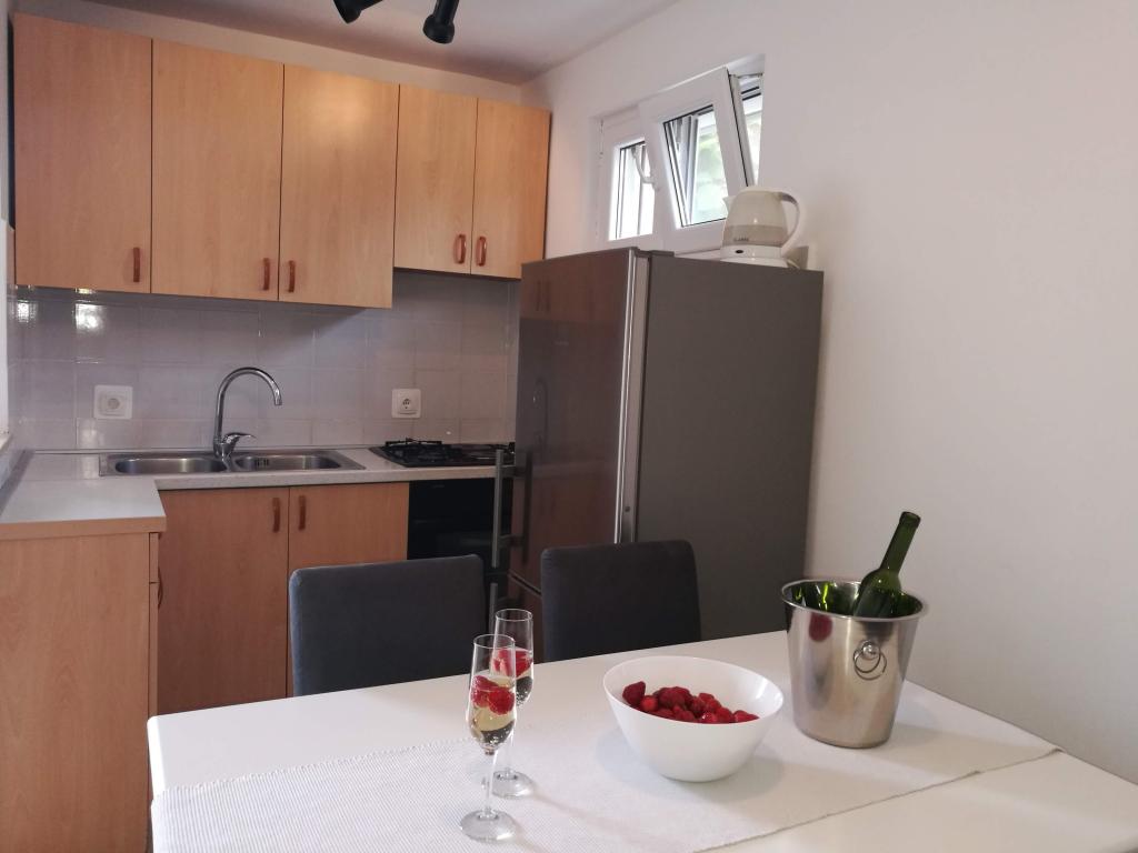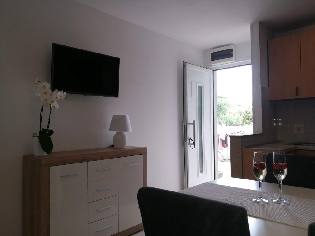 Nyrenoveret to-værelses lejlighed i den smukkeste bugt i Kanica, væk fra havet kun 40 m. Et roligt sted ideelt til en ferie. Organiseret morgen levering af brød og frugt flere steder i (på stranden). Lejligheden er i stueetagen af et hus, har en stor terrasse med en naturlig skygge, udendørs bruser og pejs, to komfortable værelser, et køkken og spiseplads.