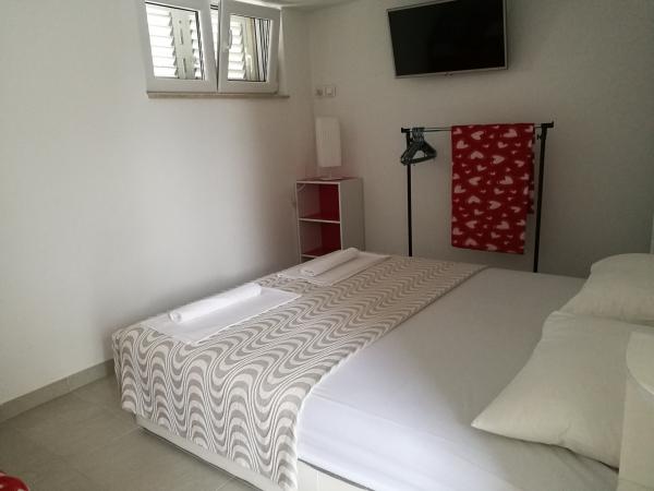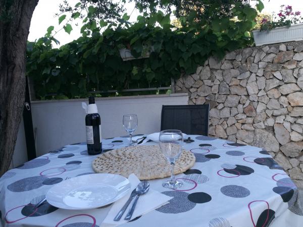 Med dyrt for to år odmarava i denne apartmajčku! Lejligheden er ren, pæn, moderne monteret på posteljci venter på rene håndklæder! Terrasse, der hører til lejligheden er fantastisk med to gigantiske grill, beton håndvask, bruser, vi er imelaml badeværelse Næsten som dekoration. Senčko del af en smuk oliventræ, så aftenen er i stand til at være yderst romantisk! L Stranden er dejanako 10 m, en af kroen, at den prijaznoati tilstrækkelig 10im! Ejerne på tidspunktet for opholdet er, hvis de fanger dem så godt som os, du kommer fra Split gør middag!