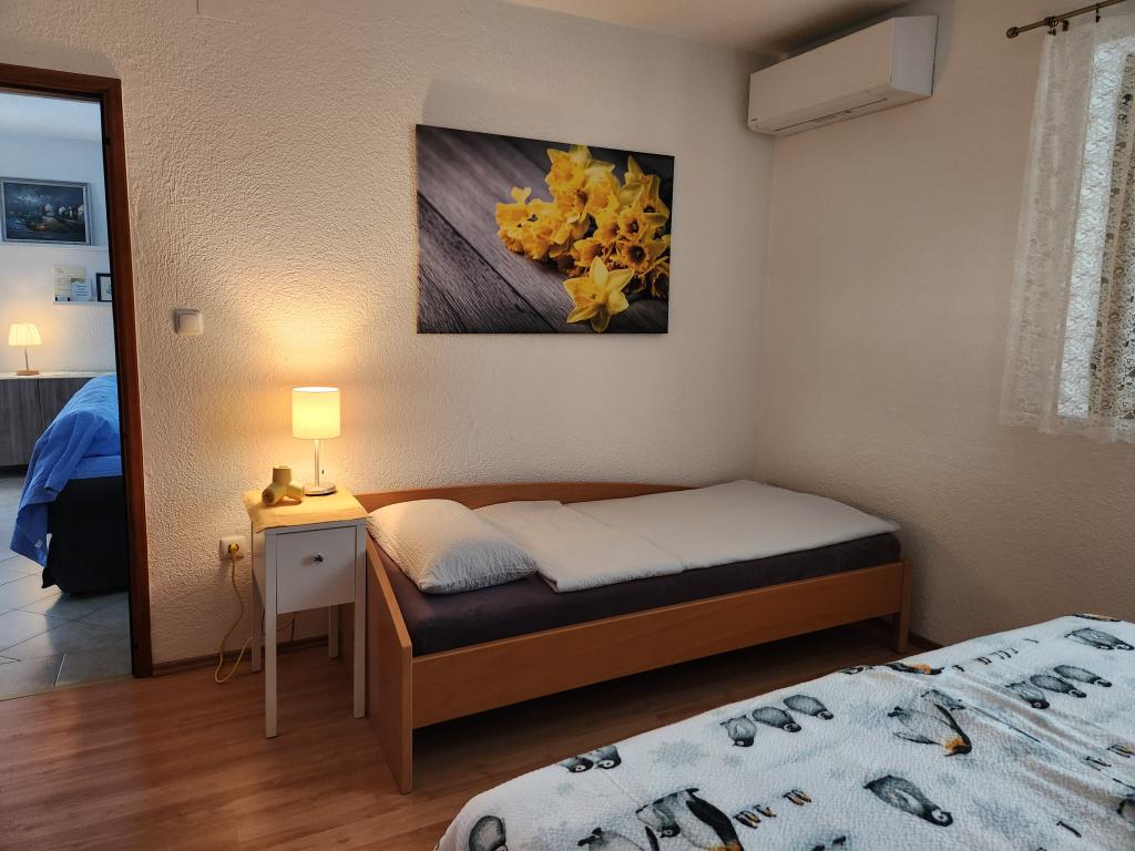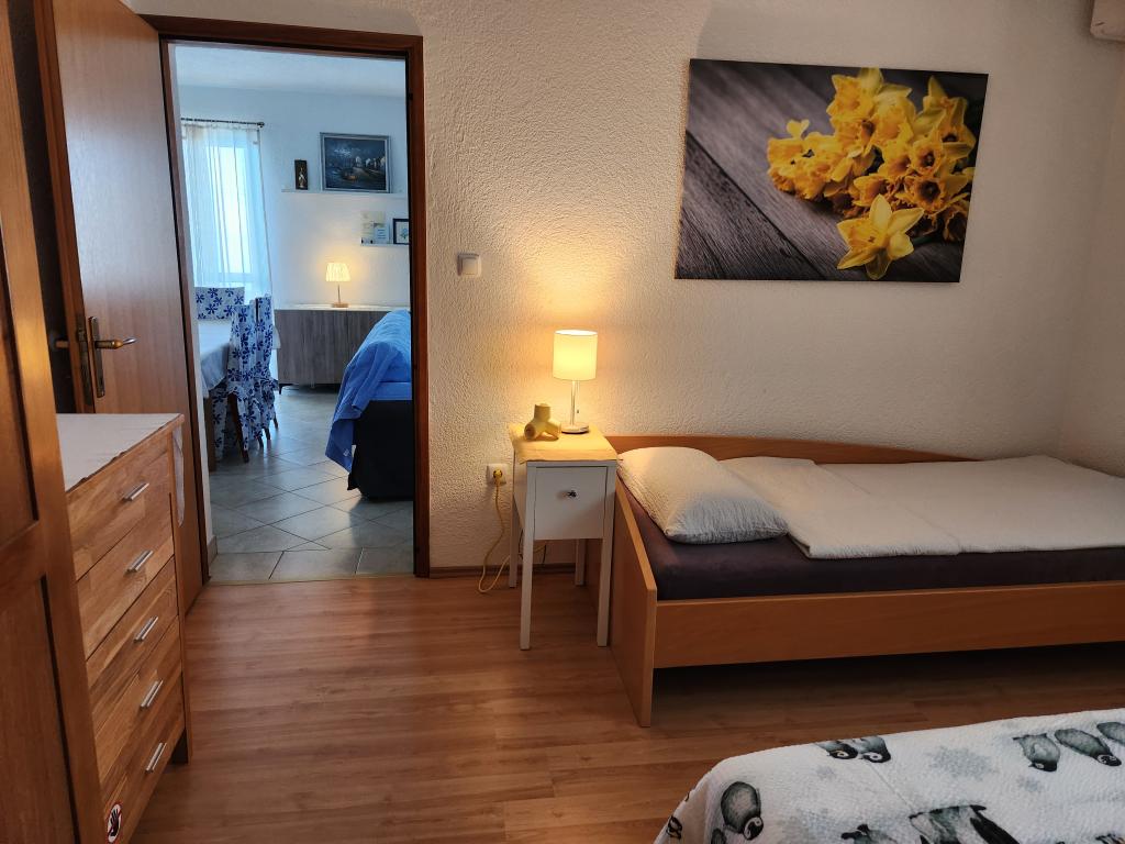 Vores to lejligheder er til grupper, familier, venner osv., der kender hinanden godt. Der er ingen masseturisme i den lille by. Den smukke havudsigt fra terrassen inviterer dig til at slappe af, hvile og genoplade batterierne. Ejerne bor på husets loft. Du finder parkering på gaden på deres egen grund. Op til tre biler kan parkeres. Penge til nøglen på stedet. Stranden kan nås til fods på cirka 10 minutter. Stedet har alt, hvad du behøver til hverdagen. Fra Karlobag kan du tage på smukke dagsture såsom Plitvicesøerne, øerne Rab og Pag, byen Zadar, Krka-vandfaldene, Paklenica-grotterne, vandreture i Velebit og meget mere. I landsbyen kan du købe alt til dine daglige behov. Bageri, supermarked, hæveautomat osv.