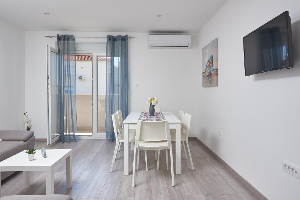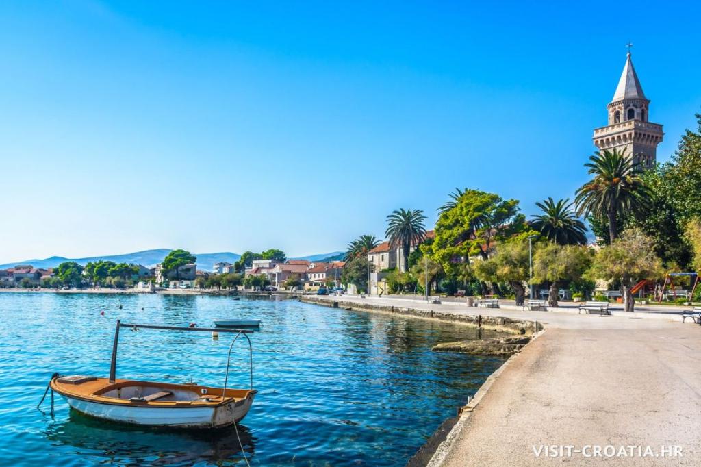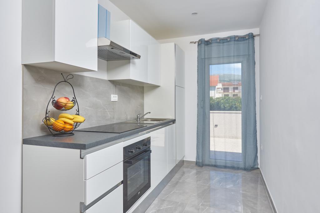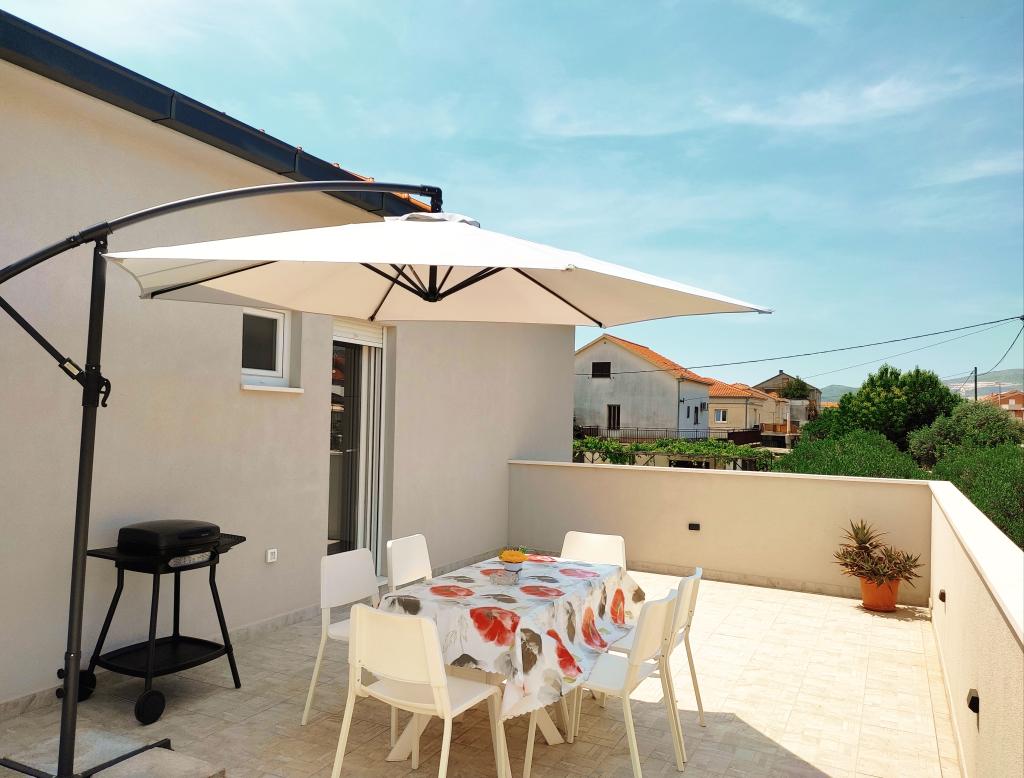 Nyrenoveret lejlighed med stor terrasse og altan. Beliggende i Kaštel Štafilić, et lille, roligt sted, nær UNESCO-byerne Trogir og Split. Et ideelt sted for en familieferie. Lejligheden består af et fuldt udstyret køkken, en stue, tre soveværelser med dobbeltseng og et badeværelse. Lejligheden har aircondition, har 4 parkeringspladser, WiFi, TV og elektrisk grill. Babysæde og barneseng er tilgængelige efter anmodning. Stranden med cafébar, pizzeria og legeplads ligger 5 minutters gang derfra. Inden for 200 meter fra lejligheden er der butikker, caféer, restaurant, slagter, fiskemarked, hæveautomat, apotek. Det nærmeste indkøbscenter ligger 5 minutters kørsel derfra.