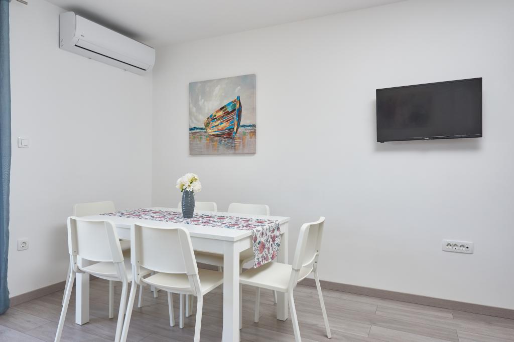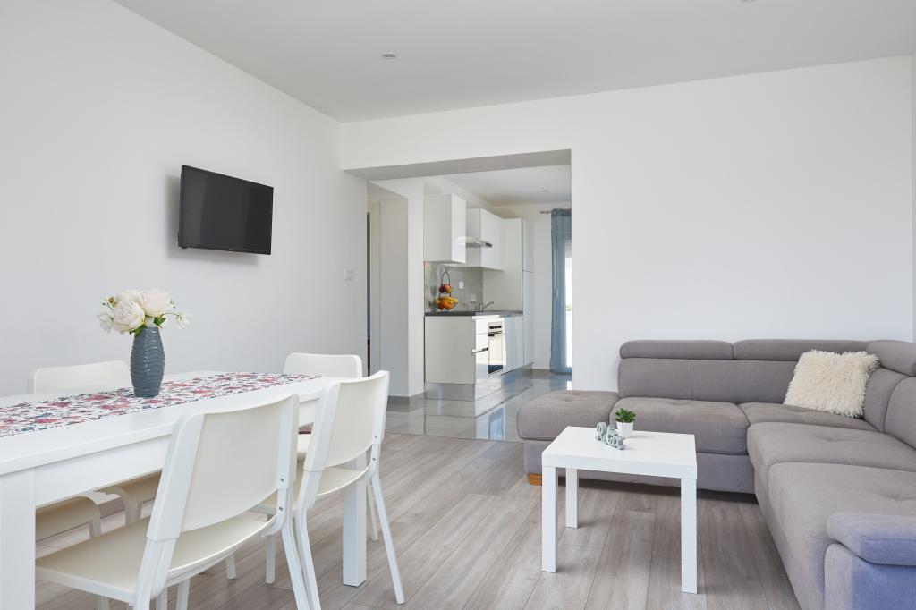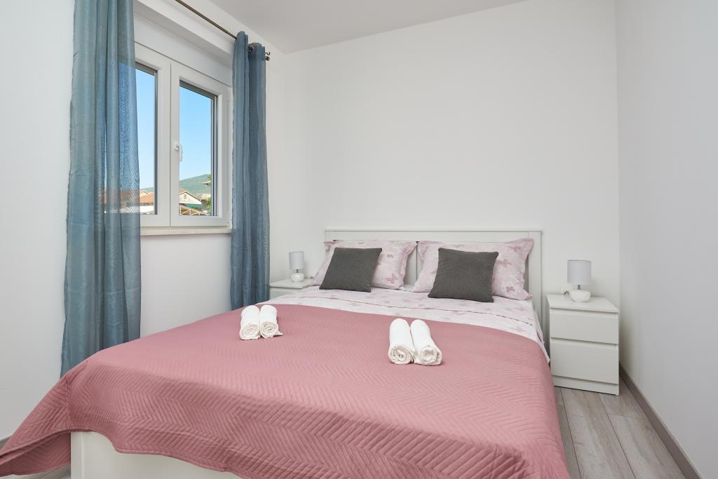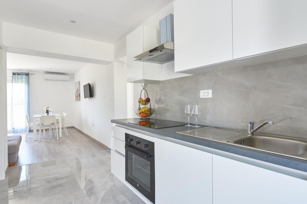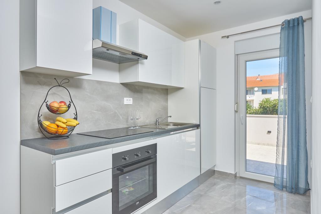 Nyrenoveret lejlighed med stor terrasse og altan. Beliggende i Kaštel Štafilić, et lille, roligt sted, nær UNESCO-byerne Trogir og Split. Et ideelt sted for en familieferie. Lejligheden består af et fuldt udstyret køkken, en stue, tre soveværelser med dobbeltseng og et badeværelse. Lejligheden har aircondition, har 4 parkeringspladser, WiFi, TV og elektrisk grill. Babysæde og barneseng er tilgængelige efter anmodning. Stranden med cafébar, pizzeria og legeplads ligger 5 minutters gang derfra. Inden for 200 meter fra lejligheden er der butikker, caféer, restaurant, slagter, fiskemarked, hæveautomat, apotek. Det nærmeste indkøbscenter ligger 5 minutters kørsel derfra.