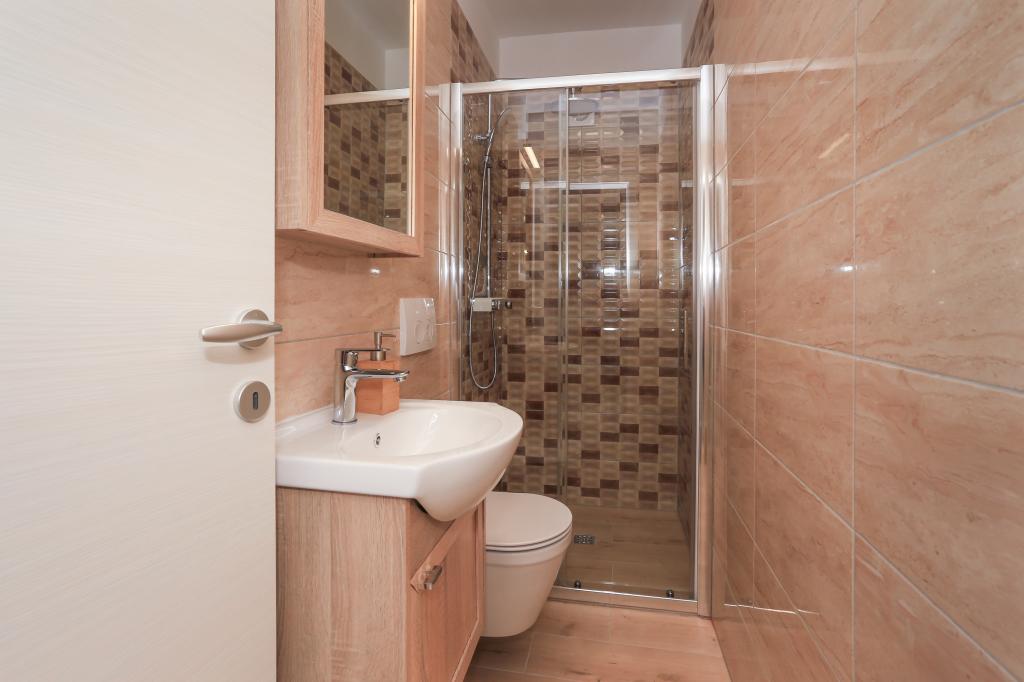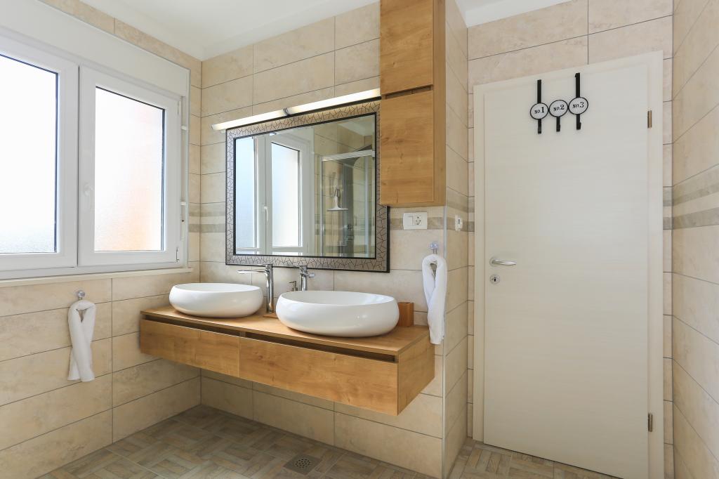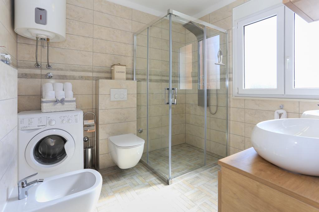Denne helt nye lejlighed ligger i centrum af Kastel Gomilica og er fuldt udstyret til dit komfortable ophold. Kun få minutter væk ligger Marina Kaštela, en busstation (100 meter væk) med en direkte forbindelse til Split, lufthavnen samt en forbindelse til Trogir. Derudover ligger togstationen kun 400 m væk med en forbindelse, der tager dig direkte til centrum af Split (byhavn og busstation), hvilket er et fantastisk sted at besøge de omkringliggende øer. Få minutters gang fra lejligheden ligger en stenstrand med barer og yderligere faciliteter (trampolin, gynger osv.). Vores gæst har en privat indgang til deres egen parkeringsplads, så du har fuldstændig privatliv og sikkerhed. Lejligheden består af en stor stue forbundet med køkken og spisestue (35 m2). Den har 3 soveværelser (to med dobbeltsenge - 1,6x2,0m), mens et værelse har en stor dobbeltseng (1,8x2,0m) og en enkeltseng (0,9x2,0m). Lejligheden har også 2 komplette badeværelser med brusere. Lejligheden ligger på anden sal.