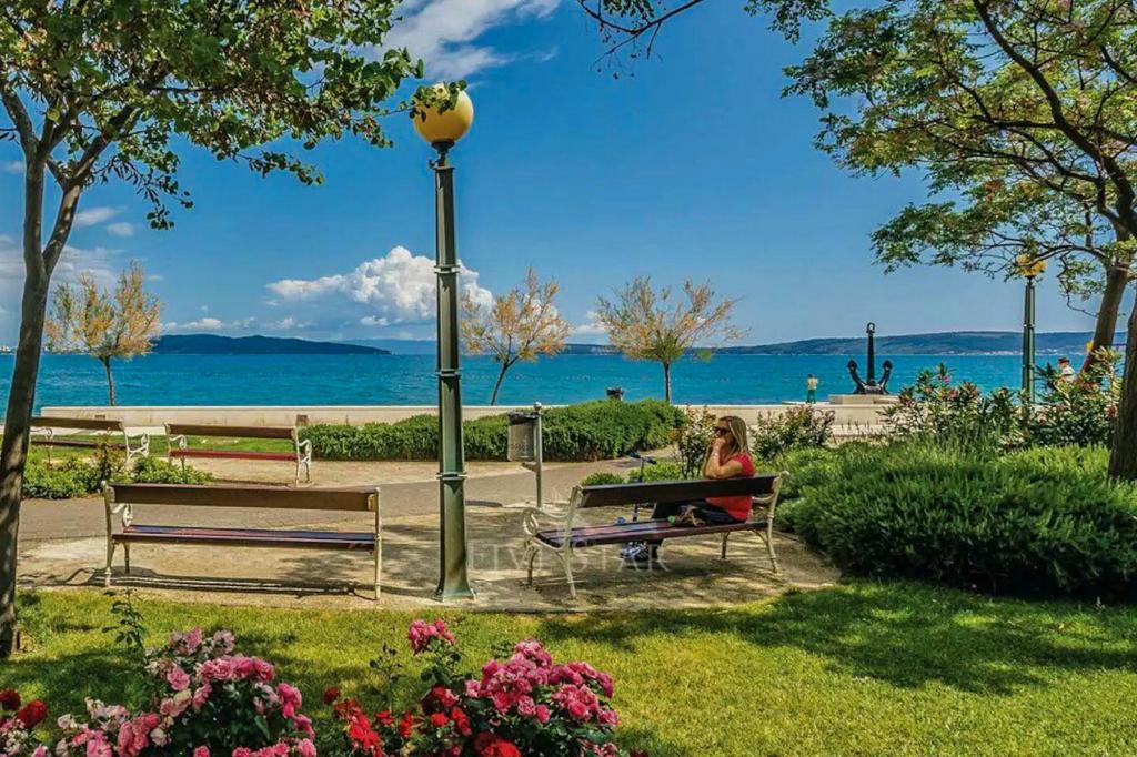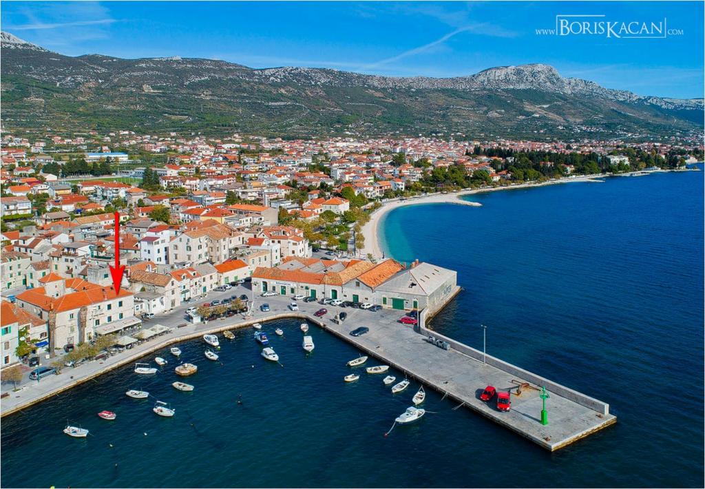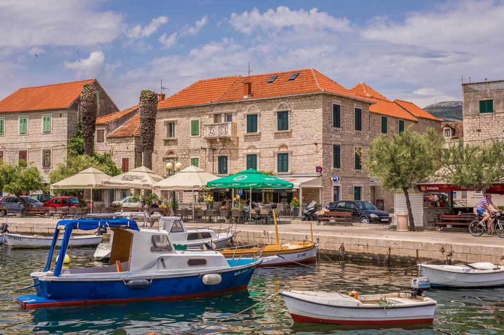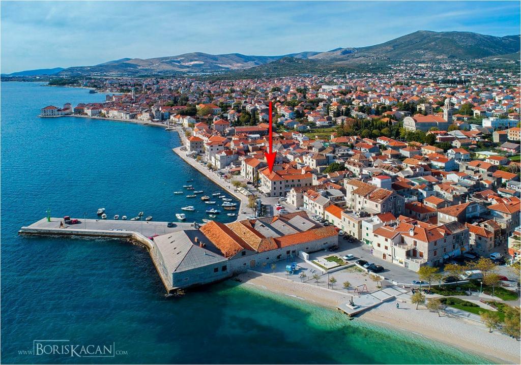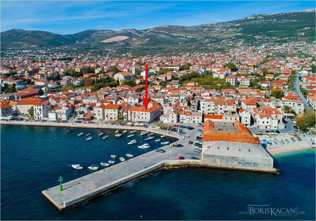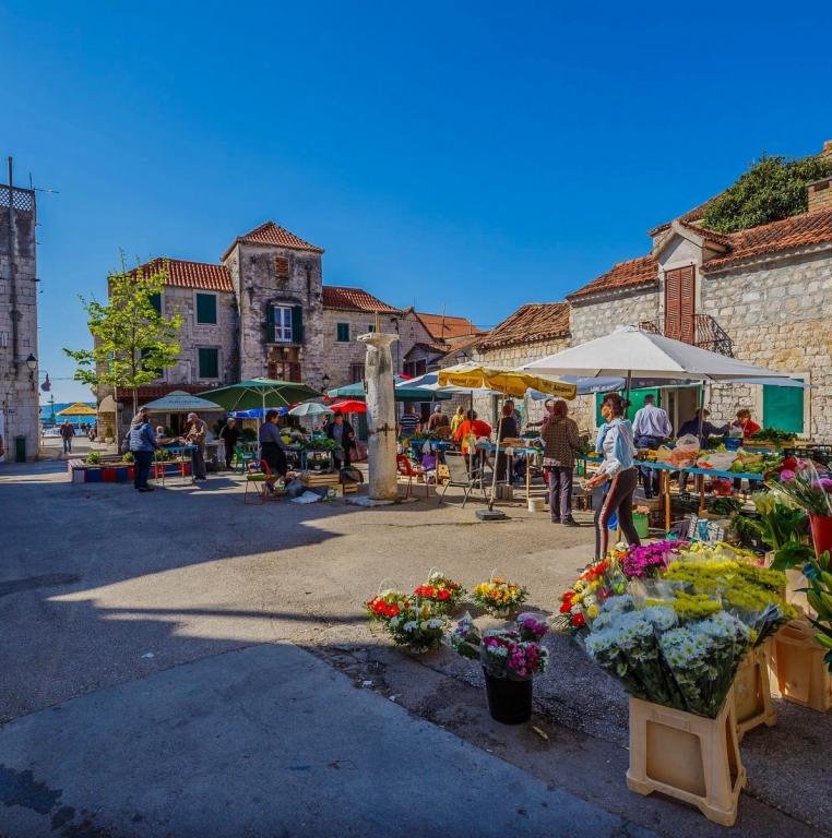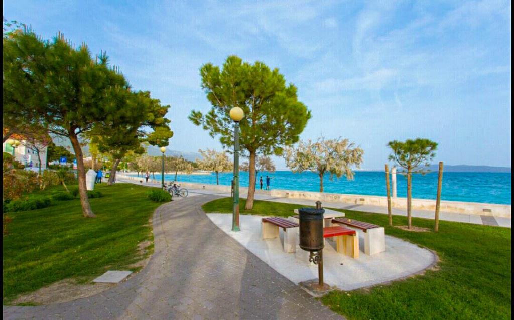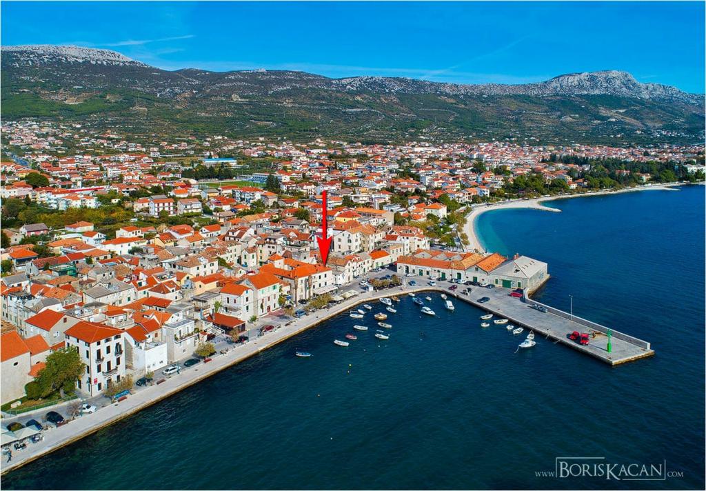 Turistskat er inkluderet i prisen.Denne smukke lejlighed ligger i byens centrum med alle faciliteter i nærheden: butikker, marked, fiskemarked, bageri, apotek, restauranter, barer, vekselkontor, lang promenade ved havet og stranden med naturlig skygge få skridt fra lejligheden, der kaldes Đardin . Fra molen i den nærliggende lille havn er der i sommersæsonen en bådlinje til byen Trogir samt mange båse med tilbud på udflugter: Krka vandfald, en bådtur til den blå hule på øen Vis, svømning på den smukkeste strand i Bol på øen Brac, holmen - Visovac kloster, bådtur til Dubrovnik, Hvar, Korcula og mange andre udflugter.