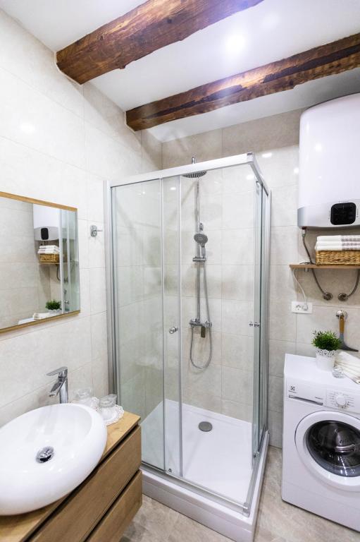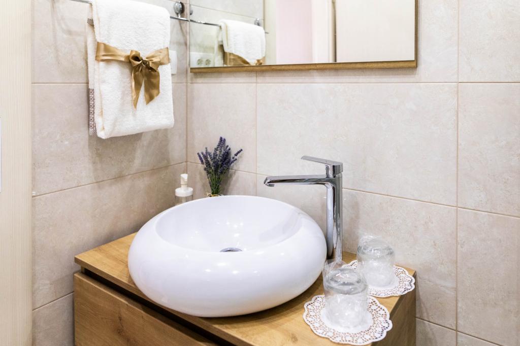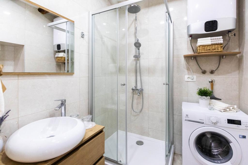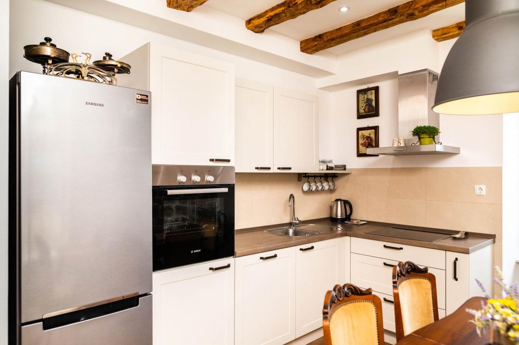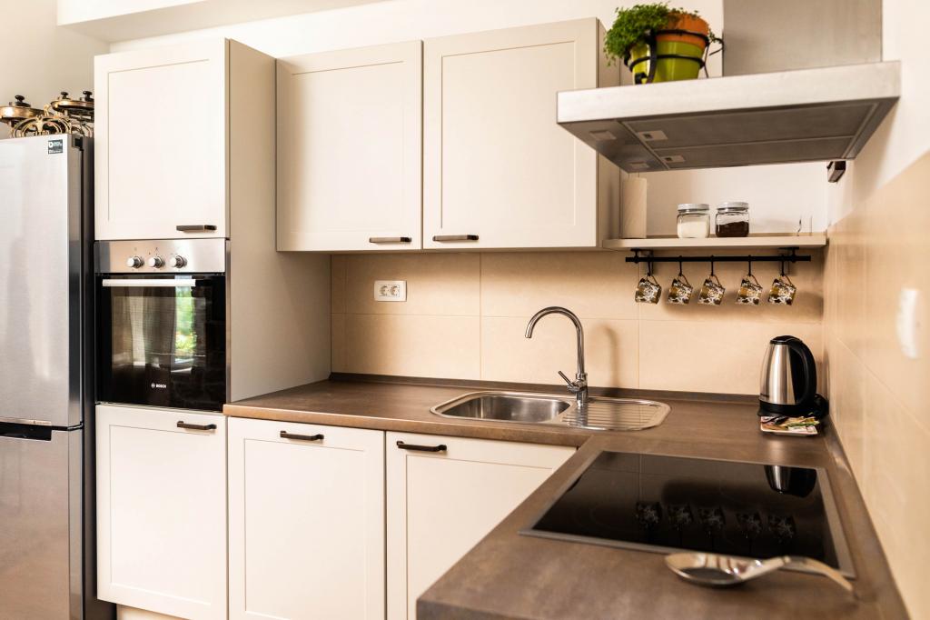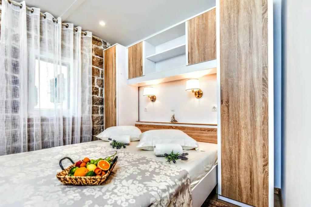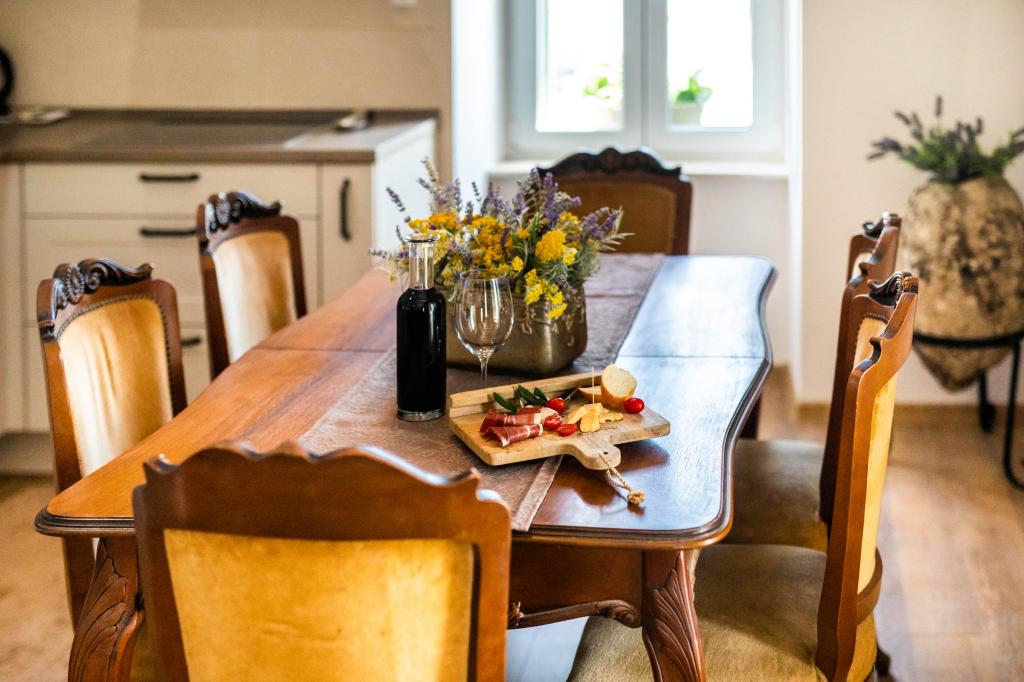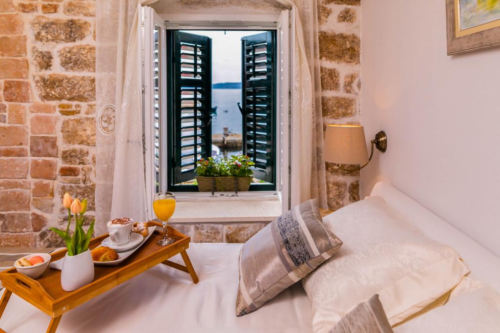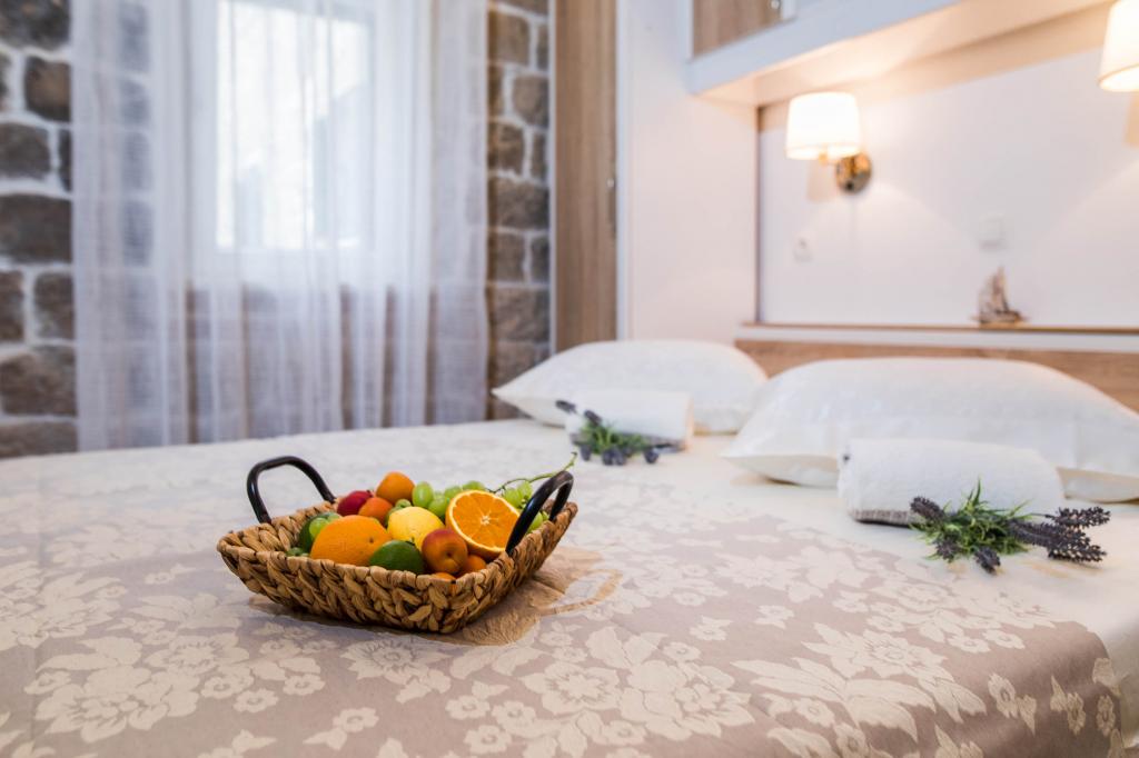 En to værelses, betagende lejlighed, fuldstændig renoveret, dekoreret og udstyret, lige ved havet og en lang promenade. Kombinationen af moderne og antik suppleres med stenvægge, originale træbjælker og originale detaljer fra fortiden. Det er placeret på 1. sal i bygningen, som trætrapper fører til. Takket være dens beliggenhed er denne renæssance-borg-fæstning fra det 15. århundrede fuld af lys og havudsigt fra alle værelser, så du får indtryk af, at du er på en stor balkon, hvorfra du kan følge og føle temperamentet for de lokale, der kan lide at socialisere, tale, skænke, joke, syng og muntre. Vores lejlighed har: placering, stil, elegance, komfort og ægthed.