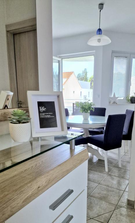 Behageligt møbleret lejlighed i Kastel Luksic, ligger 80 meter fra stranden. Lejligheden er til 2 personer 2 Fordelen af lejligheden er tæt på større byer i Split og Trogir, som er rige på sin kulturelle arv. Anlægget ligger 10 minutters kørsel fra lufthavnen, 2 min gang til centrum, butikker og kaffebarer og restauranter. Elskere af gang kan nyde lange gåture ved havet, der passerer gennem de 7 slotte.