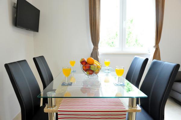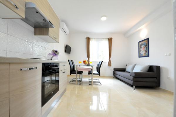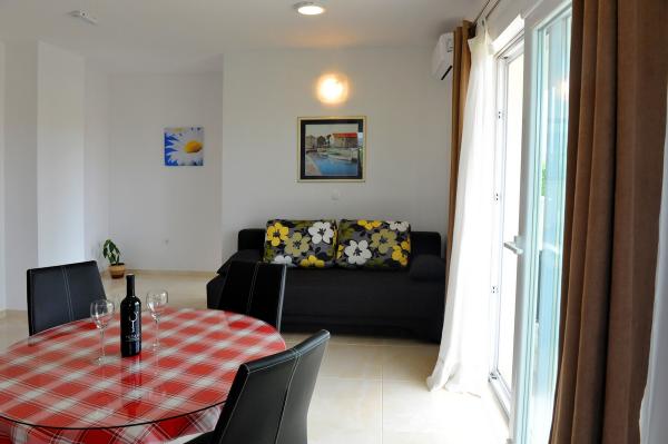 Moderne nybyggede hus med moderne møblerede og indrettede lejligheder. Huset ligger i et roligt sted, perfekt til familieferier, med stor græsplæne, have og frugttræer. Lejlighederne har et fuldt udstyret køkken med opvaskemaskine, stue, tv, badeværelse med bruser. Gæsterne har gratis parkering og wifi.