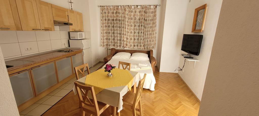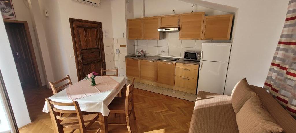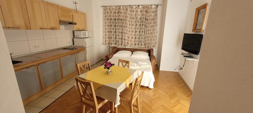 Fuldt udstyrede lejligheder i et roligt område af Kastela, beliggende 100 m fra havet. Anlægget er beliggende 5 minutters gang til centrum Hver lejlighed har et soveværelse, badeværelse og stue og er kategoriseret med tre stjerner giver dig en behagelig og hyggelig ferie. Lejlighederne er fuldt udstyret med TV/sat, aircondition, køkken, parkering og fælles grill placeret i gården. De omkringliggende steder vil være interessante for naturelskere, fordi de giver et fredeligt miljø for din komplette ferie.