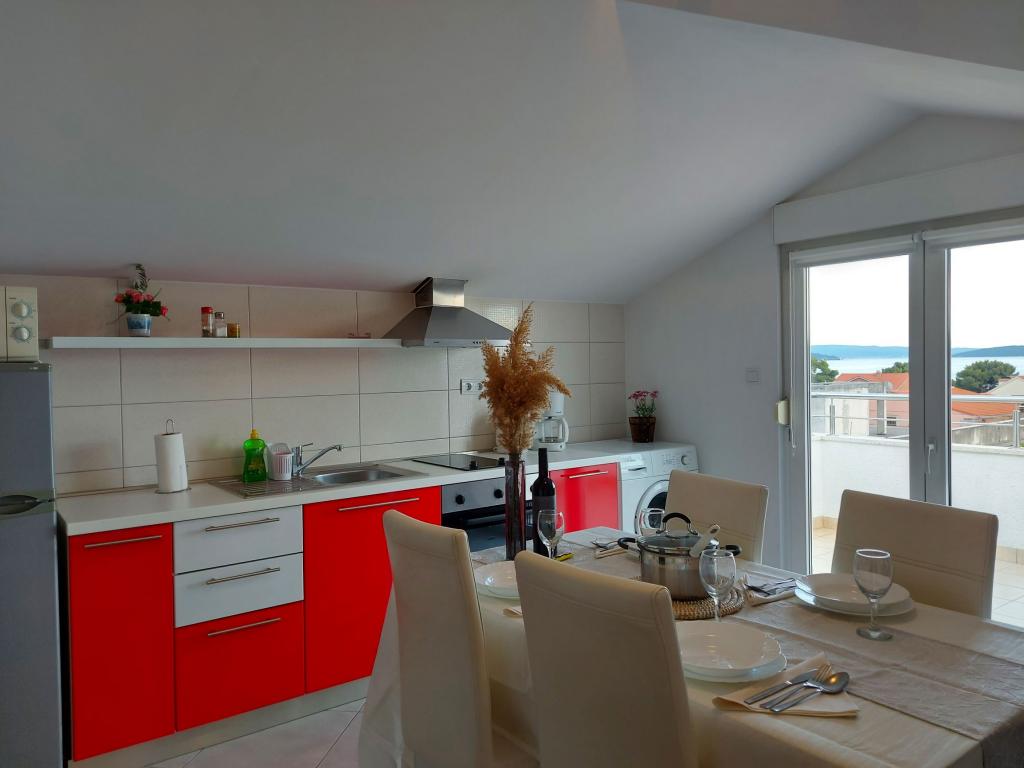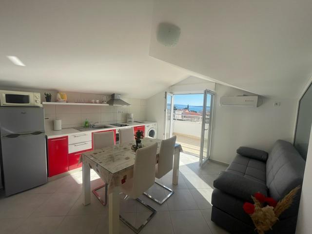 I huset er to lejligheder, evaluere apt. 1, som er perfekt. Den har to terrasser, den ene med et opholdsområde med udsigt over havet. Lejligheden er moderne og ren. Aircondition er ikke kun i køkkenet, men hvis du lader døren til det åbne rum, så det er nok. Free Wifi. Huset ligger på landsbyen vej, hvor trafikken dag og nat, men vores lejlighed var rettet til den anden side, så intet at forstyrre os. Ikke langt væk er handel. Super er også en swimmingpool med liggestole og bruser. Havet er omkring 200 m, men i stedet gik vi lidt længere, der var en bedre indgang i vandet. Jo tættere på stranden var i et hav af større sten. Ellers begge stenstrande. I nærheden er der flere restauranter. Langs stranden gå til den historiske del af byen, noget for romantikere. Der er også butikker, restauranter, cykeludlejning. På en tur er en kort gåtur til Split og Trogir. Tæt på Split lufthavnen, så fly fløj over os, men at vi ikke engang lytter. Mr. ejer Zoran er meget venlige og hjælpsomme. Lad os meget. Jeg tror, den apt. 1 fortjener 4 stjerner. Jeg gerne anbefale det til alle :-)