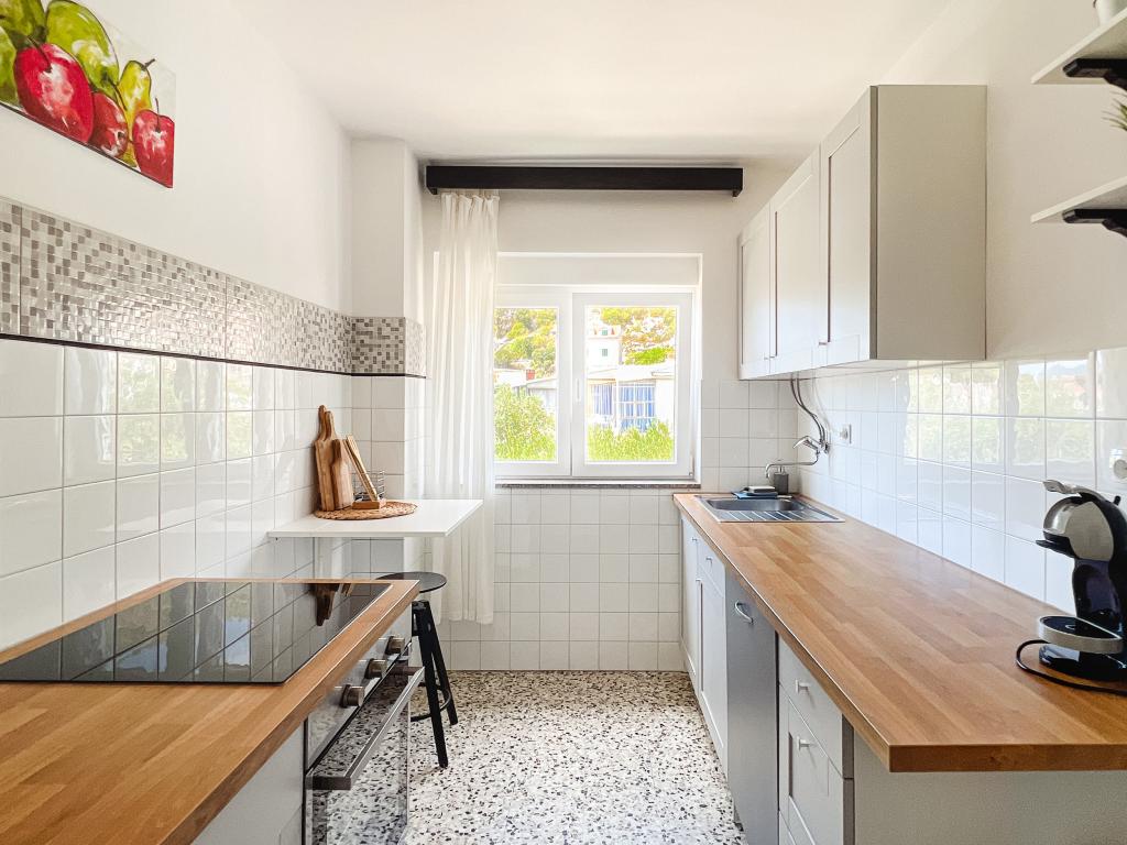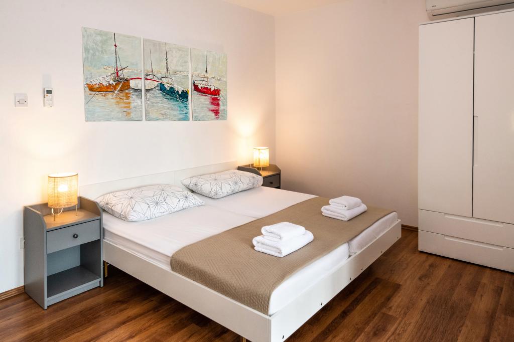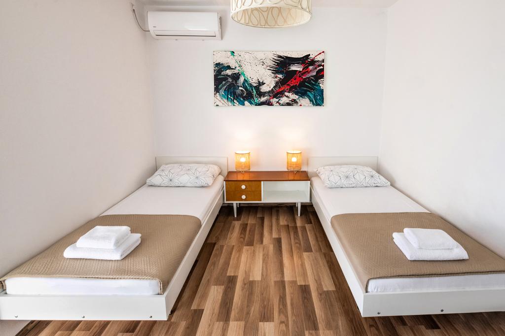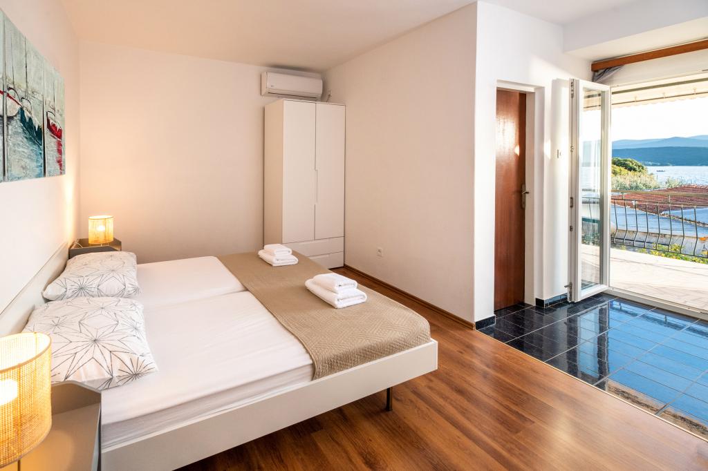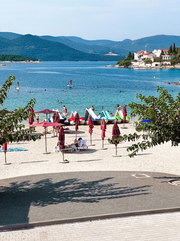 En af de bedste indkvarteringer, vi havde i Kroatien. Værterne er meget behagelige og imødekommende. Lejlighederne er smukke med havudsigt. Parkering i husets gård (der var tre af os, 6 voksne + 9 børn). Stor skyggefuld pergola med pejs til grill og udendørs madlavning. Der er også en vask med postevand ved siden af, værelserne er fuldt udstyret med sengelinned, håndklæder, service, opvaskemaskine, vaskemaskine, kaffemaskine. Der er to restauranter lige ved siden af og under huset, hvorfra vi kan tage mad til lejligheden. Ved siden af huset i gården er der også et sted at opbevare strandstole og oppustelige parasoller. Rigtig god bolig for en familie med børn, der kan gå 50 meter til stranden for sig selv.