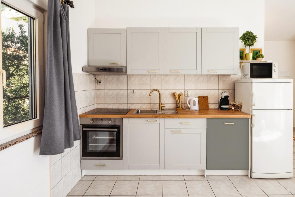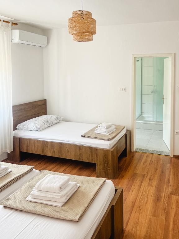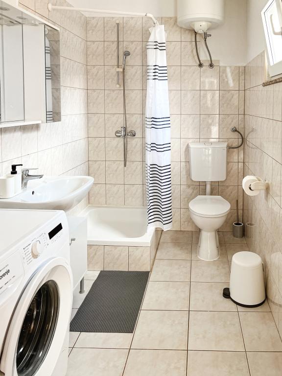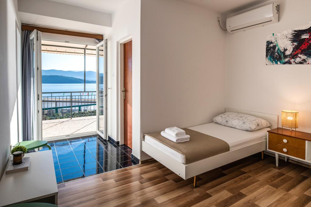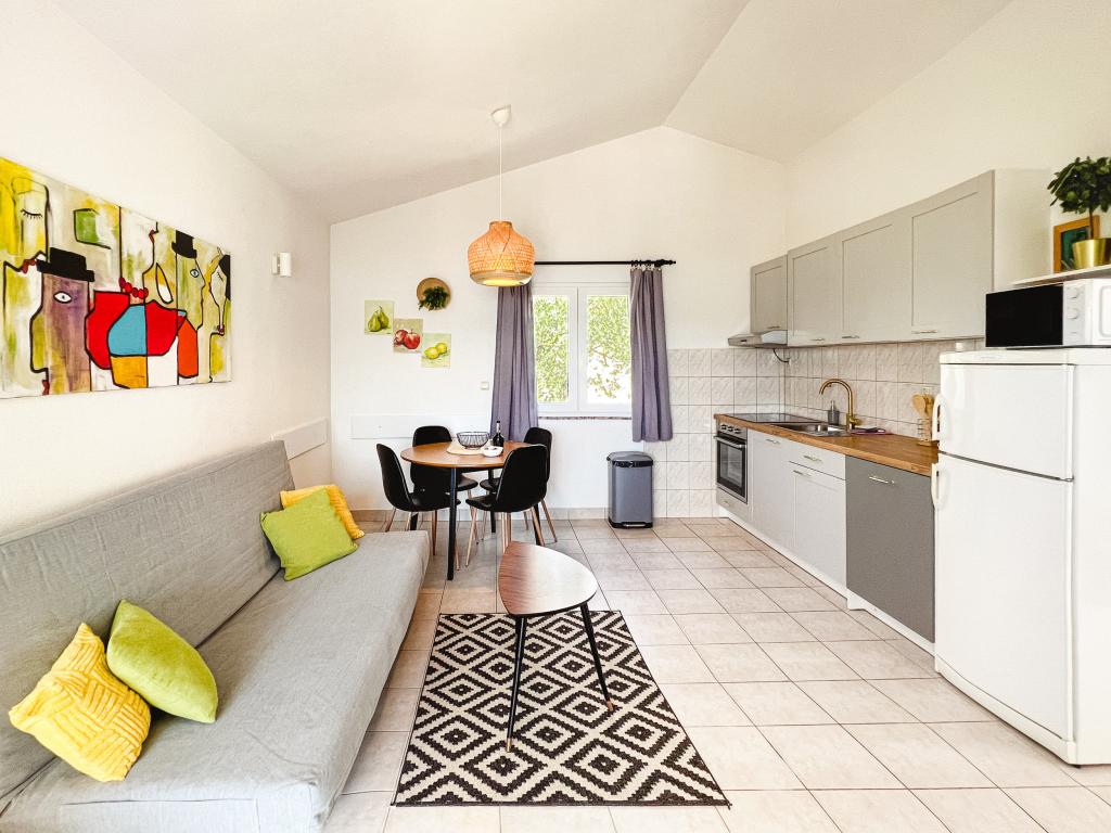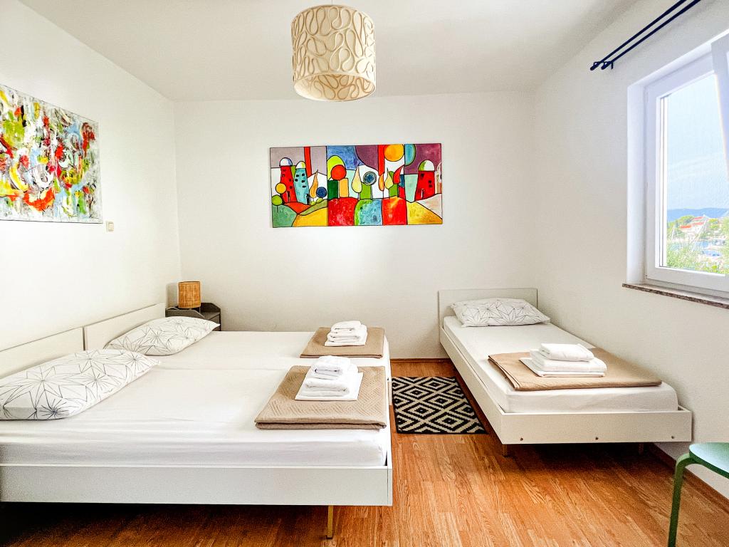 En af de bedste indkvarteringer, vi havde i Kroatien. Værterne er meget behagelige og imødekommende. Lejlighederne er smukke med havudsigt. Parkering i husets gård (der var tre af os, 6 voksne + 9 børn). Stor skyggefuld pergola med pejs til grill og udendørs madlavning. Der er også en vask med postevand ved siden af, værelserne er fuldt udstyret med sengelinned, håndklæder, service, opvaskemaskine, vaskemaskine, kaffemaskine. Der er to restauranter lige ved siden af og under huset, hvorfra vi kan tage mad til lejligheden. Ved siden af huset i gården er der også et sted at opbevare strandstole og oppustelige parasoller. Rigtig god bolig for en familie med børn, der kan gå 50 meter til stranden for sig selv.