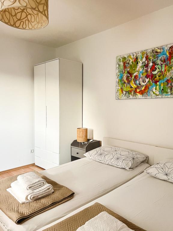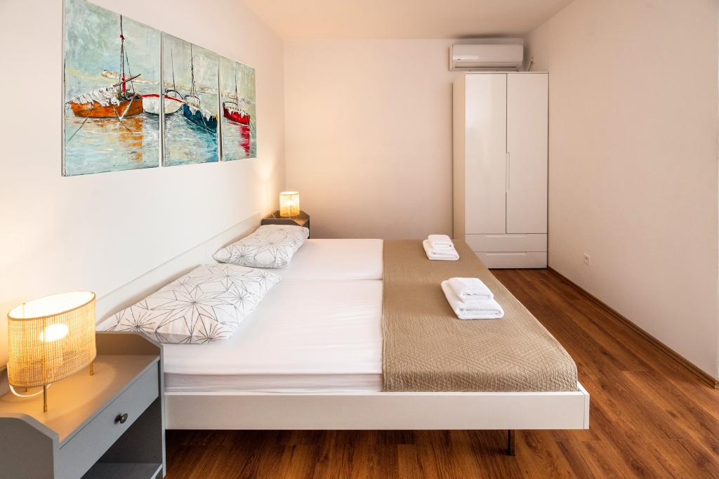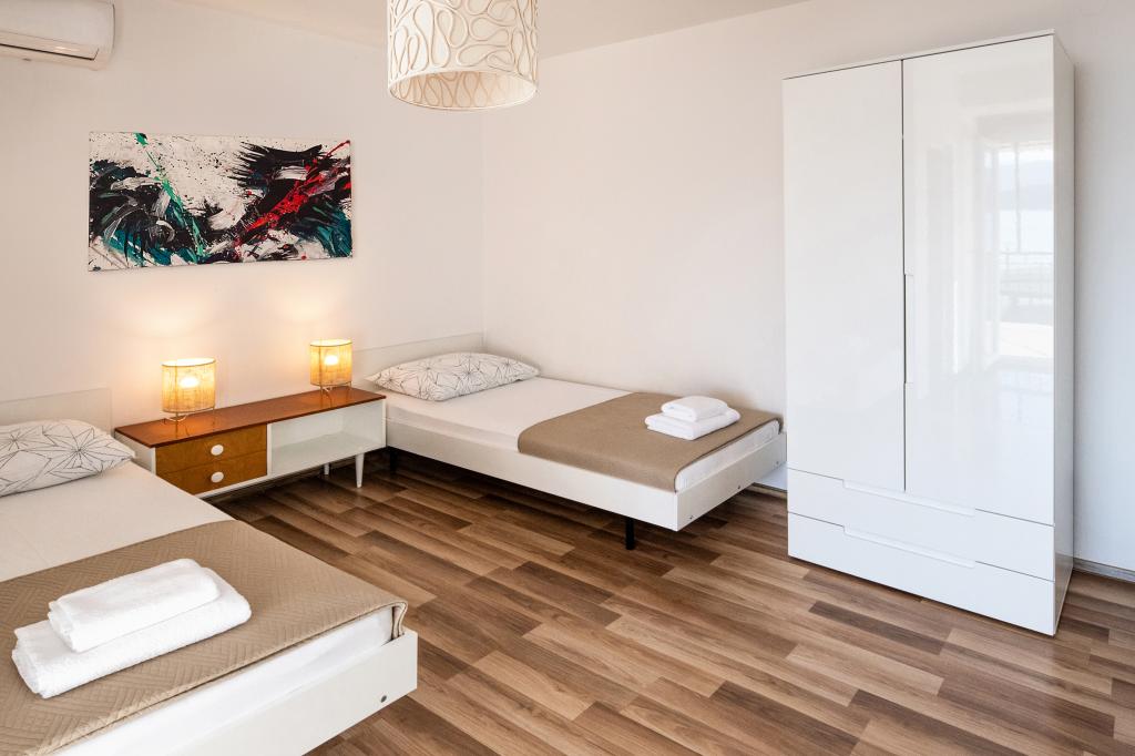 Perfekt sted med en meget god beliggenhed (kun et skridt fra stranden). Et af de bedste steder, vi har været i Kroatien. Lejligheden har alt hvad du behøver på ferien, hvert værelse har et badeværelse og aircondition, et fuldt udstyret køkken med opvaskemaskine. Tre altaner med udsigt over havet og strandene. Murstensgrill med siddepladser, parkeringspladser (værten sørger for at dække bilen, hvilket er et stort plus). Lækker olivenolie! Jeg anbefaler stærkt dette sted at slappe af
