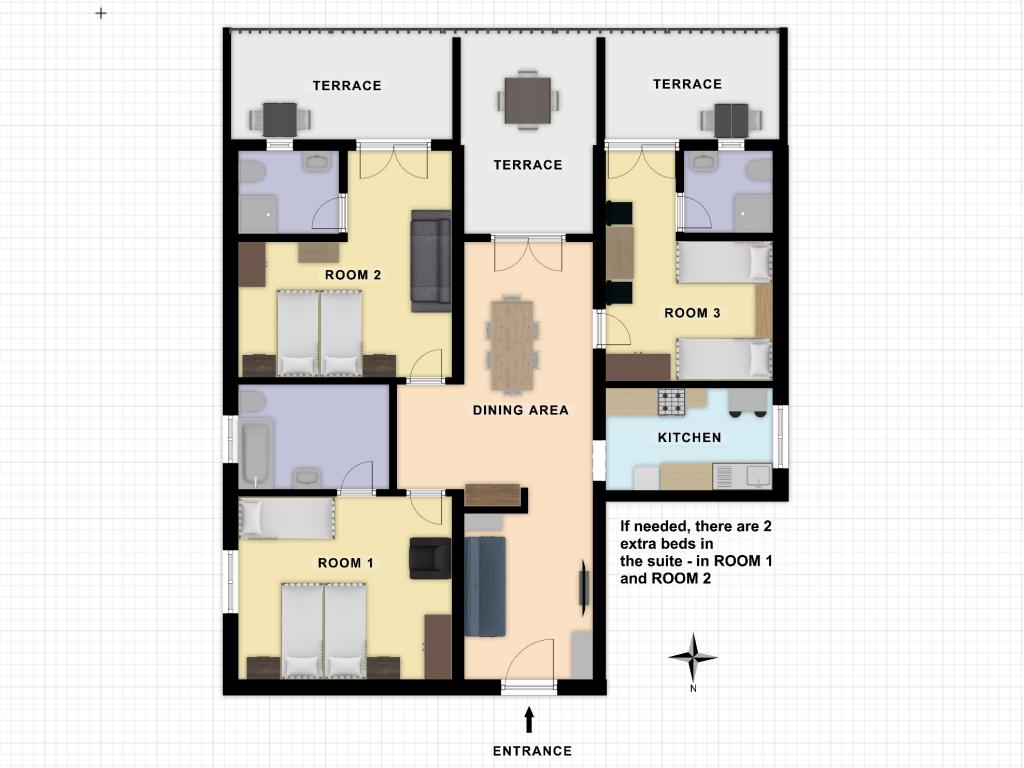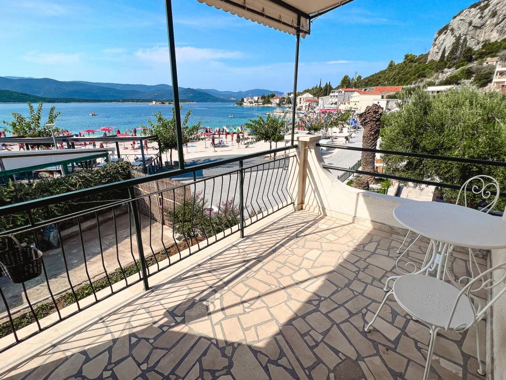 Beliggende i centrum af Klek, første række til havet, kun ti meter fra stranden og de fleste af de faciliteter, stedet tilbyder. Der er en parkeringsplads og en grill i huset, som er tilgængelig for gæster. Lejlighederne er udstyret med aircondition, TV, WiFi, og hver har terrasse ud mod havet. Den store lejlighed rummer udover stue, spisestue og køkken tre separate soveværelser, som hver har eget badeværelse, aircondition og udgang til terrassen.