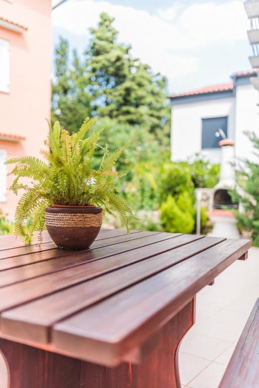 I landsbyen Klimno, et hus med 4 lejligheder i en rolig og solrig beliggenhed, i en blind vej. Afstand fra havet 200 m. Strandene er småsten og stenede. Til fælles benyttelse af grunde på 400 m2. Tilgængelig udendørs bruser, liggestole, grill, terrasse 60 m2, bord og bænk. 1 parkeringsplads pr lejlighed. Lejlighederne Fenix 1 og Fenix 2 ligger i den øverste stueetage, og lejlighederne Fenix 3 og Fenix 4 er på 1. sal.
