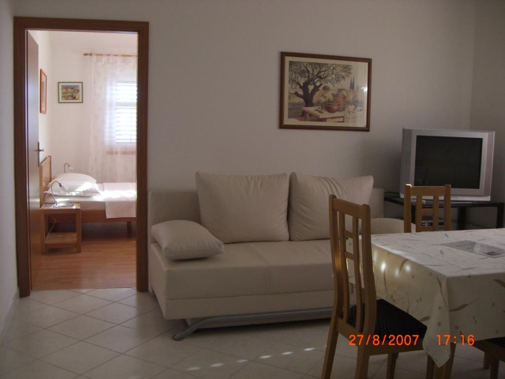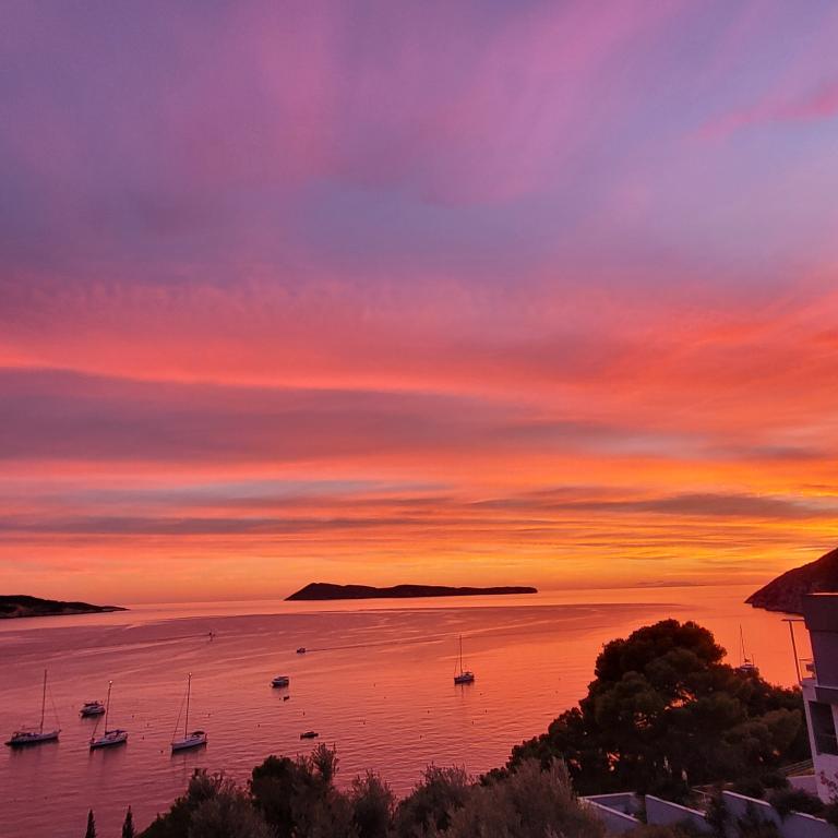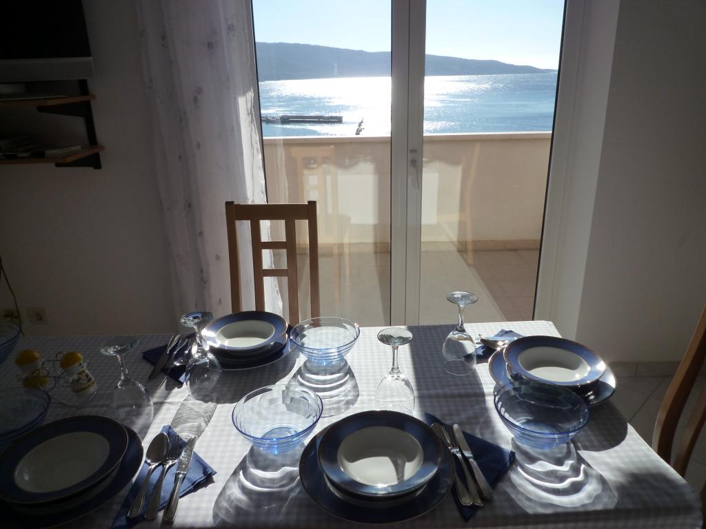Hus Kolelastra ligger i det grønne på bakken over bystranden (5 minutters gang gennem fyrretræsparken til stranden og kun 8-10 minutters gang til Riva, dvs. til centrum). På grund af den gunstige beliggenhed har alle lejligheder i Kolelastra-huset en vidtstrakt udsigt over hele bugten helt til de italienske bjerge, som kan ses i godt vejr. De vedhæftede billeder viser autentiske udsigter fra balkonen i den enkelte lejlighed, og vi deler dem gerne med jer, fordi vi selv ofte er fascinerede af brændende farver eller sølv foran os. Lejlighederne er udstyret med alt, hvad man behøver for et behageligt ophold og ferie (fra køkkenruller til frysere). Huset har sin egen parkeringsplads i det grønne og en vandtank på 100 m3, så gæsterne på ingen måde vil mærke en mulig vandmangel i tilfælde af tørt vejr. Det, gæsterne især fremhæver i deres anmeldelser, er: en smuk udsigt fra balkonen i alle lejligheder, upåklagelig renlighed, funktionelt udstyr og venlige værter.
