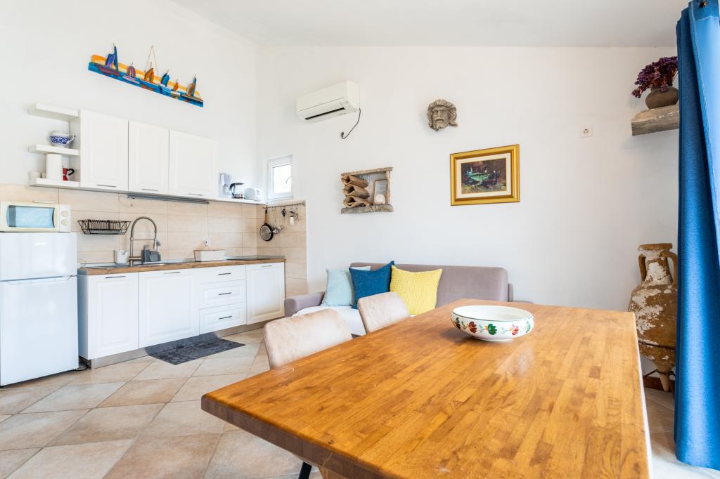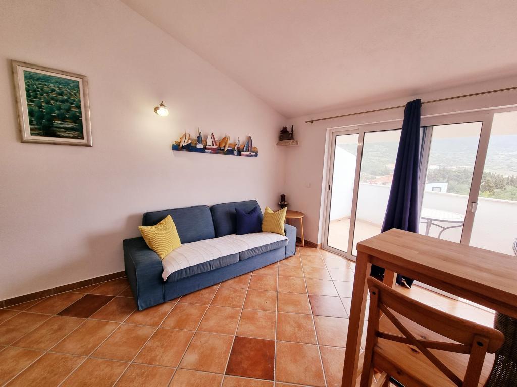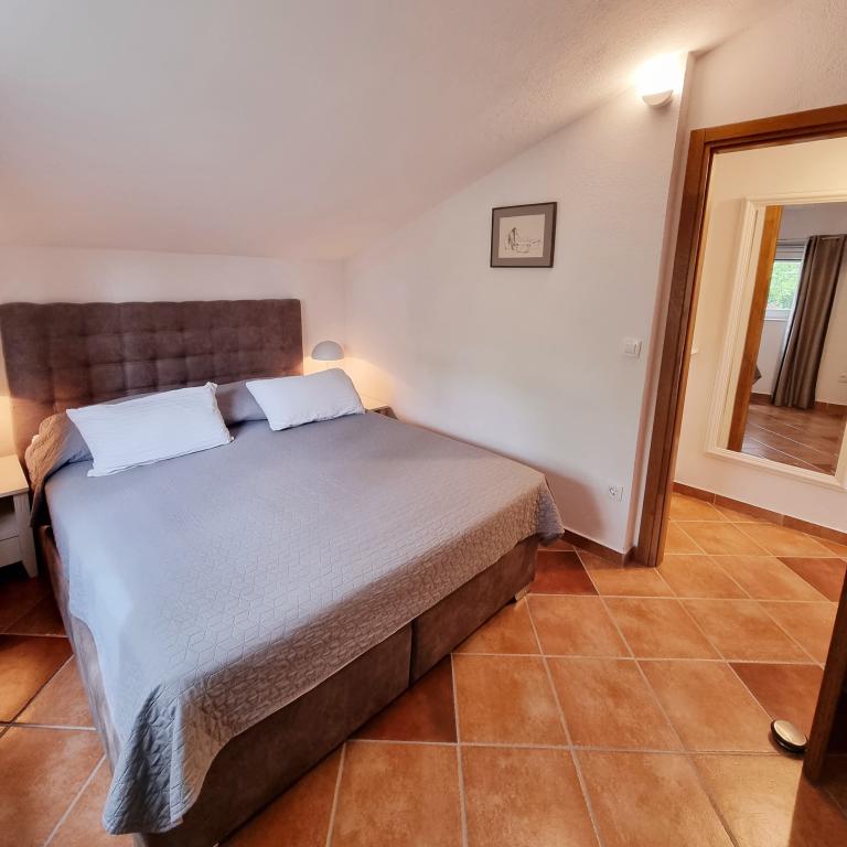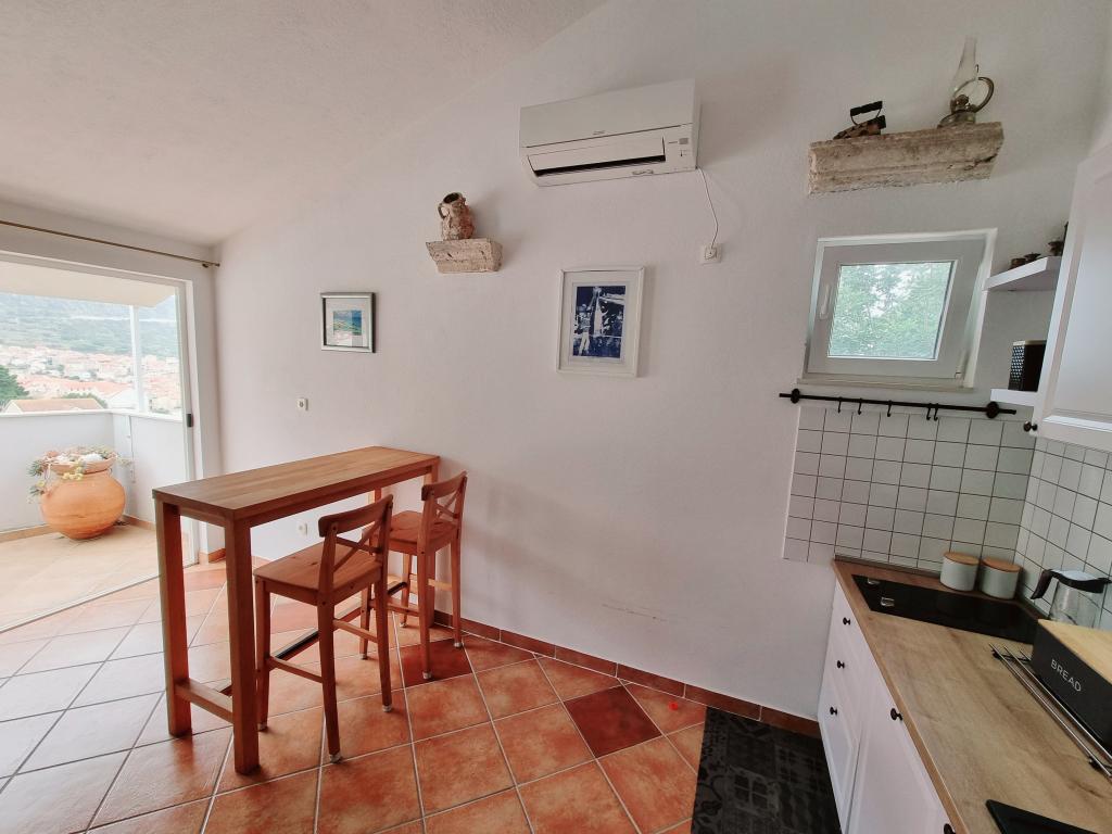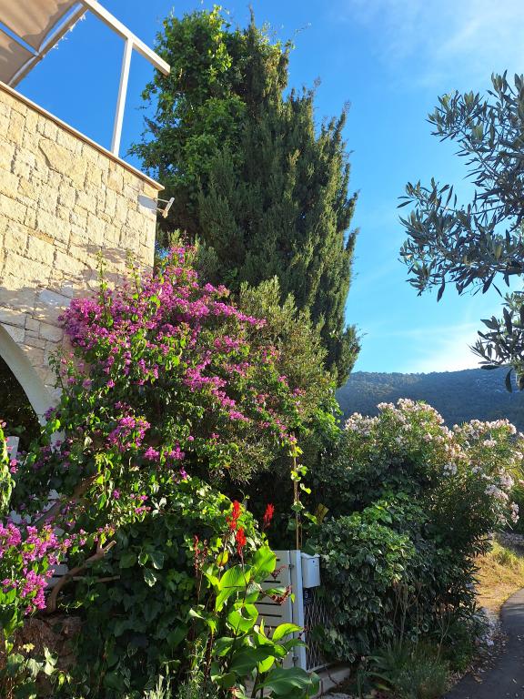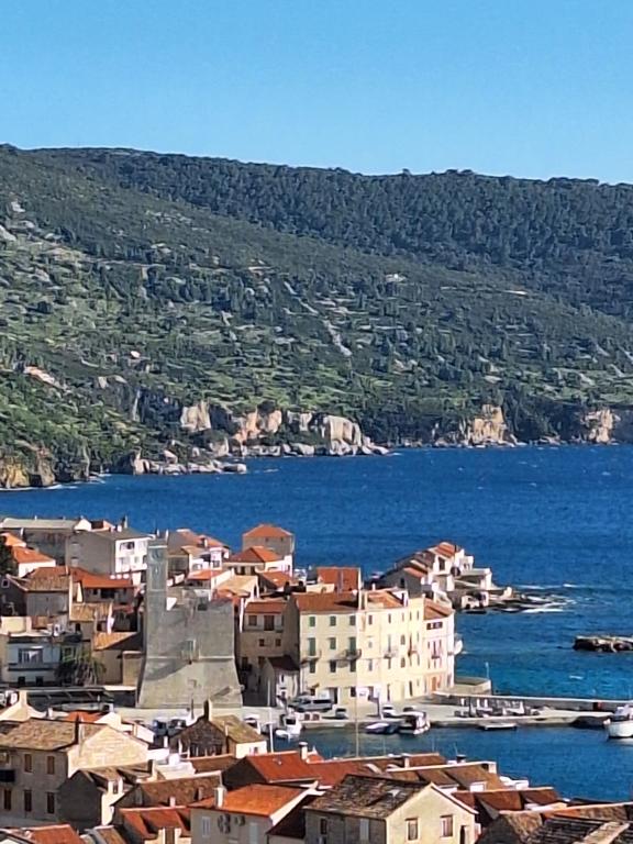 Apartments Prvan ligger på en bakke øst over hotel Biševo og er 350 m fra stranden og 500 m fra centrum. Takket være den høje beliggenhed tilbyder alle lejlighedernes terrasser en unik udsigt over Komi-bølgen, byen, de omkringliggende bjerge og St. Nicholas-klostret. Huset er omgivet af grønne områder, og naturlig skygge er givet af johannesbrød, oliven, citron, laurbær, bougainvillea, cypres og middelhavsplanter. Fra boligkapaciteten tilbyder vi to lejligheder (54m2) til to personer og en til fire personer (areal 96m2). Alle lejligheder er udstyret med aircondition, trådløst internet, fuldt udstyret køkken samt håndklæder og lagner. Der er en gratis parkeringsplads foran huset.