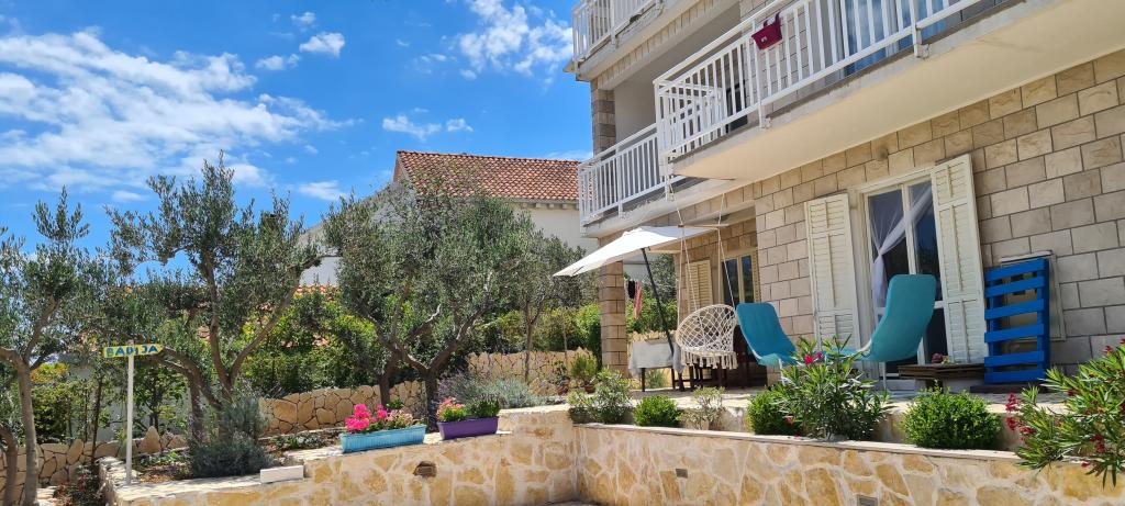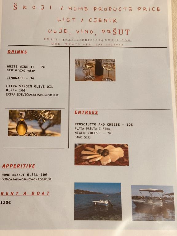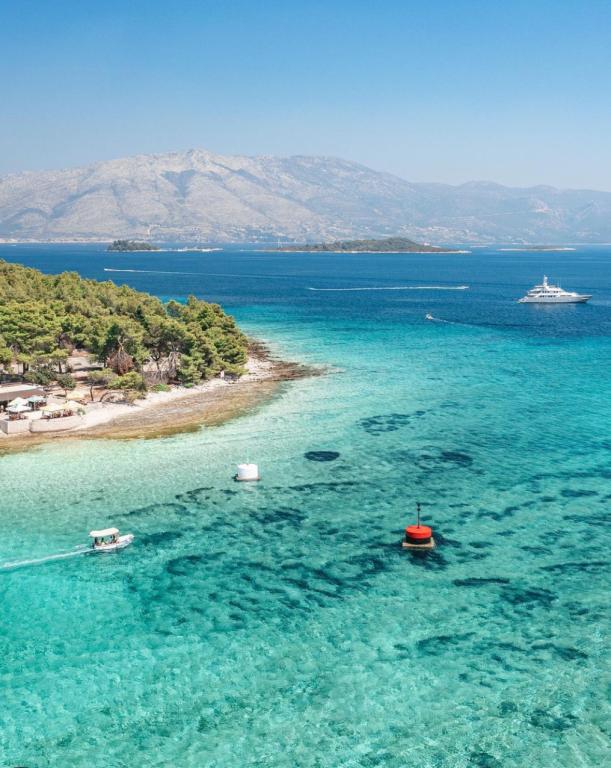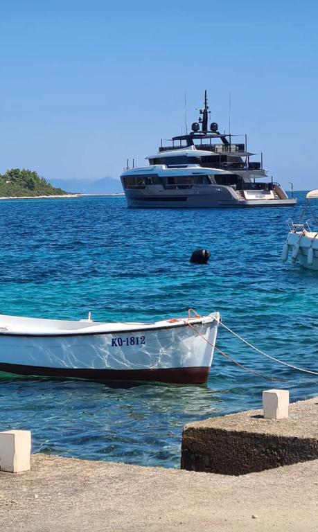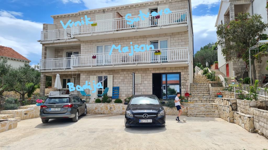 Škoji hus til leje på øen Korčula, paradiset i Kroatien. Nybygget og fuldt udstyret, beliggende mellem byen Korčula og byen Lumbarda langs Soline-bugten, tilbyder "Škoji" en ekstraordinær udsigt over hele bugten og de omkringliggende øer og holme. Fire lejligheder, traditionel middelhavs minimal arkitektur og en rummelig udendørs stue, med grill, middelhavshave, sup boards, cykler og strandstole...alle hjælpemidler...alle inkluderet i tilbuddet. Tilbring din ferie et sted, hvor du kan nyde naturen, og tilbered måltider med ekstra jomfru olivenolie fra haven. Under huset er en lille strand, nok til afslapning og svømning, og ved siden af stranden ligger speedbåden Key Largo Sessa med 60 hk, som udbydes, hvormed det er afslappende at sejle til de nærliggende øer og bugter, en skøn oplevelse . Der er fire parkeringspladser, og Wi-Fi er tilgængeligt overalt på anlægget. Fuldt udstyrede lejligheder Badija/4+2/, Majsan/4+2/, Sutvara/4+2/ og Vrnik/2+2/ med en smuk udsigt over havet, mens de omkringliggende haver skaber en ideel plads til stuen , mens indretningen er rolig, beroligende og enkel - få dig til at føle dig hjemme her på Korčula hos os.
