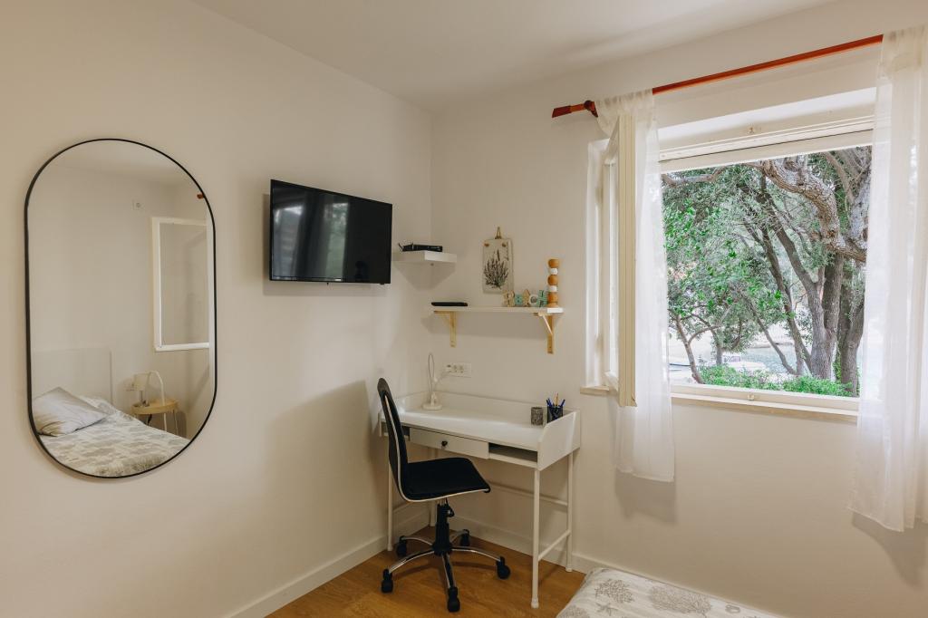 Apartment Dinko er et enkelt og komfortabelt lille hus på stranden, beliggende i en stille bugt Žrnovska Banja, kun få skridt til havet, og fuldstændig beskyttet mod udsigten til forbipasserende, omgivet af olivenlunde, citrus- og køkkenhave bare for dig. Hvis du vil væk fra hverdagen og tage en pause fra alt, er du på det rigtige sted! Du får øjeblikkelig forbindelse til Dink, de vil give dig en særlig beroligende stemning, og de bliver dit andet hjem! Forestil dig din første morgenkaffe på terrassen ... du ser det krystalklare hav, lytter til kvidren af fugle og sirisser, indånder duften af appelsiner, oliven og aromatiske urter ... Lejligheden består af et fuldt udstyret moderne køkken, 2 soveværelser, 2 toiletter og et badeværelse, 2 rummelige terrasser med udsigt over havet og parkering til 2 køretøjer. Aircondition, ubegrænset internet, tv (digitale og satellitkanaler), grill. Ideel til familier med børn, par og venner. Kom, forkæl og nyd! Dinko glæder sig til at se dig!