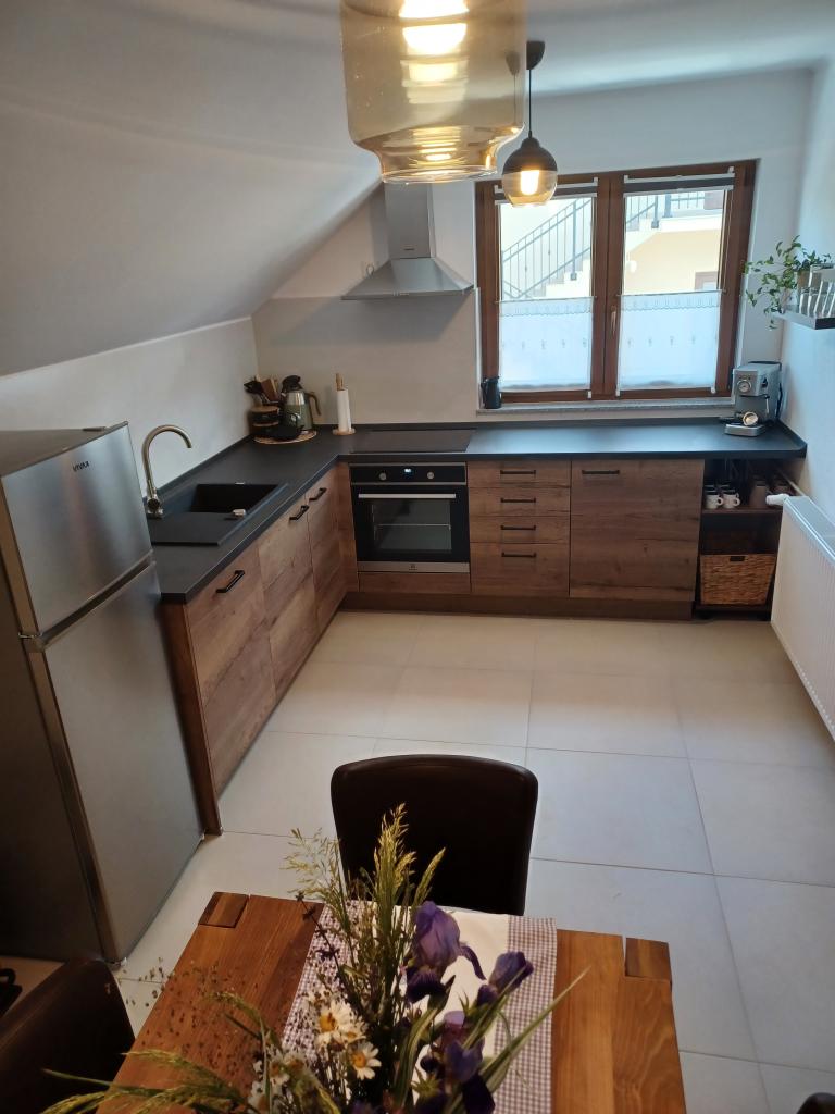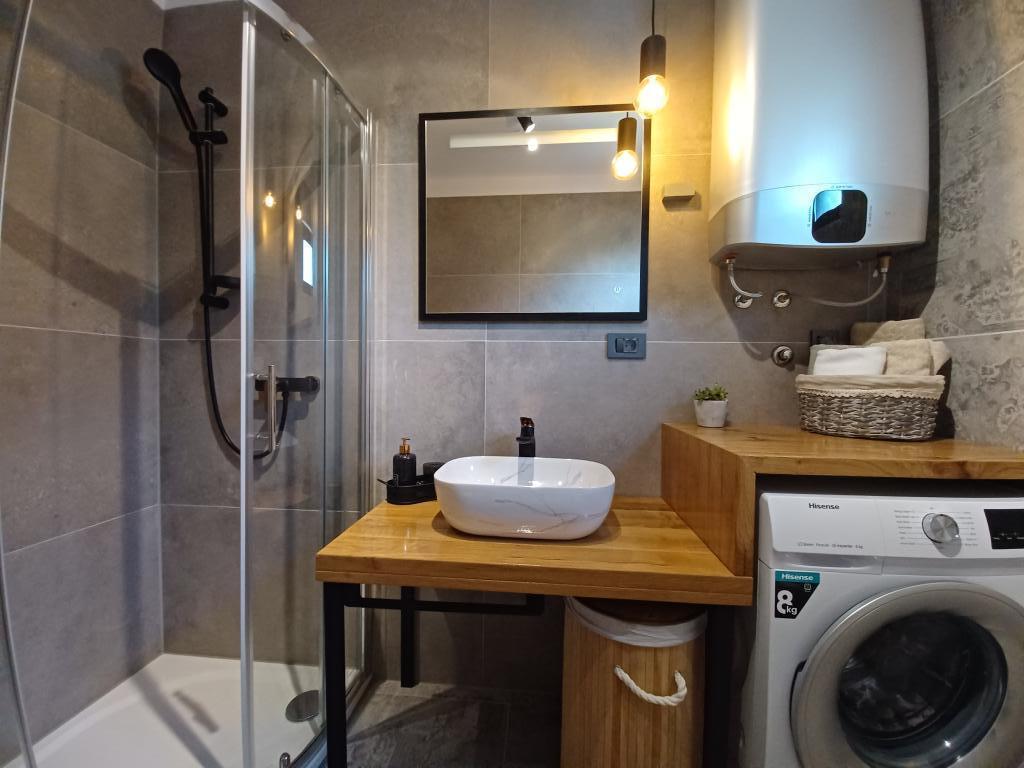 Bjergdrømmelejligheden tilbyder fremragende indkvartering til en behagelig familieferie eller munter venlig sammenkomst i eventyrregionen Lika, omgivet af århundreder gamle skove, mystiske huler, blå floder og søer. Korenica er et ideelt feriemål hele året rundt, fordi hver sæson bringer særlige charme og fornøjelser. Det er et sandt paradis for elskere af aktive ferier såvel som for dem, der ønsker at slappe af og nyde naturen og flygte fra den hektiske hverdag. Lejligheden består af to soveværelser, et fuldt udstyret køkken, en stue med et fladskærms-tv, et badeværelse og en balkon. Gæsterne kan benytte gratis parkering og WI-FI. Det er beliggende i et roligt område, kun 300 meter fra restauranter, butikker og et apotek.