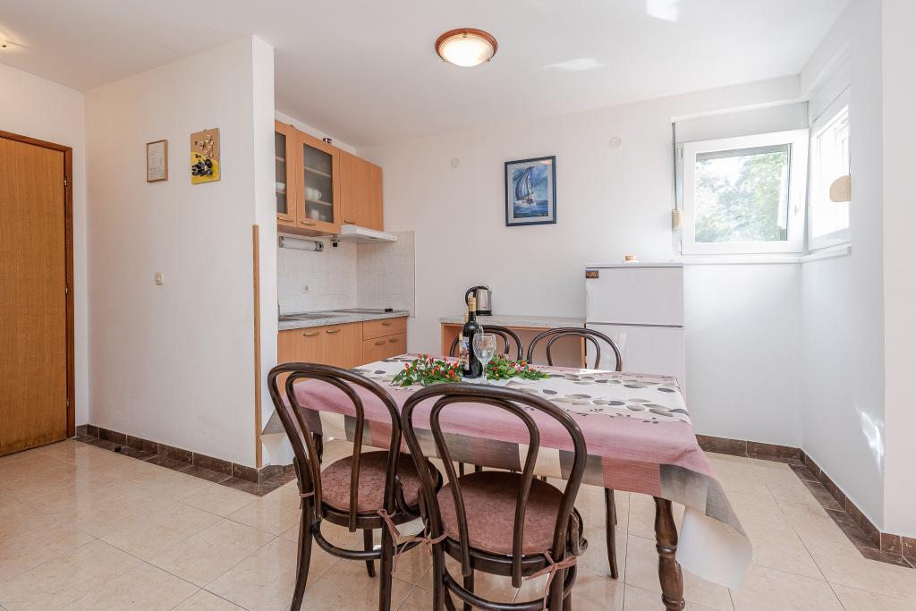 Opholdet var fyldt med naturens lyde og fred på grund af den overflod af grønne områder omkring lejligheden. Vi følte os meget hjemme. Pænt indrettet, fuldt udstyret og ren lejlighed, og udenfor er der en have med grill og bruser. Sengen var lidt mindre behagelig. Vi tilbragte behagelige stunder i ejernes selskab, som fik os til at føle os varmt velkomne. Velholdte strande, rent vand, naturlig skygge. Der er adskillige butikker og kvalitetsrestauranter i nærheden. Der er mange muligheder for at gå. Den bedste er den for det meste skyggefulde makadamsti til Petrčane. Det er også muligt at besøge en udendørsbiograf i byen.