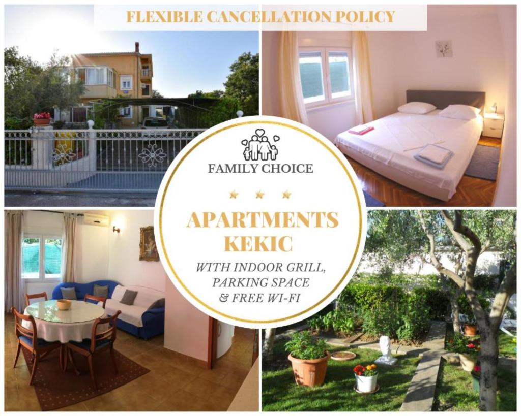 Apartments Kekic ligger i Kožin. Denne 3-stjernede private indkvartering tilbyder værelser med aircondition, grillfaciliteter, terrasse, have og gratis trådløs internetadgang. Samtlige værelser har terrasse med udsigt til haven. Samtlige ferieboliger i den private indkvartering har opholdsområde, fladskærms-tv med satellitkanaler, køkken, spiseplads og eget badeværelse. Ferieboligerne har klædeskab og elkedel. Apartments Kekic ligger 9 km fra Zadar og 36 km fra Biograd na Moru. Lufthavnen ligger 21 km væk.