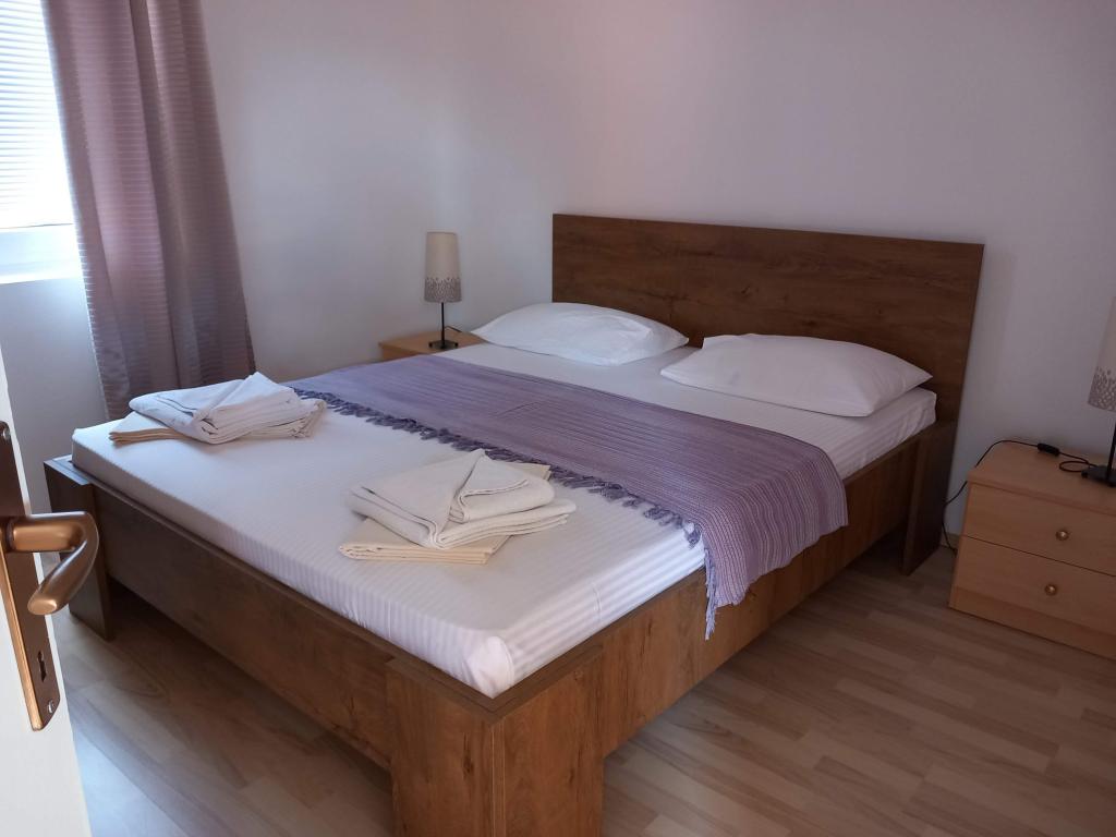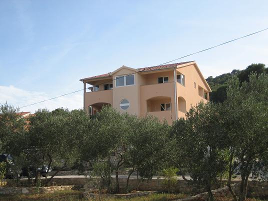 Ferielejlighed "Olive" ligger på øen Pasman, i End. Pasman Island ligger i nærheden af National Park Kornati og Krka National Park, som er lige modsat at besøge, hvis du vælger vores indkvartering på øen Pasman. I Middelhavet miljø, huset ikke langt fra havet, tilbyder overnatning i 6 lejligheder med en smuk havudsigt. Alle lejligheder har aircondition, terrasse, TV / SAT, LED TV, sengetøj, håndklæder, køkkenredskaber og madlavning og parkeringsplads i gården af huset og er tilgængelig for alle vores gæster, er der en stor grill og opholdsområde for 12 personer. Stranden er en sandstrand med en brolagt del og er specielt velegnet til små børn, og dels strand er dækket med små beløb, så du har ingen steder at skjule fra solen. Lejlighed hus "Olive" ligger 150 m fra havet, og den vigtigste havn, hvor posthus, apotek, ATM, marked, butikker, restauranter og værtshuse ligger 2 km væk.