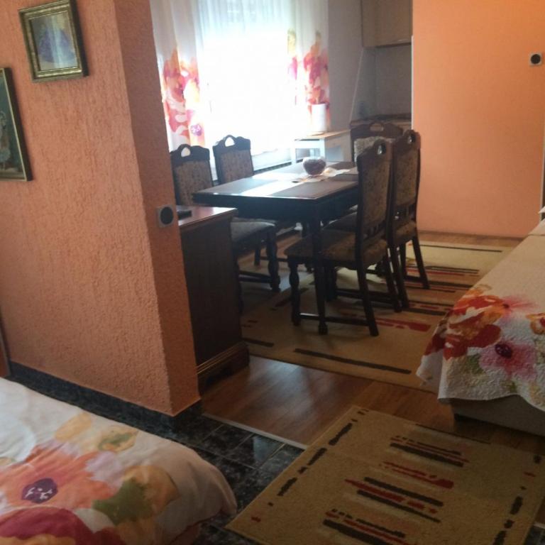Vi tilbyder dig 2 lejligheder (2 x 5 personer) og 2 værelser (2 x 4 personer). Lejlighederne er udstyret med alt hvad du behøver på en rejse eller ferie: Badeværelse: WC - bruser - håndklæder - hårtørrer. Køkken: komfur, køleskab, mikroovn, kedel, service. Vi har også udekøkken og grill i gården. Alle værelser har separat indgang med WI-FI, TV og aircondition. Vi har også en terrasse, hvor jeg med glæde forkæler dig med kaffe og en velkomstdrink. Kæledyr er velkomne. Vi er til rådighed fra 0-24 timer. Vi tilbereder ikke morgenmad, men du kan selv tilberede den i vores køkken.
