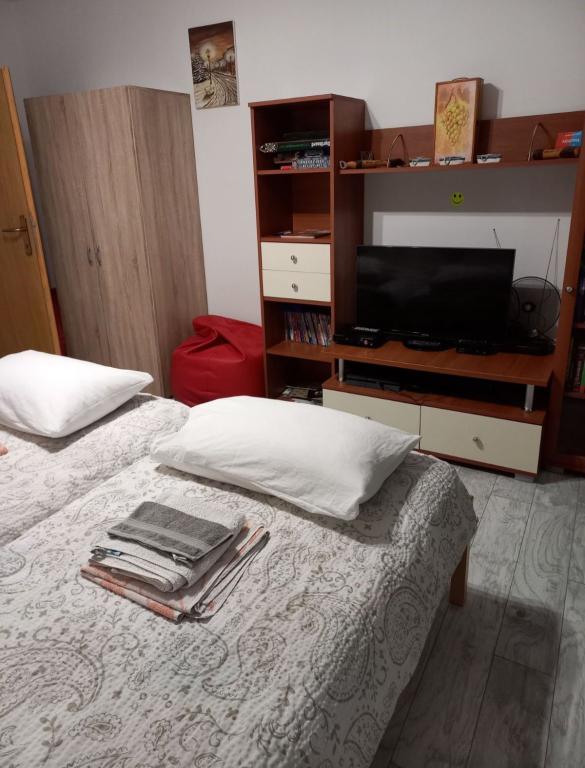 Zagorje, Krapina, Kroatien 2 lejligheder i naturen Tilgængelige hele året Vi godkender rabat på prisen for direkte reservationer (for eksempel gennem Apartmanija) Hver lejlighed har: 2 soveværelser (1 dobbeltseng og 2 enkeltsenge) 1 køkken 1 badeværelse 1 balkon Gratis parkering og Wifi I gården trampolin, gynger, minirutsjebane, grill Ved siden af huset have/plantage/vingård Nær skoven, nær bjerget Strahinjčica 3 km fra Krapin Neanderthals Museum 3 km fra Museum of Oldtimers 40 min fra Zagreb 40 min fra Trakošćan 40 min fra Marija Bistrice 40 minutter fra Varaždin 15 minutter fra spaen 20 km fra Slovenien https://www.facebook.com/PotockiKrapina