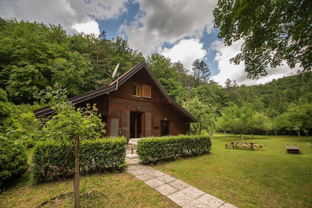 Feriehus i naturparken "Žumberak", omgivet af en frugthave, beliggende ved siden af Kupčina-floden, med store naturlige græsplæner, udendørs grill, parker og vinterhave. Det har 1 soveværelse, badeværelse, stue og kælder. I nærheden ligger den salige Aloysius Stepinacs hus, den gamle bydel i Ozalj, Kardinalska dolina, Slapnica canyon, med to smukke små vandfald, "Brisalo" og "Vranjak", samt flere fremragende ørreddamme og vinstokke.