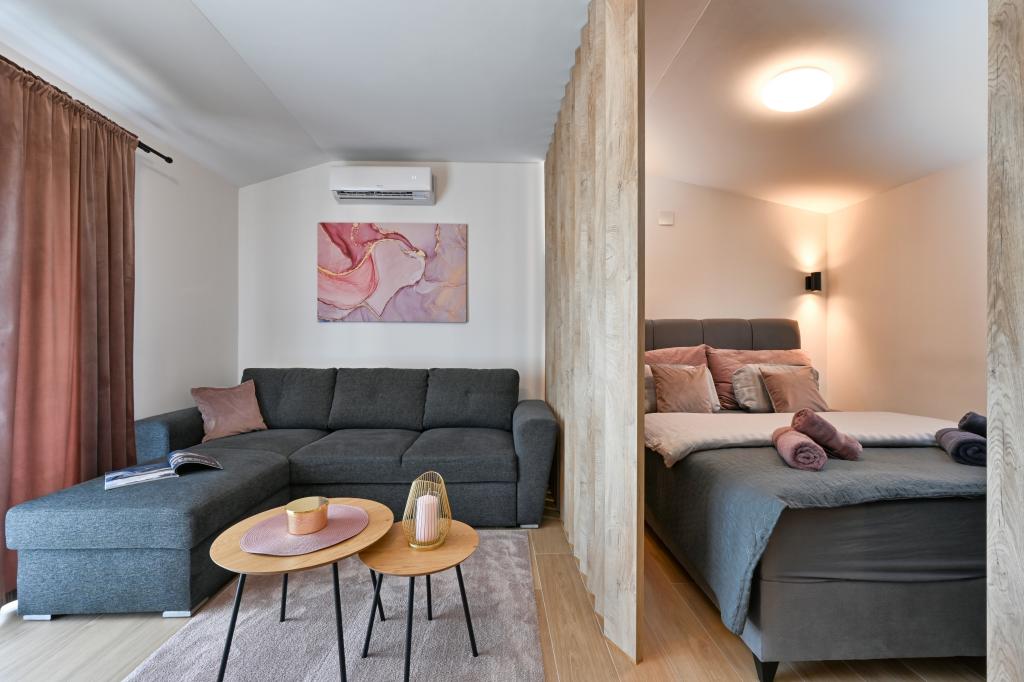 Tonka studiolejlighed er beliggende i en rolig del af Križevci, omgivet af grønne områder med en rummelig gårdhave. Anlægget ligger 7 minutters gang fra byens centrum eller 1 minuts kørsel i bil. Lejligheden har aircondition, gratis WiFi samt Netflix og er udstyret med håndklæder og engangstøfler. Den består af køkken, spisestue, stue, soveværelse, badeværelse og har terrasse, samt gårdhave med parkering. Der er en ladestation til elbiler i anlægget.