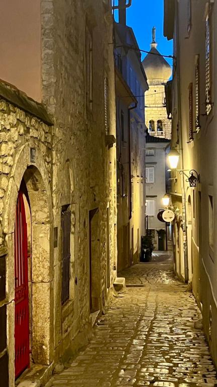 Lejligheden er beliggende i det gamle historiske centrum, i centrum af byen Krk. Den største bystrand ligger 250 meter fra ejendommen. Bymidten, det centrale torv og bypromenaden ligger 100 meter fra lejligheden. De vigtigste historiske vartegn, Krk-katedralen og Frankopan-slottet, ligger i umiddelbar nærhed af ejendommen, og fra indgangen er der udsigt til selve katedralen. Under opholdet har gæsterne adgang til alle faciliteter uden at skulle bruge bil. Der tilbydes gratis parkering for lejlighedens gæster, 250 meter fra ejendommen.