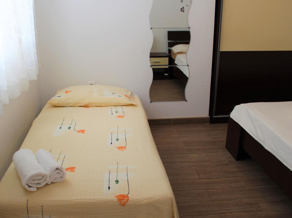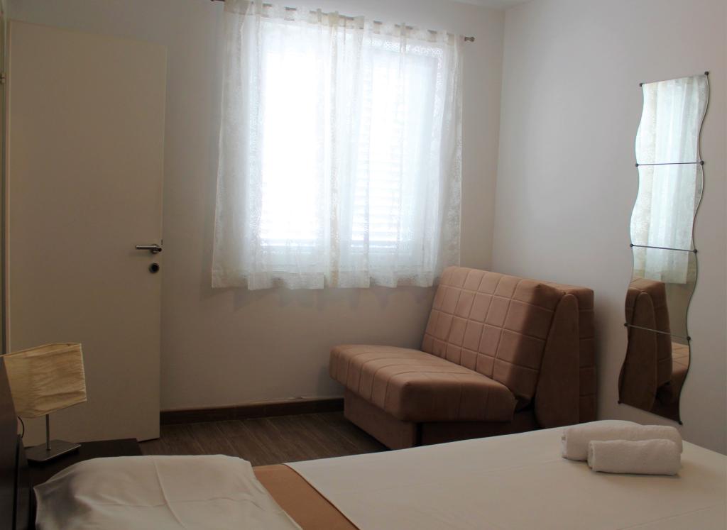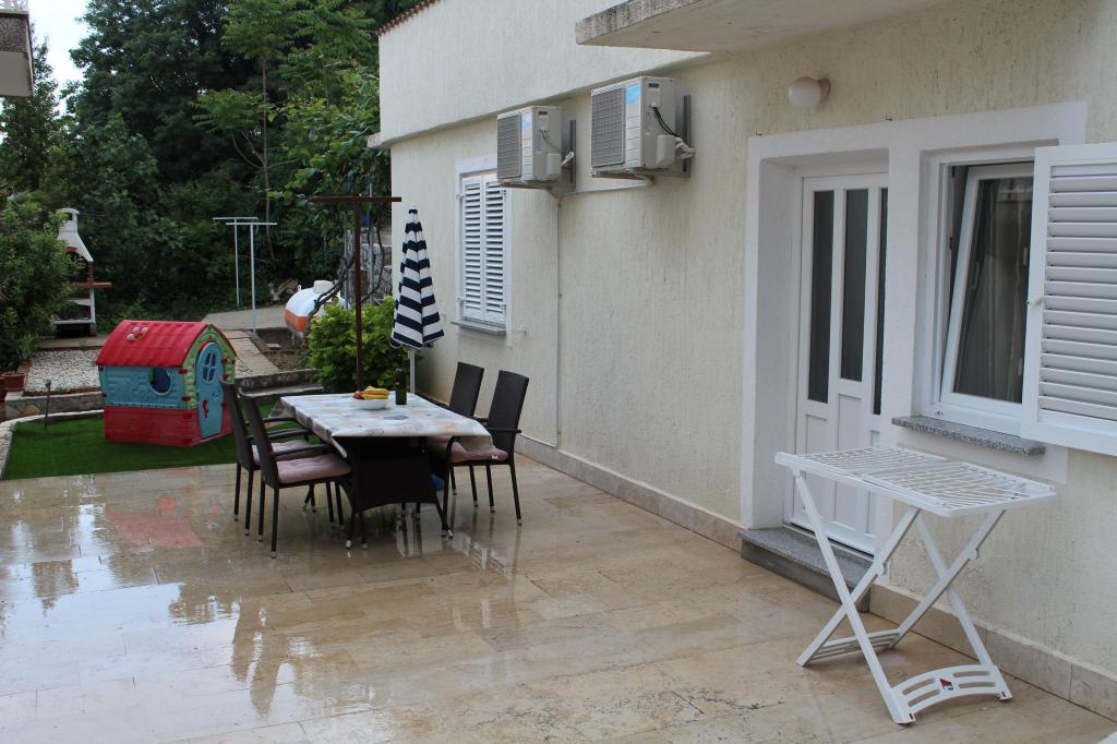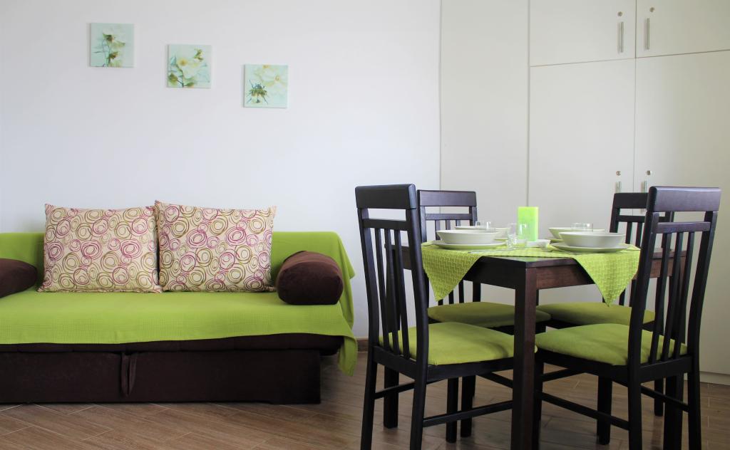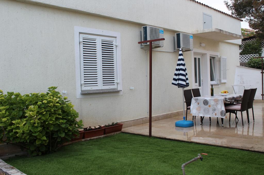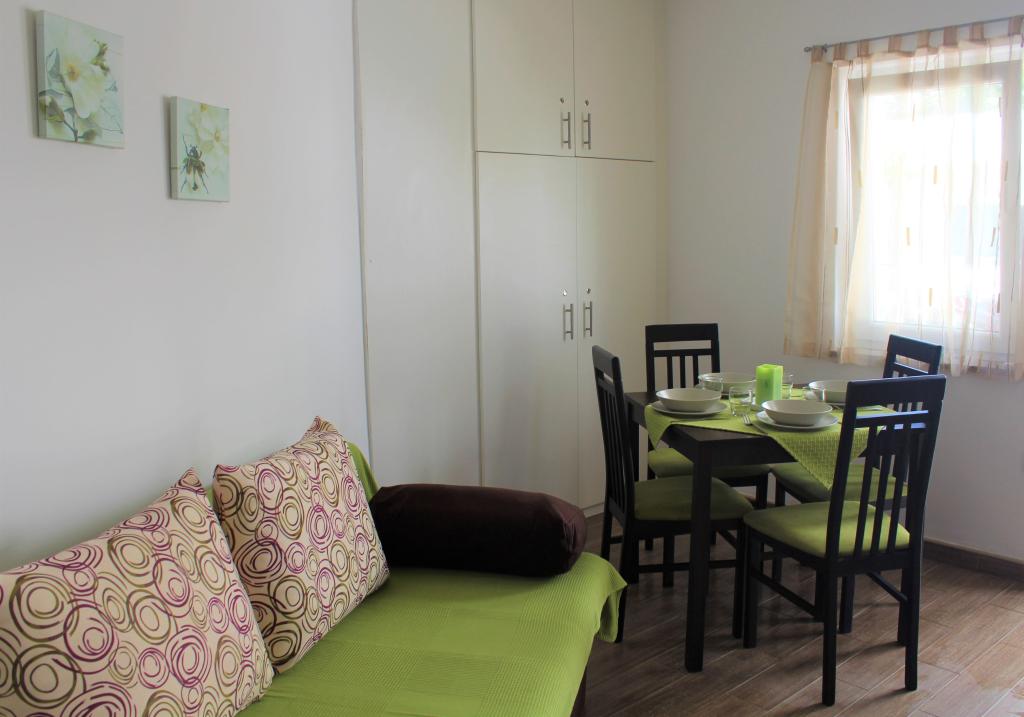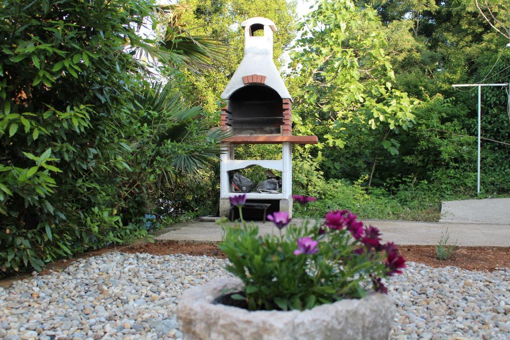 Denne lejlighed er beliggende i et roligt område. Det har en terrasse med udsigt over haven. Det ligger 5 minutters gang fra stranden og centrum. Det er tæt på busstationen. Det har gratis WiFi og privat parkering. Køkkenet er udstyret med ovn, køleskab, kedel og kaffemaskine. Sengelinned og håndklæder er til rådighed.