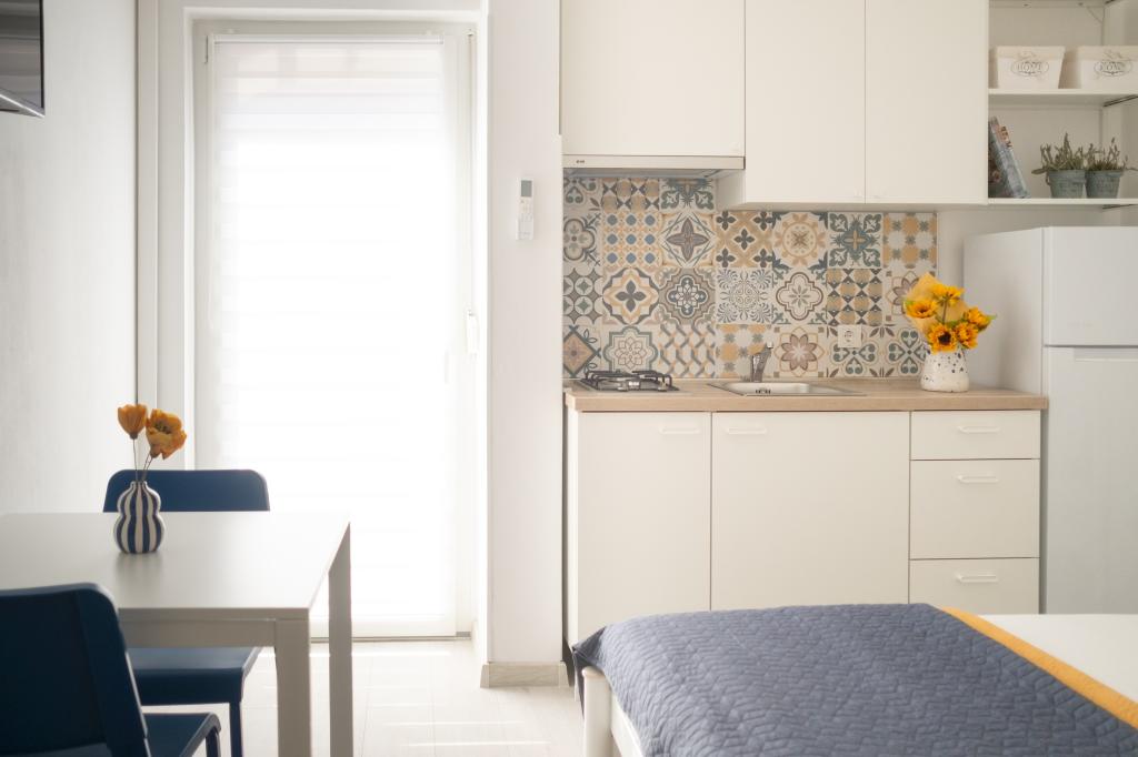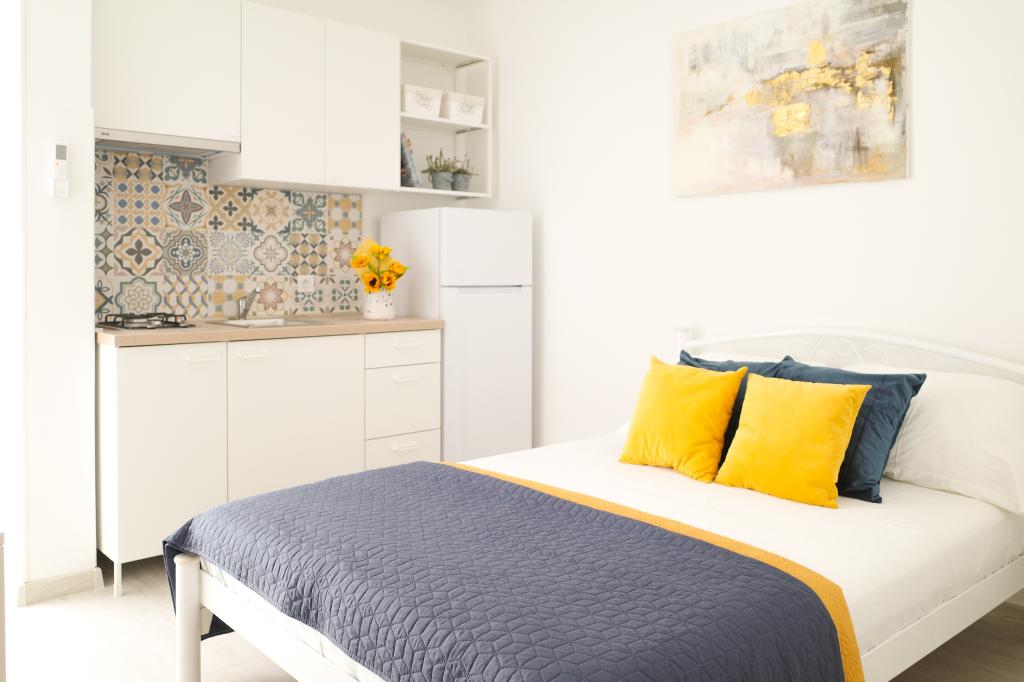 Nice og pæne studiolejlighed tæt på stranden og fra byens centrum på 10 minutters gang. Værtinden er venlig og venlig. Et sted at vende tilbage