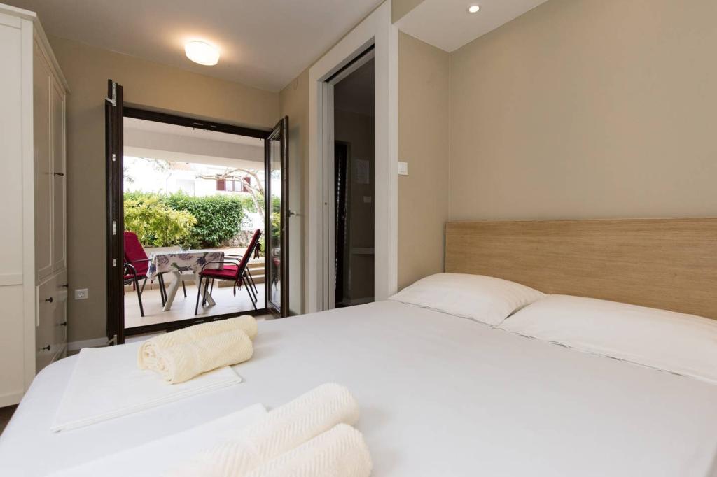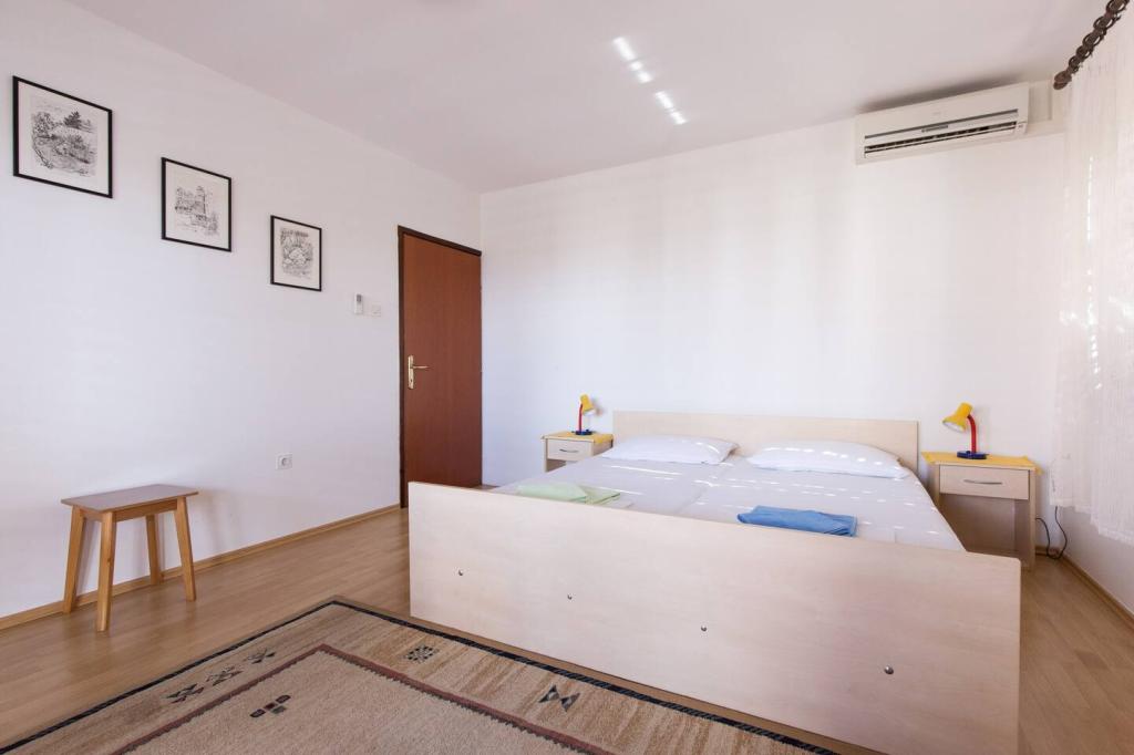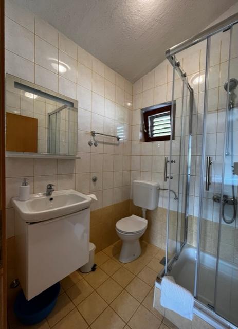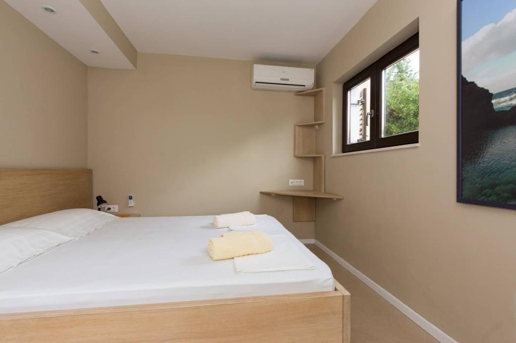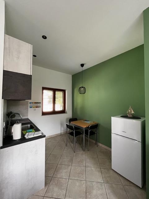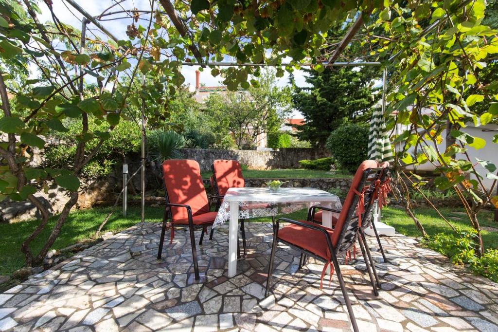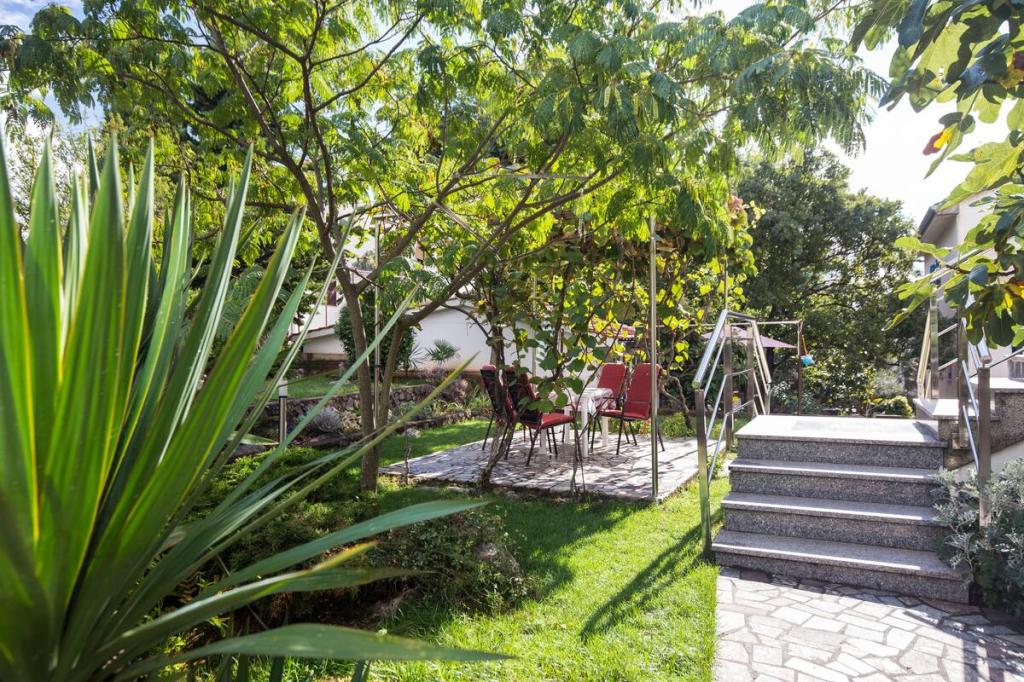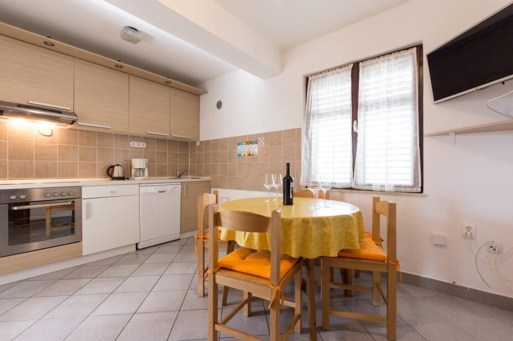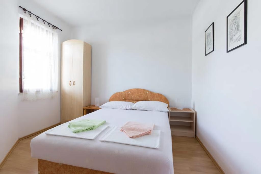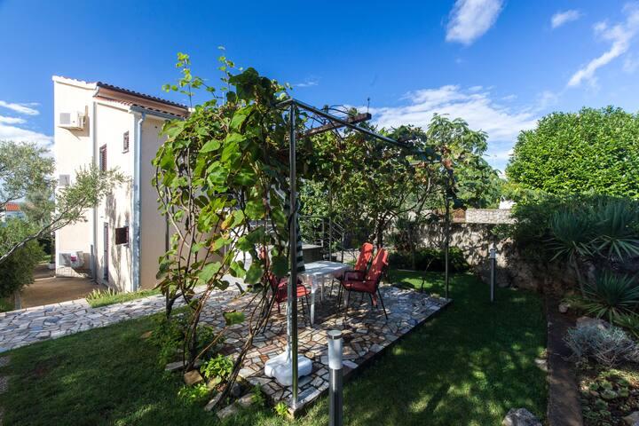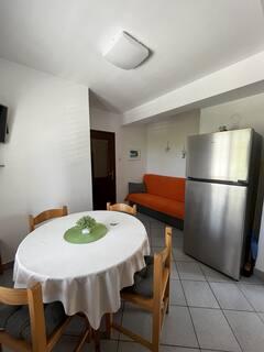 Vores lejligheder er beliggende i byen Krk og er 200 m fra stranden (5 minutters gang) og 900 m fra byens kulturelle og historiske centrum (15 minutters gang). Småstens-, klippe- og sandstrande og sportsfaciliteter er i nærheden. Lejlighed 3, størrelse 22m2 (studie) er til 2 personer. Lejligheden ligger på første sal med separat indgang og åbner ud til haven, hvor der er et sæt sæder, der kun er til rådighed for gæster fra Lejlighed 3. Lejligheden har en studieplan med en fransk seng 160x200 (til 2 personer). Det har et badeværelse med brusekabine og et fuldt udstyret køkken med et spisebord, et køleskab med en dybfryser, et komfur (elektrisk), en mikrobølgeovn, en filterkaffemaskine, en kedel og bestik. Lejligheden har også: kabel-tv, gratis WiFi fladt internet og aircondition med manuel kontrol, pengeskab til værdigenstande/personlige dokumenter.