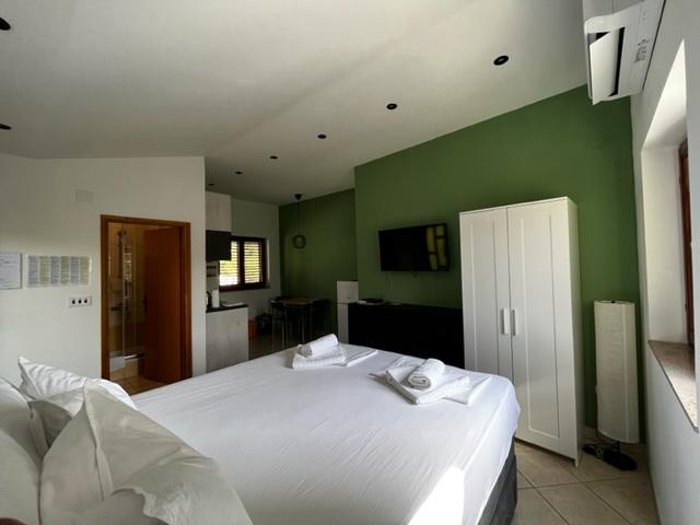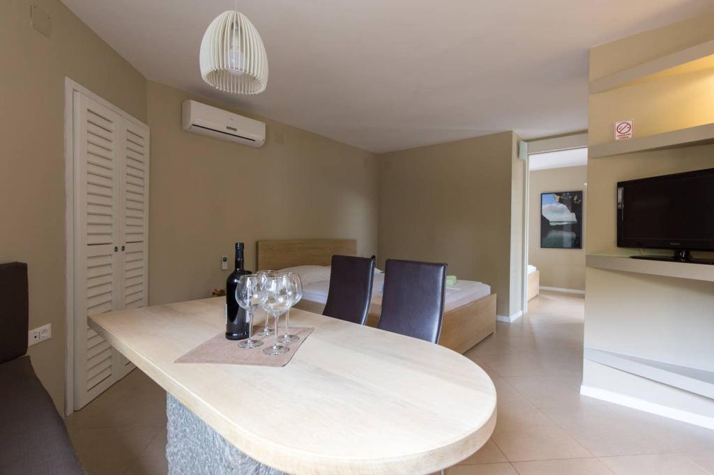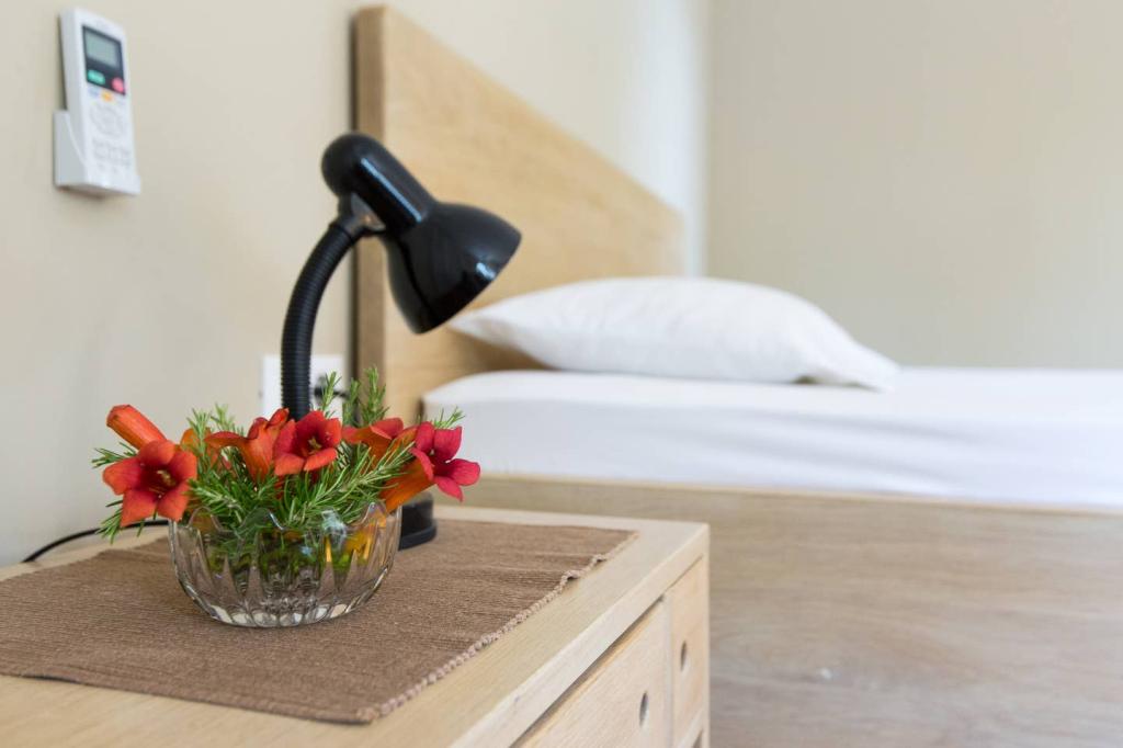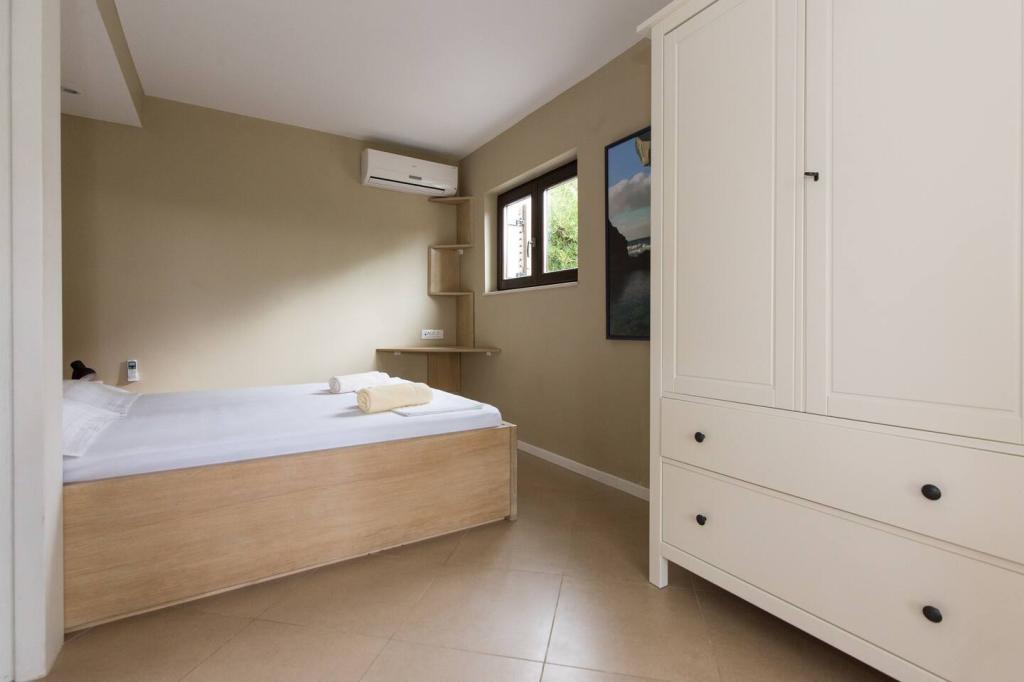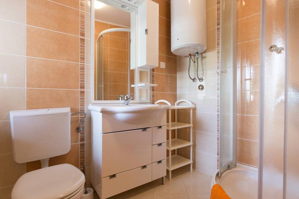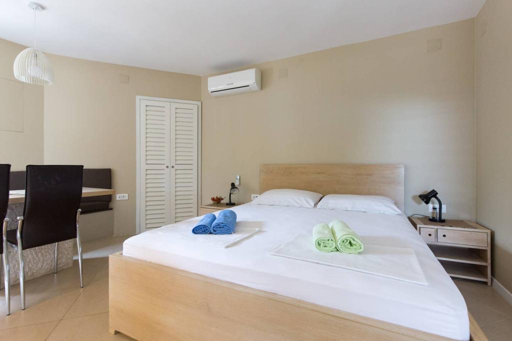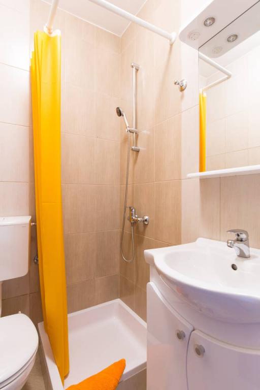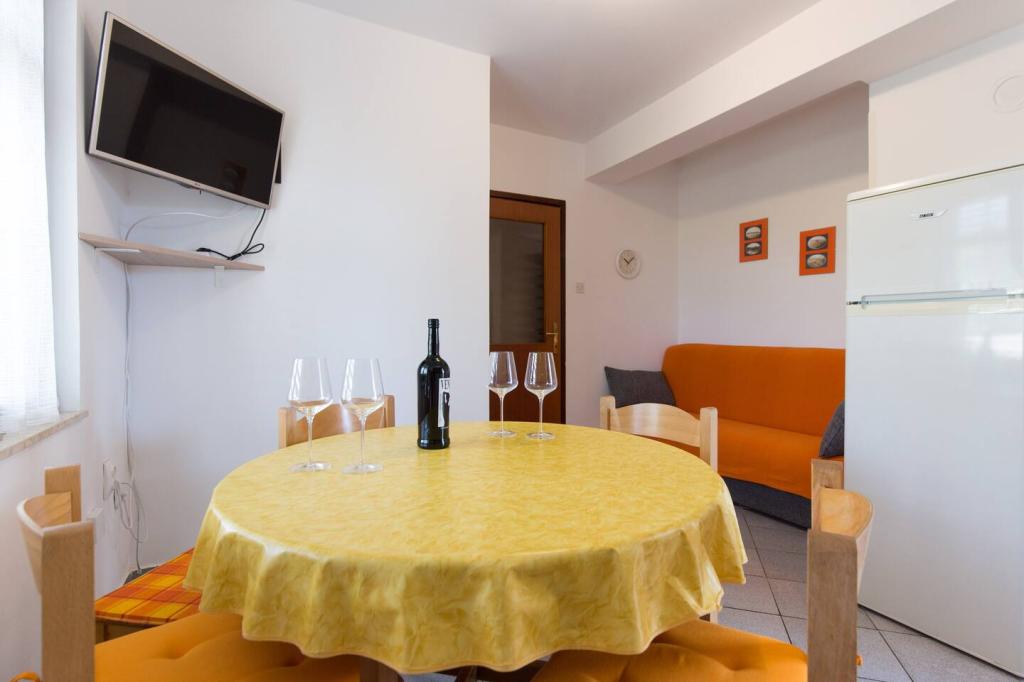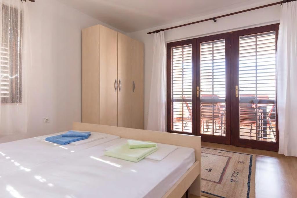 Vores lejligheder er beliggende i byen Krk og er 200 m fra stranden (5 minutters gang) og 900 m fra byens kulturelle og historiske centrum (15 minutters gang). Småstens-, klippe- og sandstrande og sportsfaciliteter er i nærheden. Lejlighed 3, størrelse 22m2 (studie) er til 2 personer. Lejligheden ligger på første sal med separat indgang og åbner ud til haven, hvor der er et sæt sæder, der kun er til rådighed for gæster fra Lejlighed 3. Lejligheden har en studieplan med en fransk seng 160x200 (til 2 personer). Det har et badeværelse med brusekabine og et fuldt udstyret køkken med et spisebord, et køleskab med en dybfryser, et komfur (elektrisk), en mikrobølgeovn, en filterkaffemaskine, en kedel og bestik. Lejligheden har også: kabel-tv, gratis WiFi fladt internet og aircondition med manuel kontrol, pengeskab til værdigenstande/personlige dokumenter.