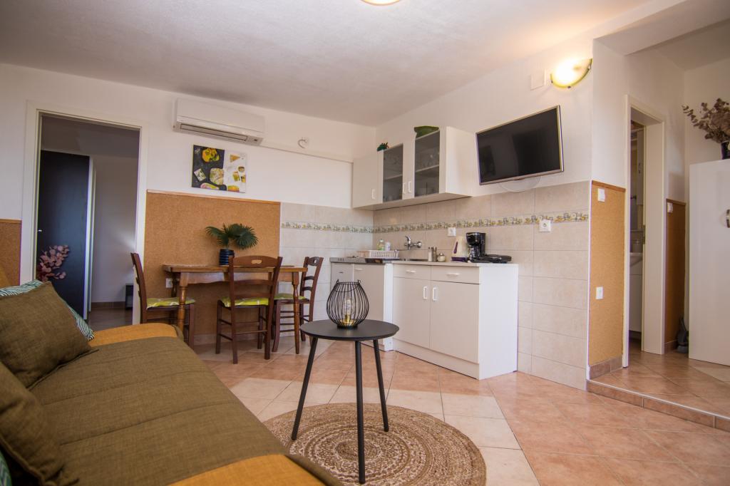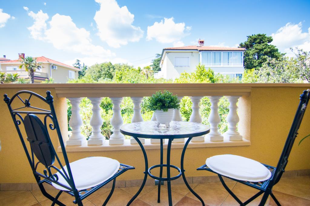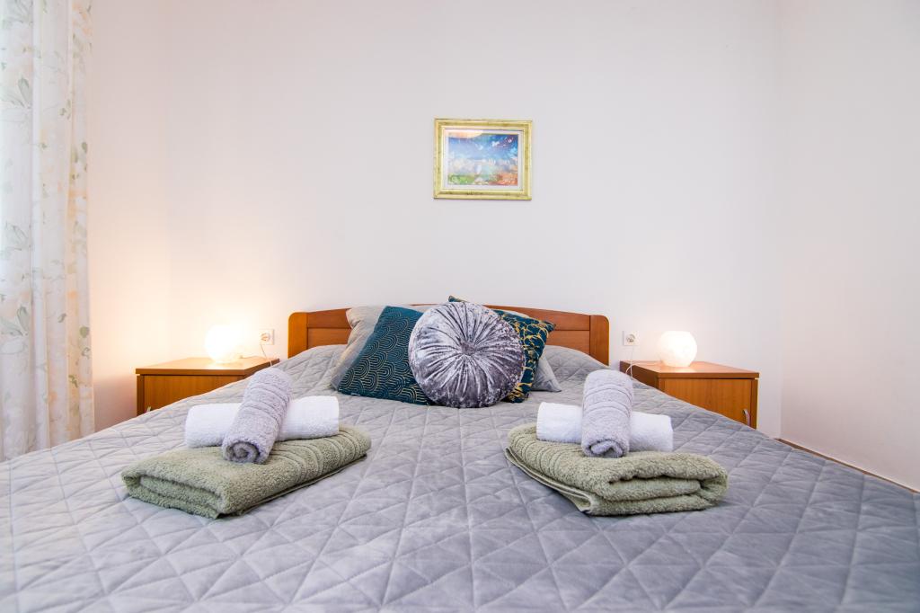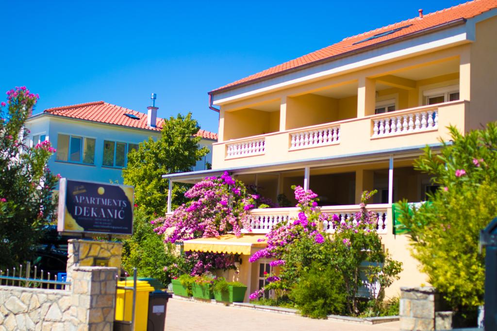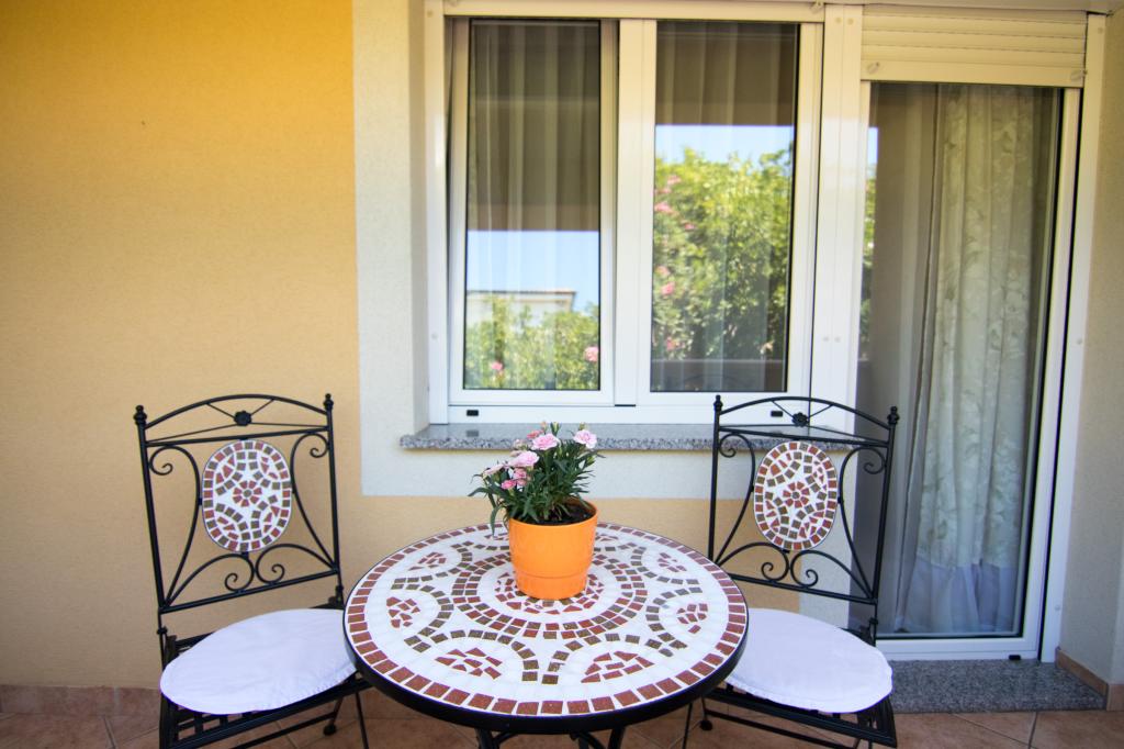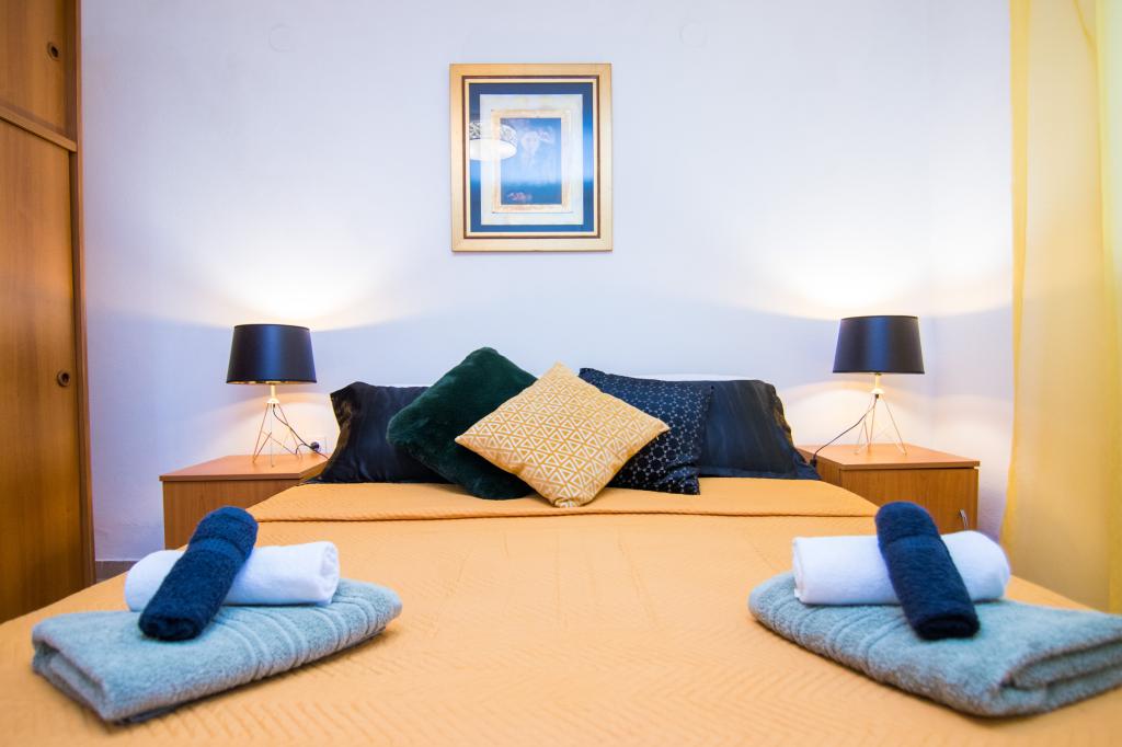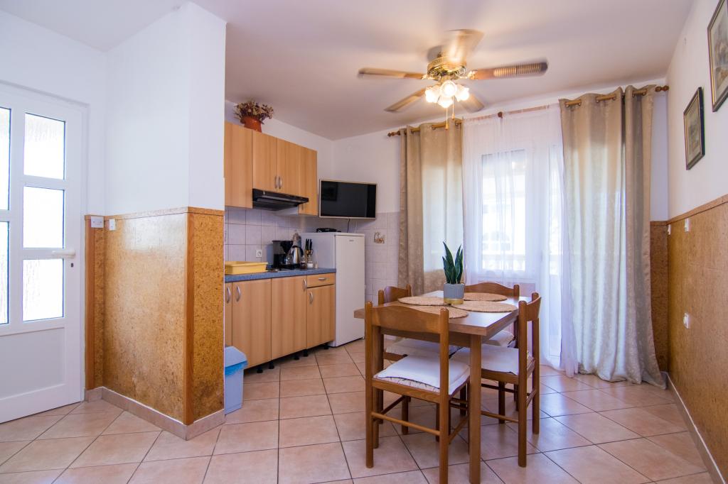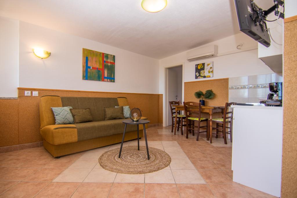 Huset ligger i centrum af byen, kun 90 m fra havet og en smuk promenade med talrige restauranter, caféer og andre faciliteter. Gæsterne kan finde butikker, en bank, et posthus, et apotek og lignende i nærheden af huset. Husets gård er rummelig, hvor der er plads nok til at parkere gæsternes biler. Det er omgivet af middelhavsplanter og blomster. Gæsterne kan også benytte den fælles grill, der ligger bag huset. Alle lejligheder har terrasse eller altan, og nogle lejligheder har endda to terrasser eller to altaner. Kvarteret er roligt og sikkert. Fra nogle lejligheder kan du se havet. Hver enhed har aircondition, satellit-tv, internet og en filterkaffemaskine.
