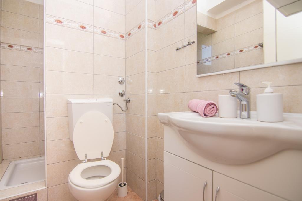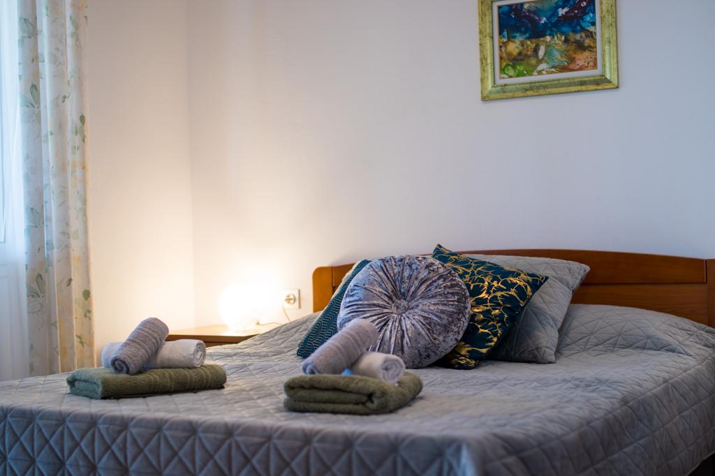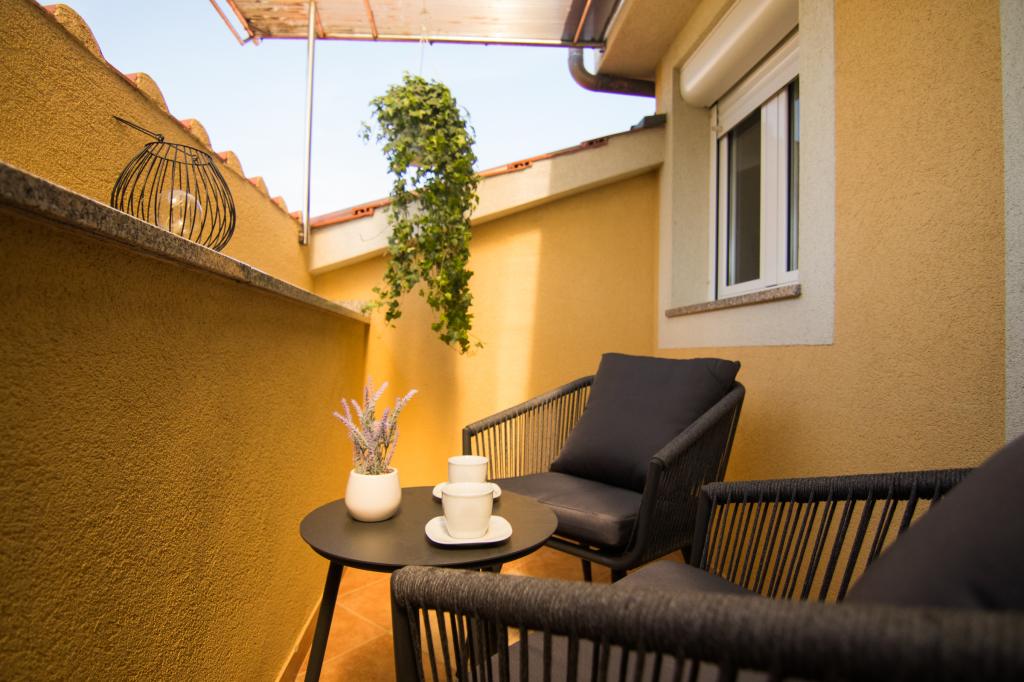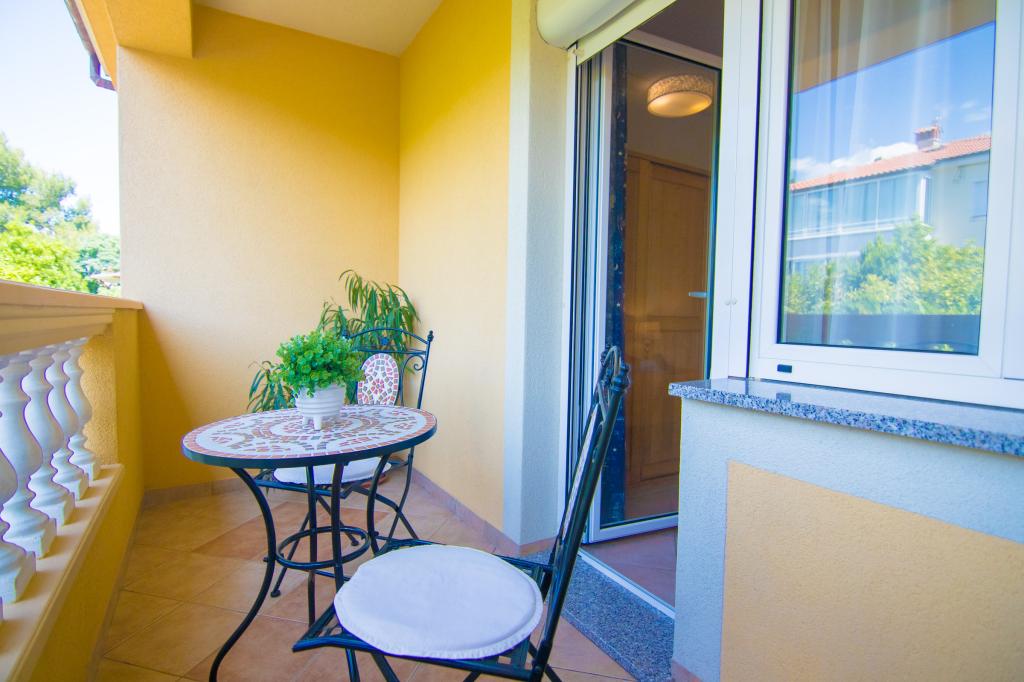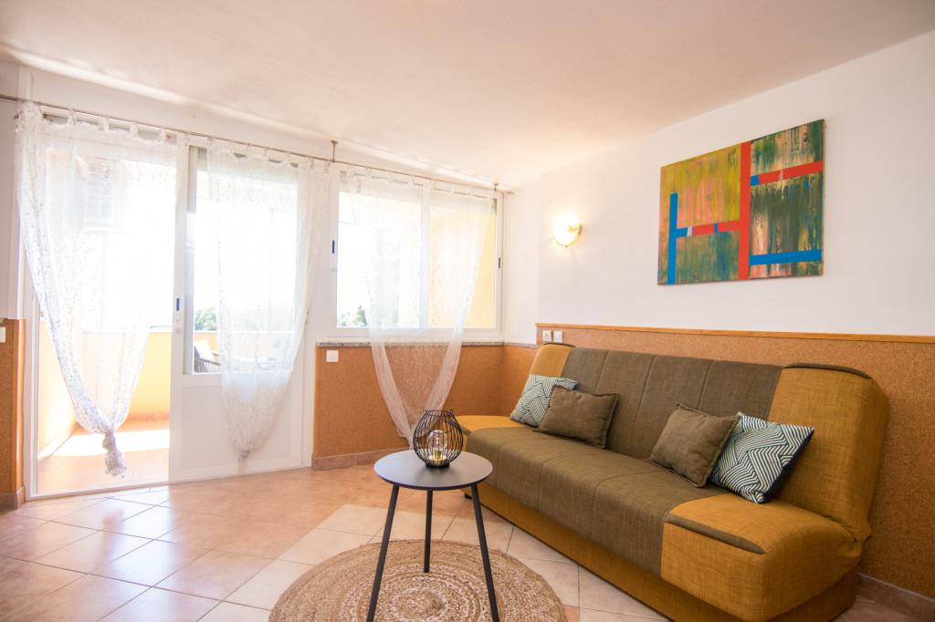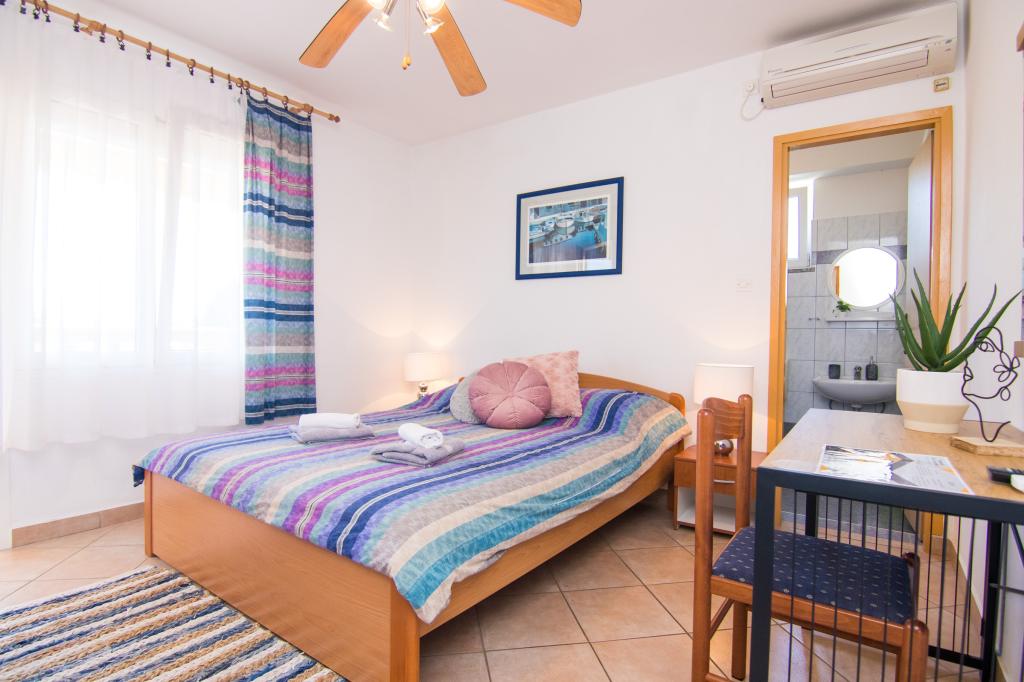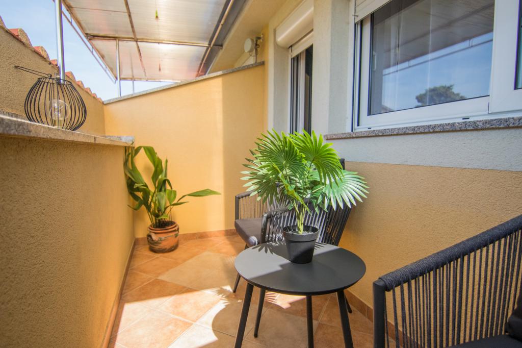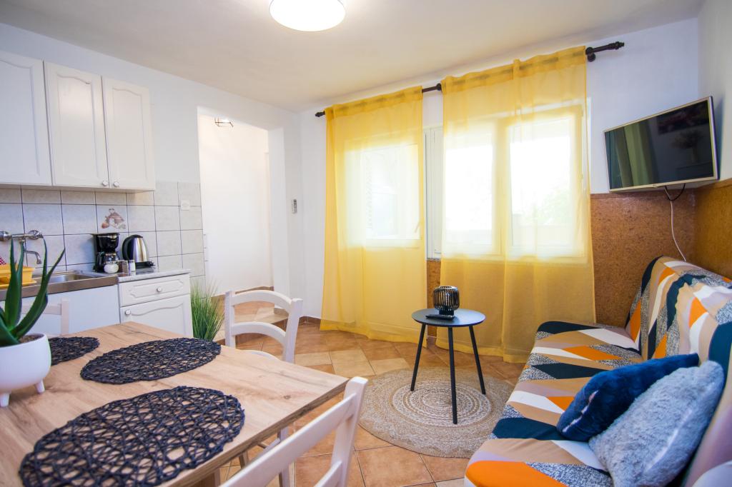 Huset ligger i centrum af byen, kun 90 m fra havet og en smuk promenade med talrige restauranter, caféer og andre faciliteter. Gæsterne kan finde butikker, en bank, et posthus, et apotek og lignende i nærheden af huset. Husets gård er rummelig, hvor der er plads nok til at parkere gæsternes biler. Det er omgivet af middelhavsplanter og blomster. Gæsterne kan også benytte den fælles grill, der ligger bag huset. Alle lejligheder har terrasse eller altan, og nogle lejligheder har endda to terrasser eller to altaner. Kvarteret er roligt og sikkert. Fra nogle lejligheder kan du se havet. Hver enhed har aircondition, satellit-tv, internet og en filterkaffemaskine.