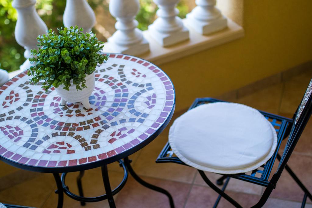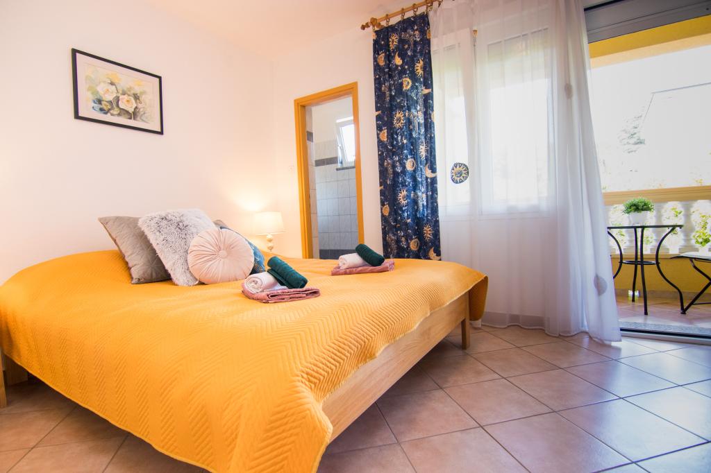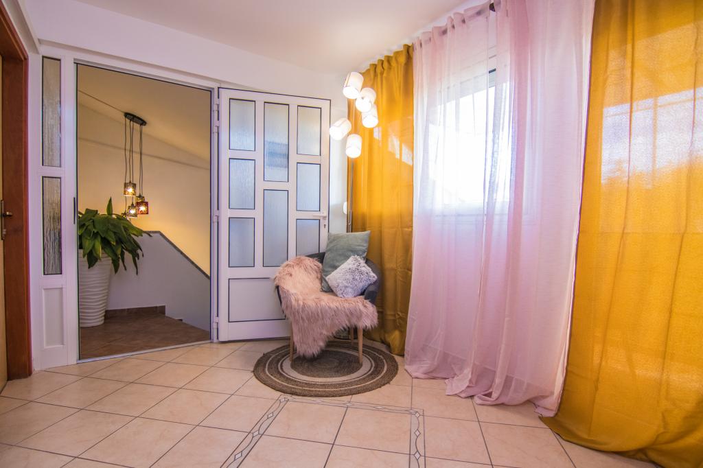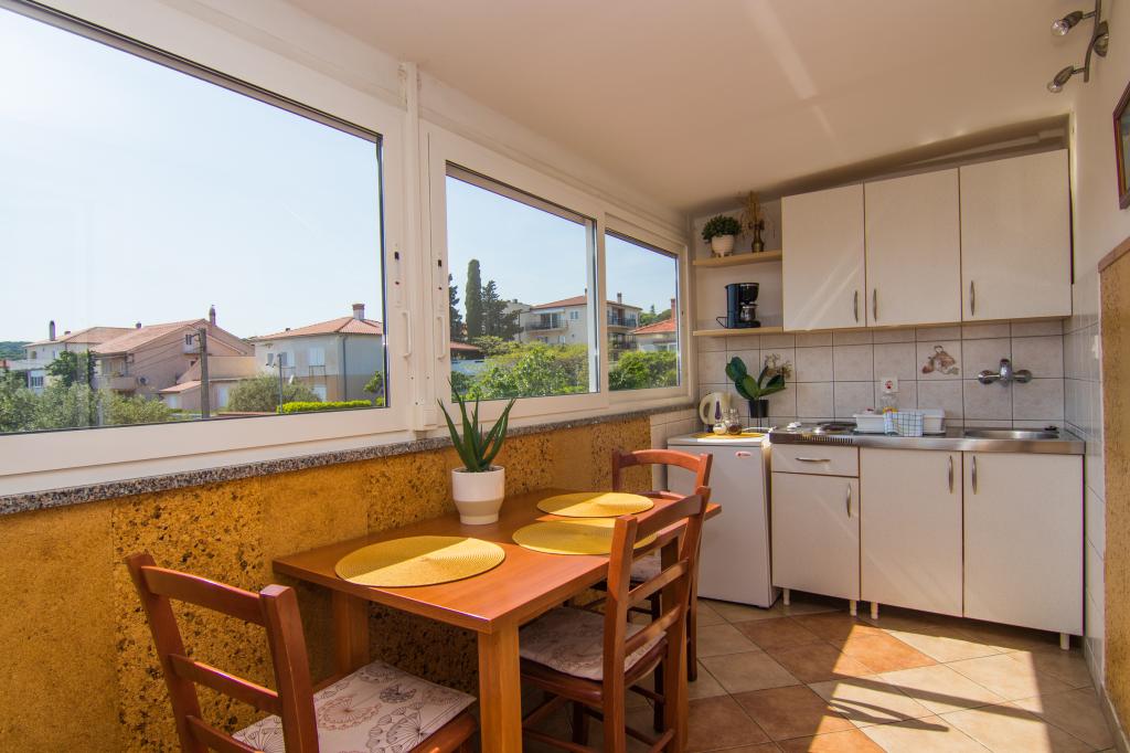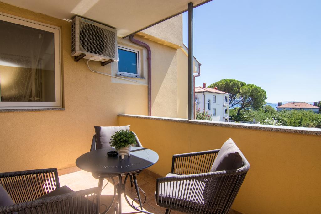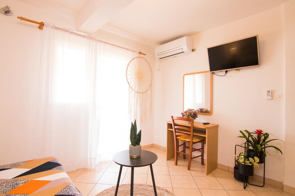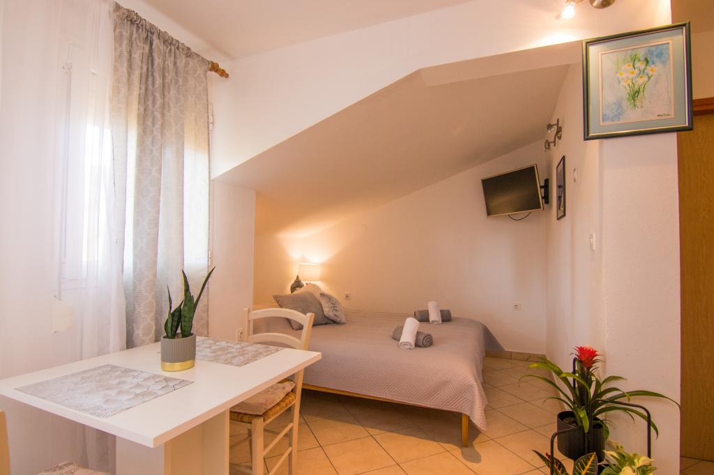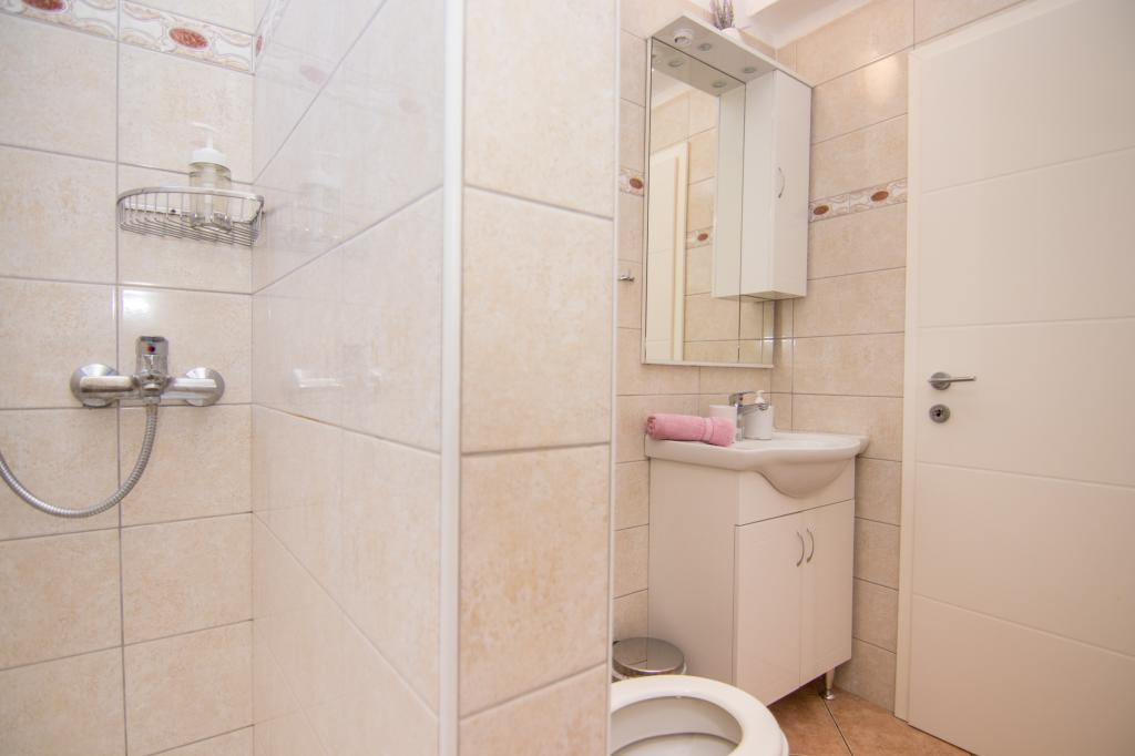 Huset ligger i centrum af byen, kun 90 m fra havet og en smuk promenade med talrige restauranter, caféer og andre faciliteter. Gæsterne kan finde butikker, en bank, et posthus, et apotek og lignende i nærheden af huset. Husets gård er rummelig, hvor der er plads nok til at parkere gæsternes biler. Det er omgivet af middelhavsplanter og blomster. Gæsterne kan også benytte den fælles grill, der ligger bag huset. Alle lejligheder har terrasse eller altan, og nogle lejligheder har endda to terrasser eller to altaner. Kvarteret er roligt og sikkert. Fra nogle lejligheder kan du se havet. Hver enhed har aircondition, satellit-tv, internet og en filterkaffemaskine.